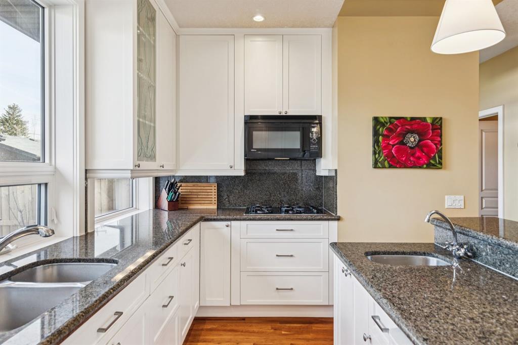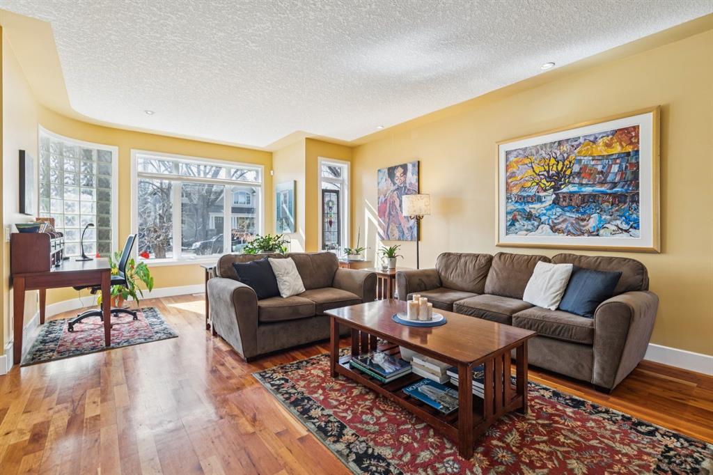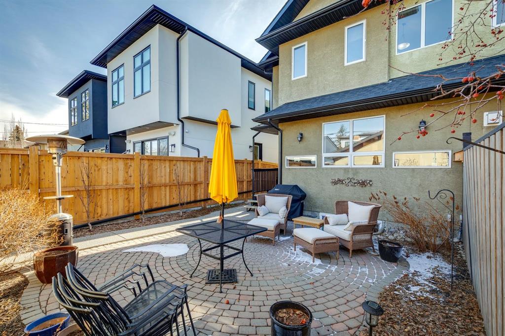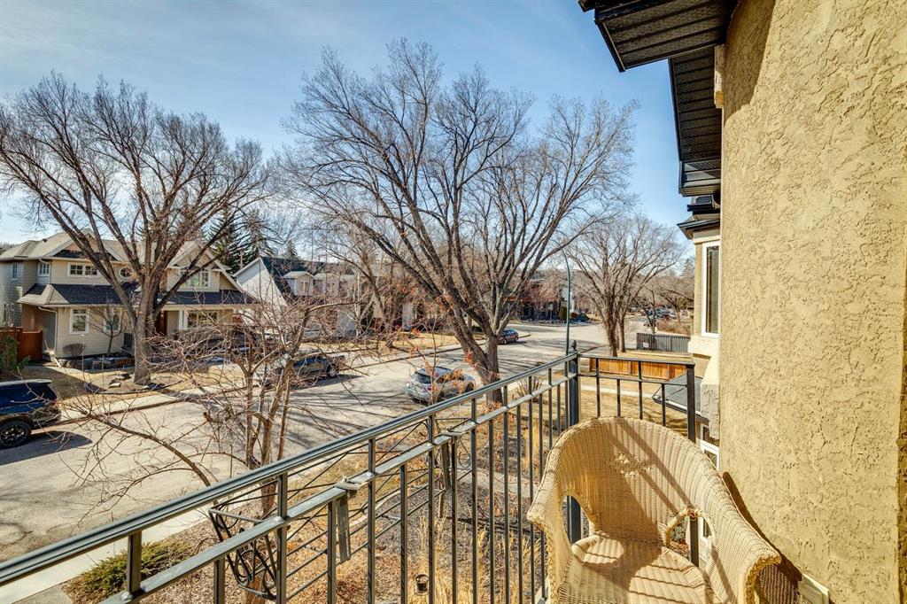 Welcome to this beautifully appointed South facing home in the highly sought after community of West Hillhurst, where inner city living meets nature and convenience. Perfectly situated just steps from the Karl Baker Off-Leash Dog Park, Helicopter Park, the scenic Bow River pathway system, and Foothills Hospital, this home also offers quick access to trendy Kensington, exceptional dining, and Calgary’s vibrant downtown core. As you walk up the beautifully landscaped front, you’ll notice a charming outdoor sitting area creating an inviting space to relax and greet passing neighbours. Inside, the main floor showcases rich hardwood flooring and a thoughtfully designed open concept layout. A bright front den/living room features a stunning two-way gas fireplace that seamlessly connects to the dining area and kitchen, ideal for both everyday living and entertaining. The kitchen is a culinary delight, complete with a central island, raised breakfast bar, prep sink, granite countertops, and an abundance of white shaker cabinetry, including elegant glass front display cabinets. Superior appliances include a gas cooktop and built-in oven. A functional mudroom leads to a convenient 2pc bathroom and provides access to the rear patio and double detached garage. A graceful curved staircase leads to the upper level, where vaulted ceilings and a skylight create an airy, light filled ambiance. This level offers three generously sized bedrooms, a full bathroom, and convenient stacked laundry. The spacious primary retreat is a true highlight, featuring a private front balcony where you can enjoy morning coffee or unwinding with a book, along with room for a sitting area. The luxurious 5pc ensuite includes a jetted tub, separate shower, and a custom walk-in closet. The fully developed lower level offers even more living space, with durable laminate flooring, a large recreation room with built-in bookshelves, a bar area with sink, and oversized windows that bring in plenty of natural light. A dedicated media room with a full wall of storage and a 3pc bathroom completes this level. Step outside to the rear patio, an ideal setting to host friends and family or simply relax and enjoy your own private oasis. This exceptional home combines style, comfort, and an unbeatable location making it perfect for professionals, families, and anyone looking to experience the best of inner city Calgary living.