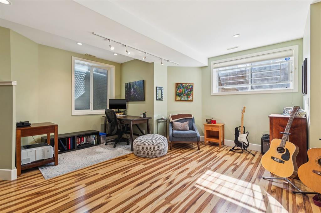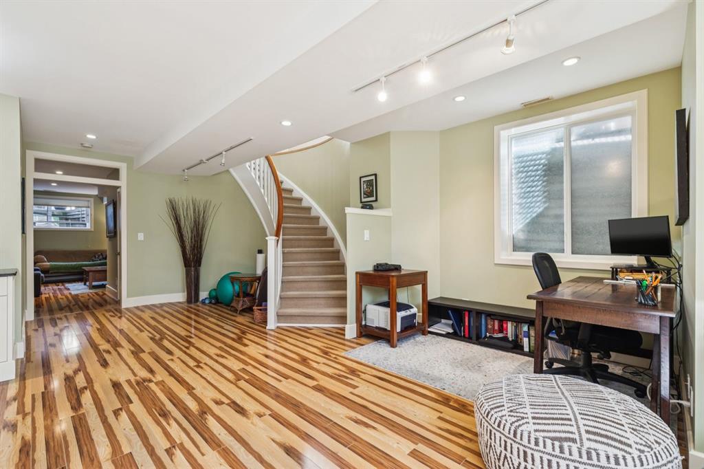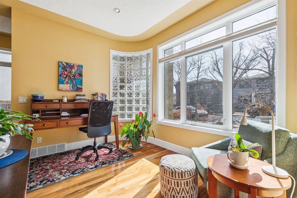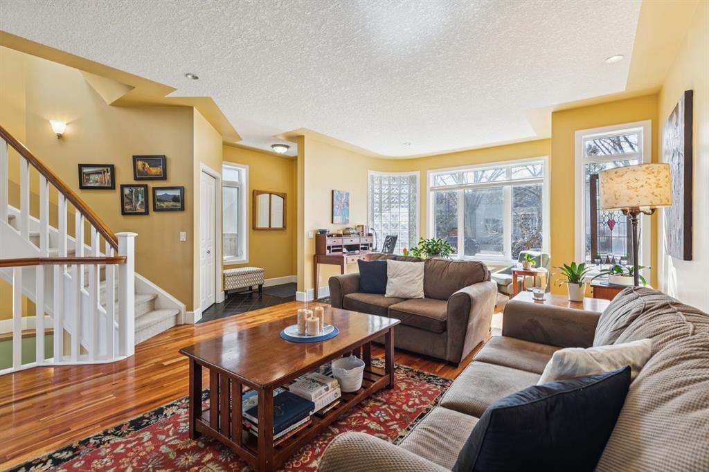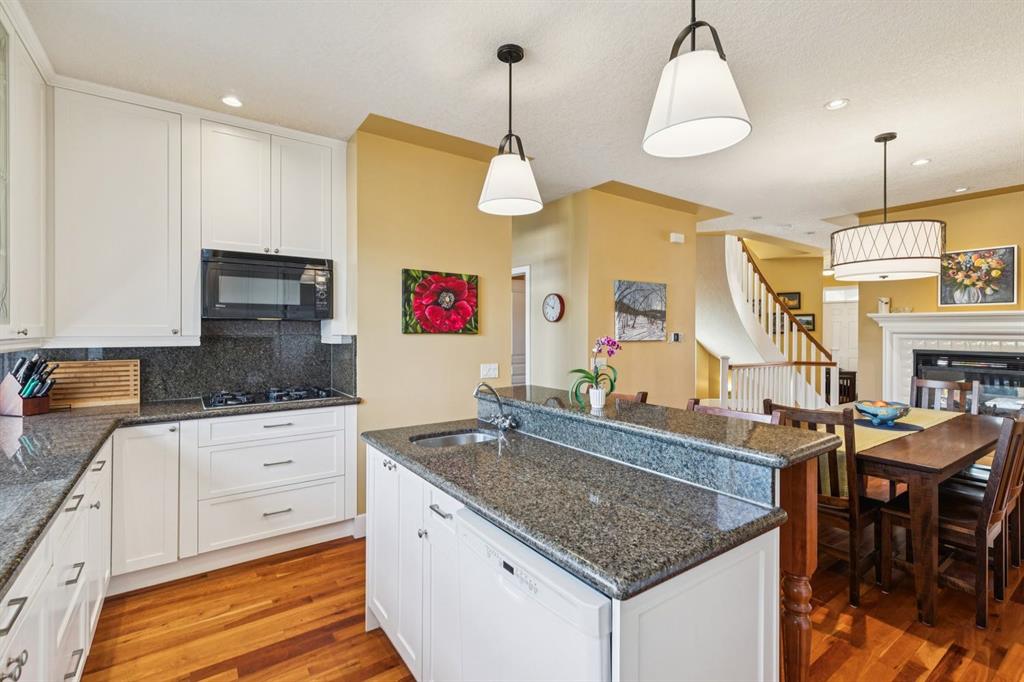 Welcome to this beautifully appointed South facing home in the highly sought after community of West Hillhurst, where inner city living meets nature and convenience. Perfectly situated just steps from the Karl Baker Off-Leash Dog Park, Helicopter Park, the scenic Bow River pathway system, and Foothills Hospital, this home also offers quick access to trendy Kensington, exceptional dining, and Calgary’s vibrant downtown core. As you walk up the beautifully landscaped front, you’ll notice a charming outdoor sitting area creating an inviting space to relax and greet passing neighbours. Inside, the main floor showcases rich hardwood flooring and a thoughtfully designed open concept layout. A bright front den/living room features a stunning two-way gas fireplace that seamlessly connects to the dining area and kitchen, ideal for both everyday living and entertaining. The kitchen is a culinary delight, complete with a central island, raised breakfast bar, prep sink, granite countertops, and an abundance of white shaker cabinetry, including elegant glass front display cabinets. Superior appliances include a gas cooktop and built-in oven. A functional mudroom leads to a convenient 2pc bathroom and provides access to the rear patio and double detached garage. A graceful curved staircase leads to the upper level, where vaulted ceilings and a skylight create an airy, light filled ambiance. This level offers three generously sized bedrooms, a full bathroom, and convenient stacked laundry. The spacious primary retreat is a true highlight, featuring a private front balcony where you can enjoy morning coffee or unwinding with a book, along with room for a sitting area. The luxurious 5pc ensuite includes a jetted tub, separate shower, and a custom walk-in closet. The fully developed lower level offers even more living space, with durable laminate flooring, a large recreation room with built-in bookshelves, a bar area with sink, and oversized windows that bring in plenty of natural light. A dedicated media room with a full wall of storage and a 3pc bathroom completes this level. Step outside to the rear patio, an ideal setting to host friends and family or simply relax and enjoy your own private oasis. This exceptional home combines style, comfort, and an unbeatable location making it perfect for professionals, families, and anyone looking to experience the best of inner city Calgary living.