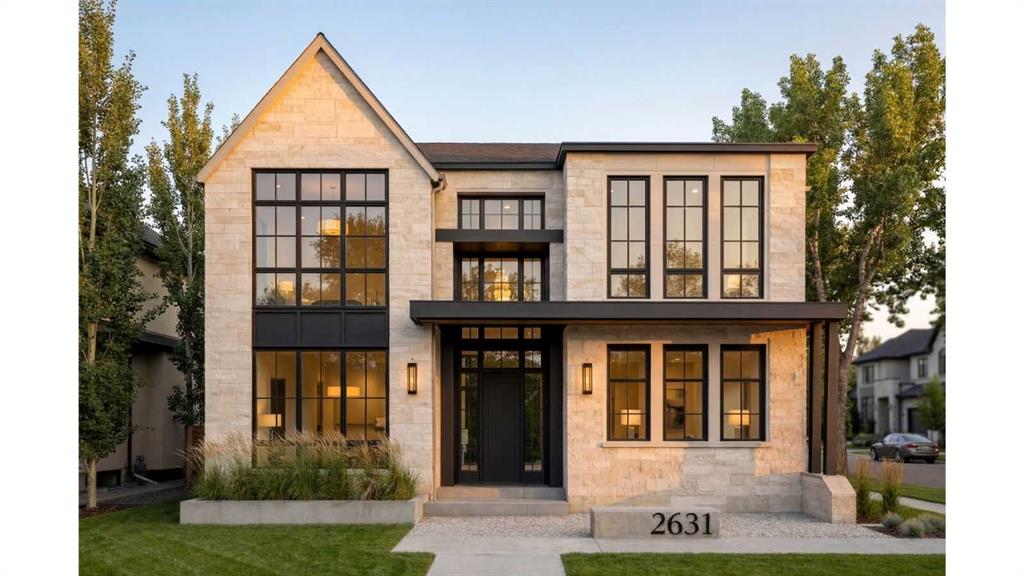 Welcome to this exceptional custom-built residence in the highly sought-after community of Lakeview, perfectly positioned on a rare 57.5’ x 99.6’ lot with expansive frontage and a sun-soaked south-facing backyard. Showcasing a timeless limestone exterior, dramatic rooflines, and an abundance of oversized windows, this home offers unmatched curb appeal and natural light throughout. Step inside to a grand foyer that sets the tone for refined living. The main floor features a private office with glass doors, ideal for working from home, along with both a formal dining room and an open-concept living space designed for entertaining. At the heart of the home is a designer chef’s kitchen, complete with premium JennAir appliances, Calcutta marble countertops and backsplash, custom cabinetry with panel-ready appliances, and an expansive island that flows seamlessly into the dining and living areas. The spacious living room is anchored by a striking stone/concrete gas fireplace and a signature feature wall, creating a warm yet modern ambiance. Step outside to a generous deck and backyard, perfect for summer gatherings. A rare offering, the home includes a 3-car tandem attached garage with convenient rear alley access.