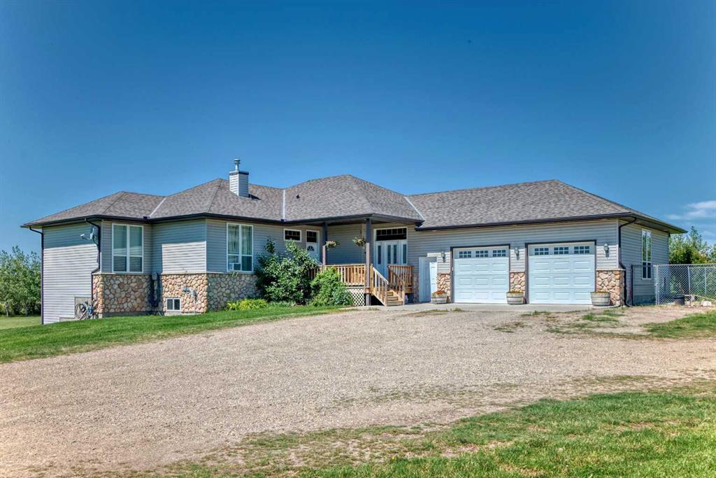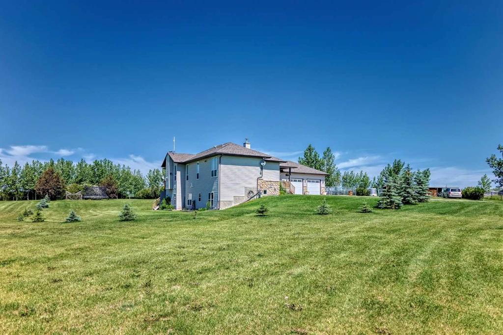 When you DREAM, do you dream of living a "City Close, Country Quiet" existence, on a 18 acre estate, boasting over 2100 sq ft (main level) and over 3650 total developed sq ft , just 1.5 miles from Calgary's border, with MASSIVE upside as Calgary grows over the next few decades? WELCOME home. The heart of the home, the kitchen, opens up to the great room creating a massive open space. The kitchen is a chef’s delight with massive granite countertops, gas oven, upgraded stainless steel appliances, timeless real wood shaker cabinets, with undercabinet lighting and a gargantuan central island. The adjacent great room hosts the cozy gas fireplace and ample sitting area. Both the kitchen and great room have amazing views of the south and west of the yard, and are bathed in sunshine. Down the hall, past the child bedroom and 4 pce bath, we find the master retreat, with it's decadent ensuite, and walk-in closet. Completing the main level is the rear laundry / mud room and is the main floor den / office, with it's own door for work-from-home types that need to have clients stop by. The walkout lower level boasts a MASSIVE room, the width of the house, 2 bedrooms, and another 4 pce bath, all heated with hydronic in-concrete-slab heat (n. gas boiler). Outside you have oodles of outbuildings, hundreds of trees, and a private oasis tucked into the trees to the north. Seldom to you feel so completely private this close to a major city. If you love horses, donkeys, llama, or chickens it's fully setup with large corral with shelter, tack and feed room, and 4 season livestock waterer. Adjacent is a fully insulated chicken coop with treed outdoor space for a happy flock. Fully fenced paddock for livestock, and mixed alfalfa / grass hayfield for cutting/grazing. Land is zoned R-RUR which gives lower taxation and provides for a wide range of potential options for development (accessory buildings, home based businesses, etc). A large part of the value is in the land, with 18.68 acres or over 813 000 sq ft; put another way, it would fit over 220 "average" new lots in Calgary. This much space is both a private oasis for you and your family, but also the long term redevelopment gain as HUNDREDS of families could eventually live here, post development. The mind boggles at the potential future returns. Although Calgary’s city limits are only 1.4 miles away, it's possible Airdrie could annex first. It is a city close, but country quiet. Call your agent today to book a showing.