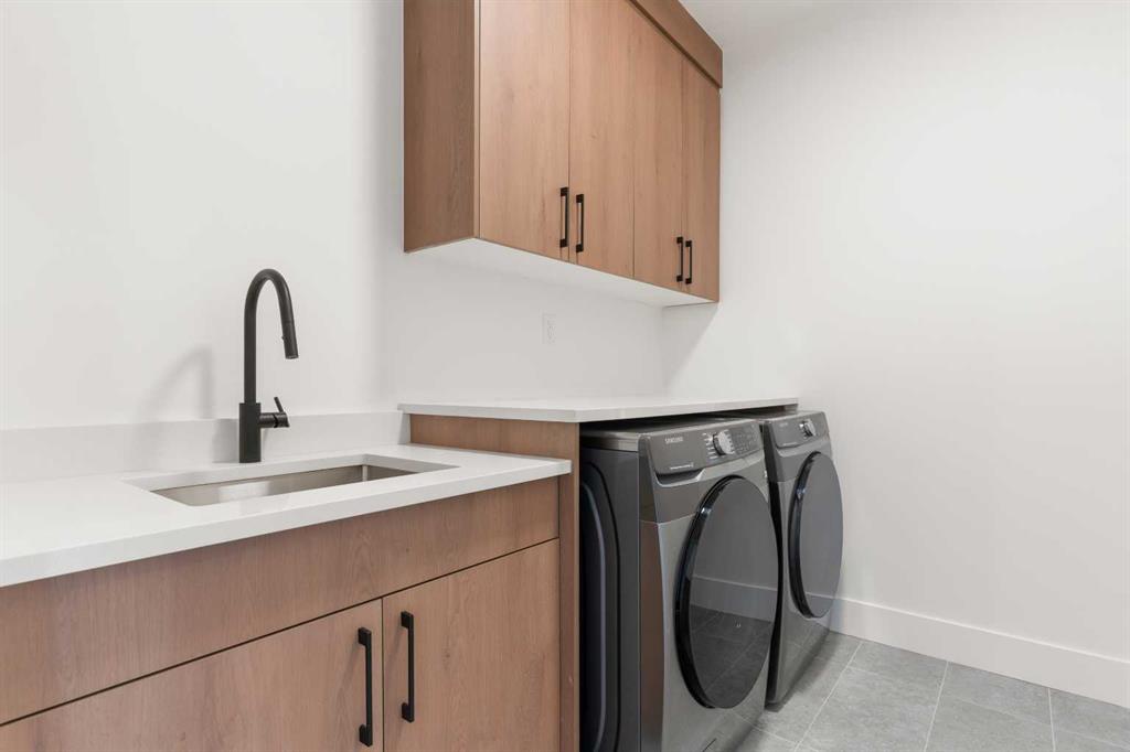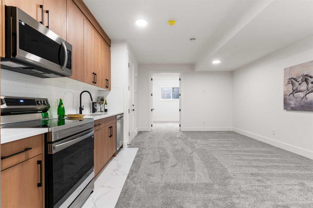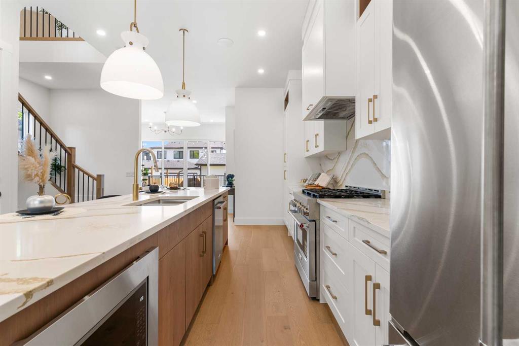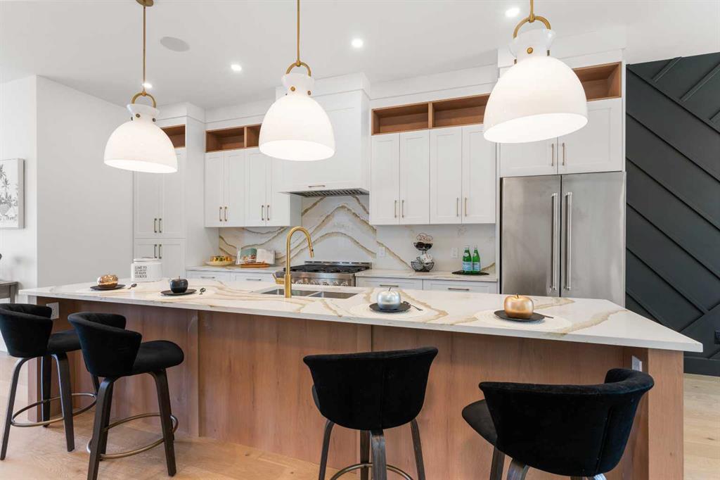 EXTENDED BASEMENT!! Welcome to one of Killarney’s most exceptional homes — a brand new infill offering nearly 2,000 SqFt of beautifully designed living space. Here, elevated style meets everyday comfort in one of Calgary’s most sought-after inner-city neighbourhoods. Thoughtfully crafted for both daily living and upscale entertaining, this home combines modern design, an intelligent open-concept layout, and unmatched functionality into one remarkable package. As you step inside, a beautiful formal dining area sets the tone for the home, flowing seamlessly into the gourmet kitchen anchored by a striking 12-foot quartz island. Designed for both relaxed mornings and upscale gatherings, this kitchen is a space where style and practicality come together effortlessly. Across from the kitchen, a bright and versatile home office offers the perfect place to focus or create. Beyond, the inviting living room showcases a cozy fireplace — perfect for those cold Calgary winters — and glass patio doors that open to a large rear deck, creating a smooth transition between indoor and outdoor living. A built-in mudroom with generous storage and a chic, tucked-away powder room add thoughtful functionality to the main level. Upstairs, the primary suite is a light-filled retreat with a vaulted ceiling, walk-in closet, and a spa-inspired ensuite featuring beautifully patterned floors, dual sinks, and a freestanding tub. Two additional bedrooms, a stylish main bath, and a conveniently located laundry room complete the upper level. Downstairs the extended LEGAL BASEMENT SUITE (pending final approval by the city) is a standout feature, offering even more flexibility with a bright and spacious area. This level includes a full kitchen, open living area, two private bedrooms, a flex room, and dedicated laundry room. Whether envisioned as an income-generating opportunity, a comfortable space for multi-generational living, or an inviting private retreat for guests, this space offers unmatched versatility without compromising style. The property is complete with a double detached garage and is ideally situated on a paved back alley, offering both convenience and functionality. With its elegant finishes, well-planned layout, abundant natural light, and a location just steps from parks, schools, amenities and quick connections to downtown, this home is more than just beautiful — it’s a smart investment in style, comfort, and long-term value.