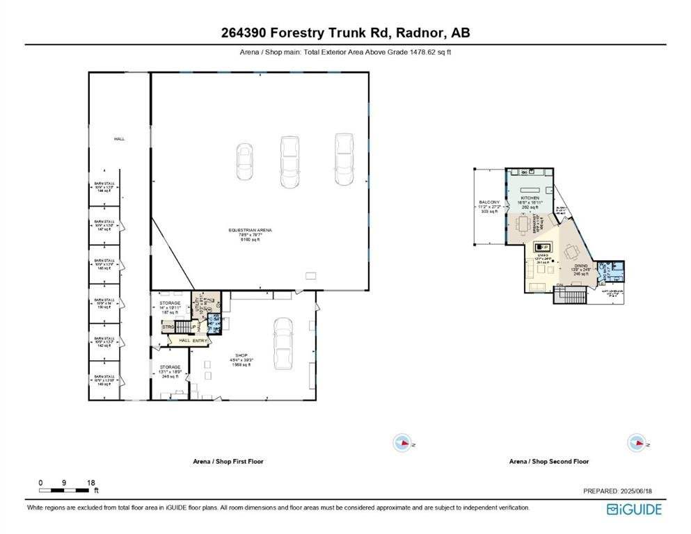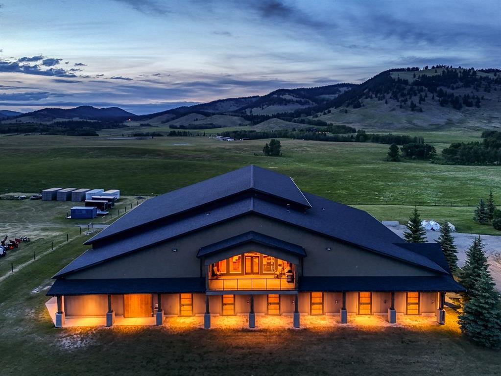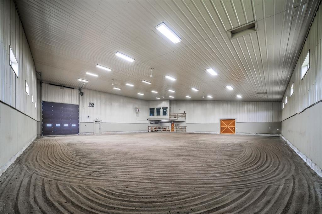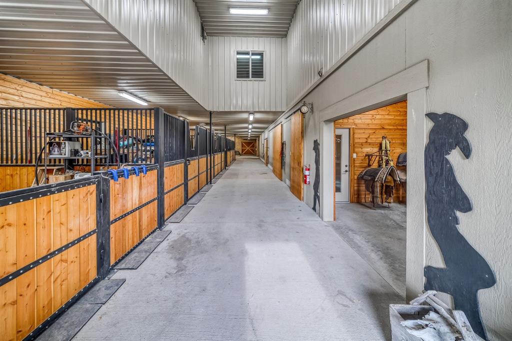 Beyond the main home, the second structure elevates this property into a true luxury compound. It includes a 45’ x 39’ heated workshop, a custom six-stall barn with Dutch doors, and a 78’ x 78’ indoor riding arena with a mezzanine viewing deck. Above it, the bespoke Saloon offers the perfect venue for private gatherings with a fireplace, wet bar, wine fridge, full bath, and stunning arena views.