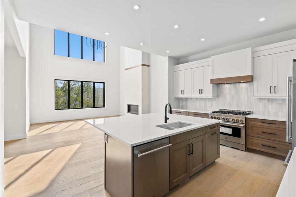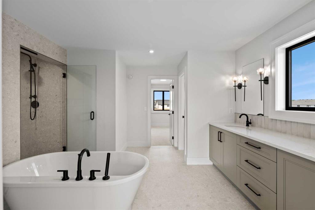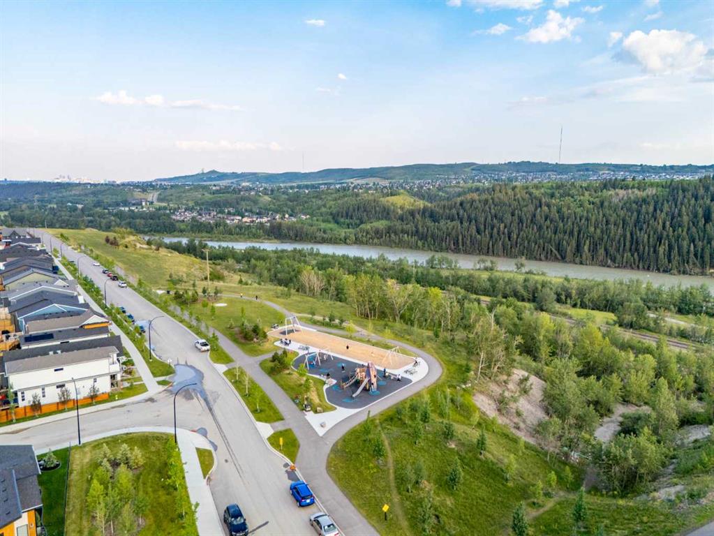 5 BEDS | 4.5 BATHS | 5,054 TOTAL SQ.FT. | RIVER VALLEY VIEWS | PREMIUM WALKOUT LOT | LUXURY FINISHES | Backing directly onto the Bow River valley on a premium south-exposed walkout lot, this brand-new luxury home by Crystal Creek Homes offers over 5,000 sq ft of finished living space. A soaring open-to-above great room and full-width covered deck frame unobstructed valley vistas, the chef’s kitchen pairs two-tone cabinetry with a premium appliance package, and a main-floor office lets you work without leaving the view. Upstairs, the south-facing primary retreat features a private balcony, luxurious ensuite with freestanding tub and oversized tiled shower, and a walk-in closet that feels more like a dressing room. While three additional bedrooms share a Jack-and-Jill bath and a separate full main bath. The walkout level hosts a bright rec area, games space, wet bar and fifth bedroom, all stepping out to a sheltered patio where you can watch eagles glide over the river. Wide-plank hardwood, curated tiles and warm neutral palettes add a relaxed elegance that feels at one with the setting. And the oversized triple garage keeps bikes, kayaks and gear at the ready for weekend adventures on nearby pathways. Complete with A/C, sprinkler system and full landscaping. This is a rare opportunity to own new construction with full builder warranty in Rockland Park - Calgary’s next great master-planned community. With future parks, playgrounds, access to the Rocky Mountains and a private recreation facility with pool. Book your private tour today