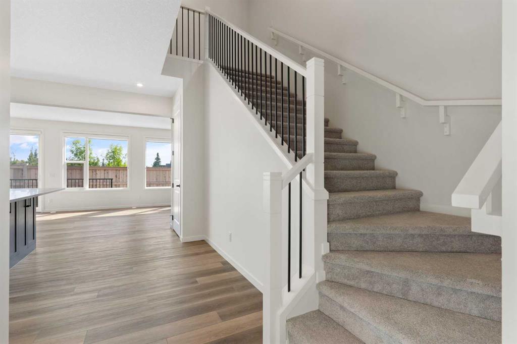 From the moment you step inside the Elbow by Cedarglen Homes, you feel it - this is a home designed for connection, comfort, and possibility. With over 2300 square feet of thoughtfully crafted living space, every detail balances style and function for the way modern families live today. The main floor welcomes you with an open flow that makes gathering effortless. At the heart of the home, the kitchen anchors the space with its striking two-toned cabinetry - bright white along the perimeter contrasted by a bold, dark island that doubles as a casual dining hub. Sleek black hardware, upgraded quartz countertops, and a central island invite conversation while meals are prepared. As the buyer of this home, you'll get to choose your own appliances at the builder's supplier with an allowance of $8954. Just beyond, the great room glows with the warmth of an upgraded fireplace tile feature, while the dining nook spills seamlessly onto the deck - perfect for summer nights spent entertaining under the stars. What sets this home apart is the versatility of a main-floor bedroom tucked just off the foyer. Whether for overnight guests, aging parents, or as a private home office, it offers comfort and convenience rarely found at this price point. A nearby powder room completes this welcoming main level, with the front-attached garage adding everyday practicality. Upstairs, the layout shines for family living. The primary suite is a retreat all its own, privately positioned at the back of the home with a spa-inspired ensuite featuring dual sinks, a walk-in shower, and a generous walk-in closet. Two additional bedrooms at the front share a full bathroom, while a central bonus room creates a flexible hub for movie nights, homework, or quiet reading. Laundry is also upstairs exactly where you need it most. The basement is unfinished with a side entrance - waiting for your creative touch. Set in the prestigious community of West Grove Estates in Calgary’s West District, this home pairs timeless design with an address that truly elevates your lifestyle. Tree-lined streets, nearby parks, and top-rated schools create a sense of community, while shopping, dining, and easy access to downtown or the mountains make every day more convenient and more inspiring. With finishes like warm luxury vinyl plank on the main floor, cozy carpet upstairs, and designer accents throughout, the Elbow is built not just to live in, but to grow into - a place for milestones, memories, and everything in between. Don’t just imagine the lifestyle, come experience it. The Elbow at West Grove Estates is ready to welcome you home. *Some photos are virtually staged*