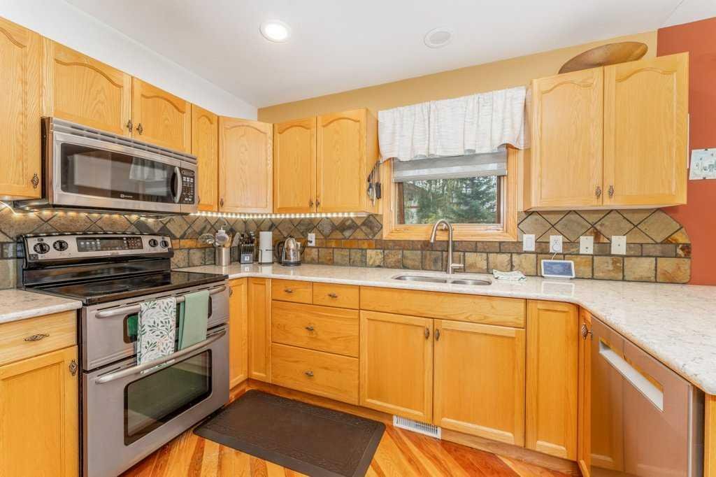Inside, the renovated kitchen is the heart of the home, while the open, bright layout creates a warm and inviting atmosphere. The fenced, flat backyard is perfect for kids, pets, or summer barbecues, complete with a storage shed and plenty of space to play. Entertain in style with a multi-level deck conveniently set off the dining area. It's large enough for a full conversation set, expanding your living space in the warm months. The lower deck is roughed in for a hot tub.