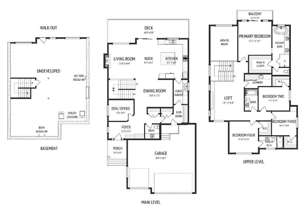 Currently under construction in Legacy Estates with an anticipated completion in Summer 2026, this custom two-storey walkout offers a refined balance of scale, design, and location. Backing directly onto the pathway system and green space, the setting provides immediate access to parks, playgrounds, and nearby amenities. The home offers just under 3,000 sq.ft. of developed living space above grade, an attached triple garage, and an additional 1,349 sq.ft. walkout unfinished basement, allowing for future customization. The main level features 10’ ceilings, engineered hardwood flooring throughout, and a dramatic open-to-above living room with nearly 20’ ceiling height, where expansive windows and a statement fireplace create a strong architectural focal point. Several thoughtfully designed feature walls are incorporated throughout the home, adding depth and visual interest. A rear deck extends off the kitchen and living area, positioned to overlook the green space beyond. The kitchen is designed for entertaining, with extensive custom cabinetry, quartz surfaces, and a butler’s pantry/walk-in pantry combination that enhances both storage and functionality. The main level is completed by a separate dining area, private office, powder room, two full closets, and a well-designed mudroom. Upstairs, 9’ ceilings carry through four bedrooms. The primary suite includes a well-appointed ensuite and walk-in closet, while a secondary bedroom features its own private ensuite. Two additional bedrooms are generously sized, each with walk-in closets, and are supported by a full bathroom. A spacious upper-level laundry room offers additional cabinetry and counter space. A well-considered opportunity to secure a new-build estate home in one of Legacy’s most desirable enclaves, offering a walkout lot, elevated design elements, and a customizable lower level.