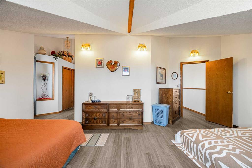 The home includes four huge bedrooms, with three upstairs, including the primary suite with ensuite and full bath, plus one bedroom and a den on the main floor. The home also features 3 full bathrooms and generous living spaces throughout. Additional highlights include three wells, 2 being utilized on the property, and potential income from oil leases, further enhancing the value and versatility of this remarkable landholding. Whether you are looking to expand a farming operation, start a farming legacy of your own, want to expand or grow a horse set up or enjoy country living on a significant parcel of land close to Calgary with possible development potential down the road, this property offers possibilities for all of these things.