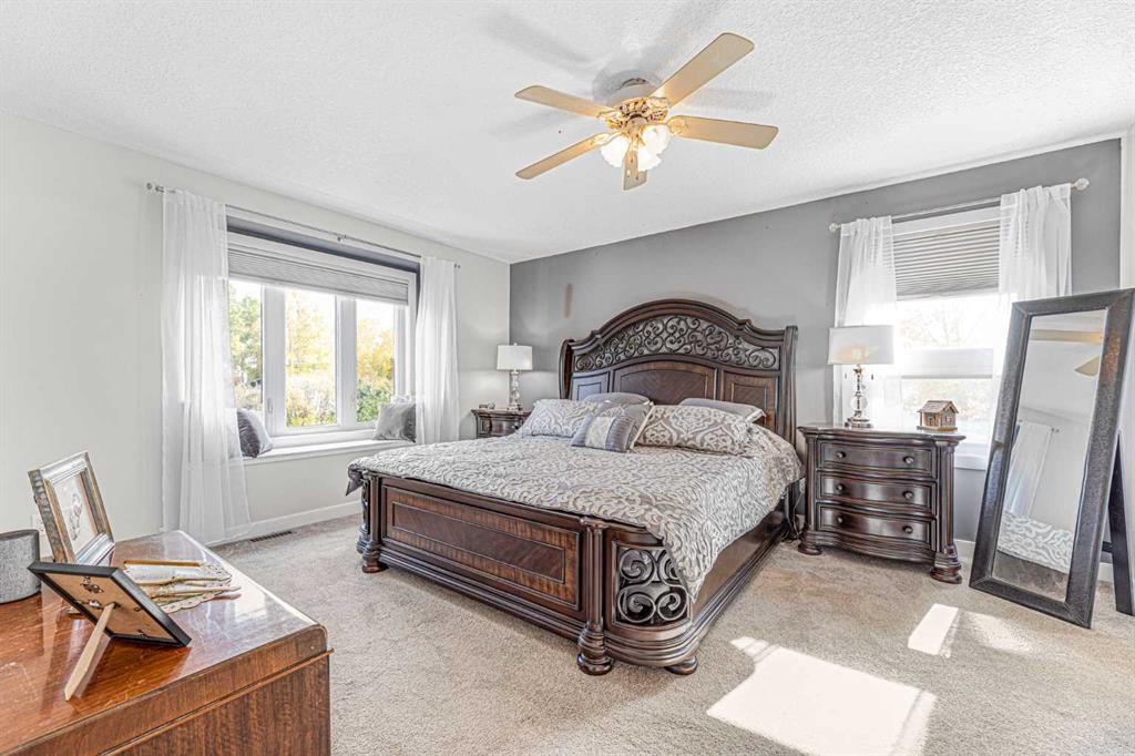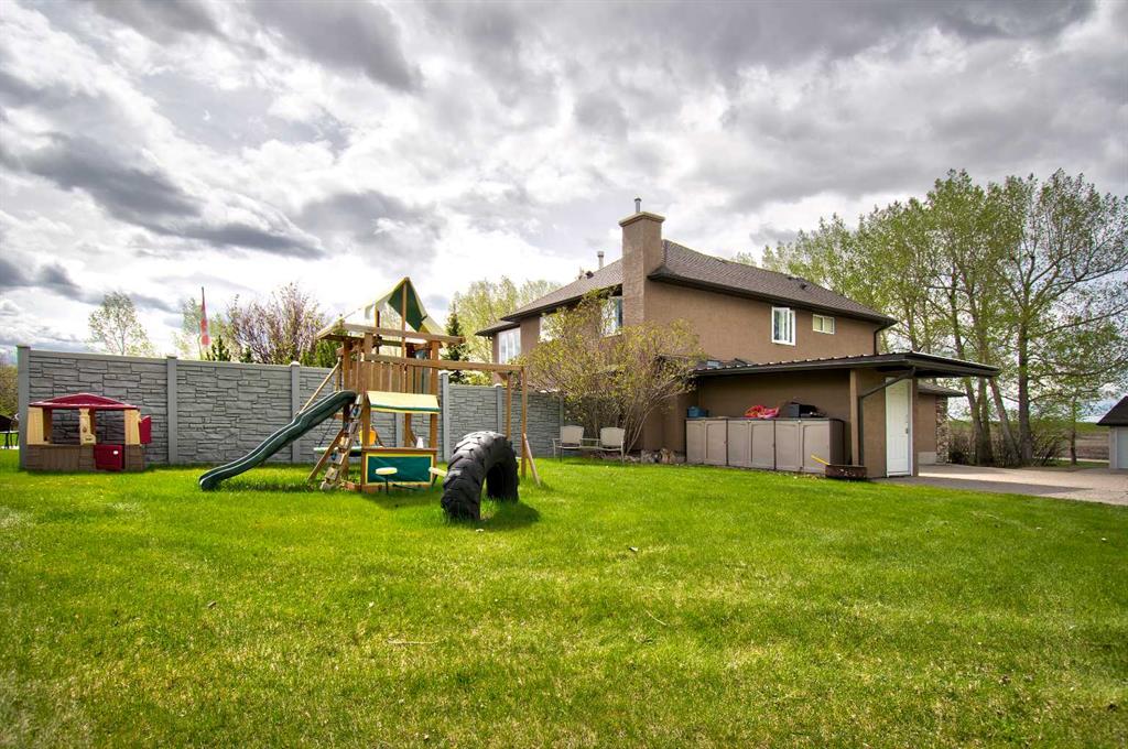 Welcome to Airdrie - country living with city convenience. As you arrive, you’ll be greeted by a stunning two-story home on 3.2 acres within city limits. The property includes a triple detached garage, providing ample space for your vehicles and hobbies, in addition to the double attached garage for everyday convenience. Inside, the main floor features a traditional layout, including a formal living room and dining room. The heart of this home is undoubtedly the custom kitchen, adorned with solid wood cabinets, granite countertops, and top-of-the-line stainless steel appliances. A walk-in pantry ensures you have plenty of storage. Enjoy your morning coffee in the cozy breakfast nook, overlooking the gorgeous backyard. Adjacent to the kitchen, a sunken living room invites you to unwind by the gas fireplace, creating a warm and inviting atmosphere. Off the living room is a home office that could also function as an additional bedroom, along with a convenient two-piece bathroom and a custom mudroom with a sink, situated just off the garage. Up the curved staircase with skylights above, you’ll discover four bedrooms, including the primary bedroom with a walk-in closet and a separate wardrobe and hidden storage. The five-piece bathroom is shared for upstairs while you get your own personal ensuite with a corner shower and a jetted tub. The fully finished basement features a spacious entertainment rec room equipped with a wet bar and ample cabinet space. It’s the perfect spot for family movie nights and hosting friends. Additionally, you’ll find a well-appointed four-piece bathroom, a cold room, and a hobby room, plus a SEPERATE ENTRY COVERED WALK UP that gives the basement easy and private access. Now, let’s talk about the outdoor space. Your backyard is complete with a playground, fire pit area, and an entertainment zone where you can host barbecues and soak in your hot tub. The mature trees provide natural privacy, and there’s plenty of storage for your RV, boats, and all your toys. Don’t miss the opportunity to make this extraordinary property your forever home!
