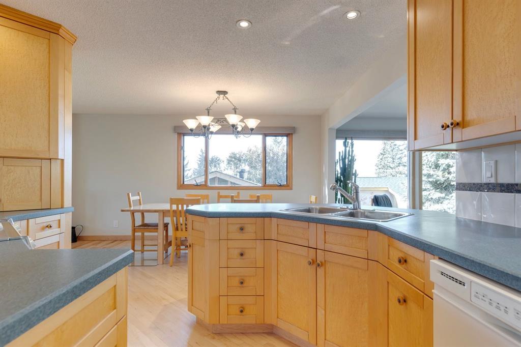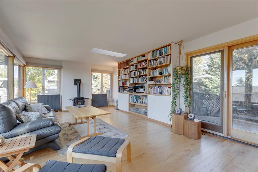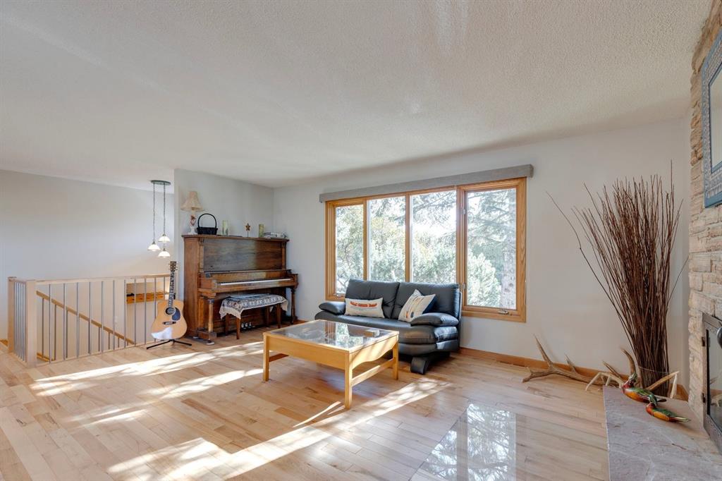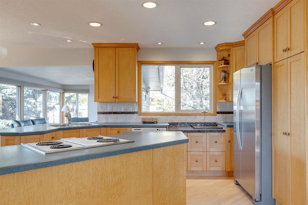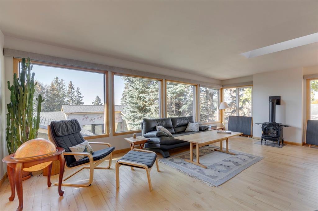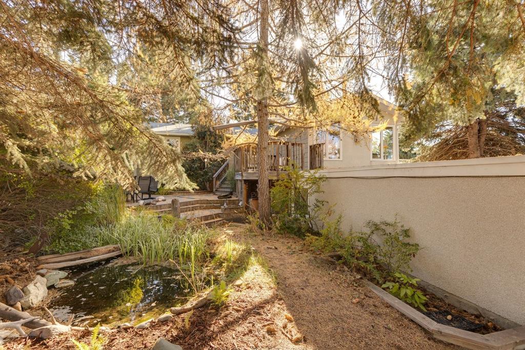 Welcome to this rare opportunity to own a beautifully renovated home in one of Calgary’s most sought after neighbourhoods. Nestled in the established and serene community of Charleswood, this nature wrapped retreat is steps to Nose Hill Park, and minutes to the University, LRT, Hospitals, and top schools The home is surrounded by forest-like, low maintenance landscaping that features mature trees, a self-contained creek with a waterfall and pond, colourful perennials, and an automatic irrigation system. Outdoor living is enhanced by a multi-tiered cedar deck, including a two-level main deck, a garage-roof deck with garden planter, and a lower private deck surrounded by gardens. There's also a reinforced rear concrete pad for RV or additional parking. Inside, you’ll find over 2,700 sq ft of thoughtfully renovated living space between two levels, offering 4 + 1 bedrooms, 2 full bathrooms, and multiple versatile living areas. The home’s layout is ideal for families, multigenerational living, or future development, with zoning that allows for secondary suites and the structural potential to add a third storey enhancing the already stunning mountain views. The main floor features warm maple flooring, a spacious living room with a gas & wood burning stone fireplace, and a sun filled dining area with southwest exposure. A beautifully renovated sunroom steals the show with a full wall of windows, Pella sliding doors to the cedar deck, a gas stove, built-in bookshelf wall, and new maple flooring. The adjacent kitchen is equipped with refinished maple quaker cabinetry, granite counters and backsplash, La JennAir range with downdraft, dishwasher, pot drawers, and a built-in recycling centre blending style and function. The main floor also includes a flexible bedroom layout that can be configured as one or two bedrooms to suit your needs, along with a full bathroom featuring an ultra-jet air tub, maple cabinetry, and tiled finishes. The lower level, fully refreshed in 2024, adds a large entertainment room with a Valor gas fireplace insert, a custom fir mantle designed for an 85” TV, and premium vinyl plank and oak parquet flooring. Three additional rooms can function as bedrooms, offices, or hobby spaces. A second full bathroom, two furnace/storage rooms, and laundry complete the level, offering both comfort and practicality. Access to the detached garage through a covered walk-way ensures you'll always remain dry while additionally offering storage for firewood. Blending natural wood, stone, and desert-toned tile finishes, this home harmonizes beautifully with its lush surroundings. Whether you’re entertaining guests in the sunroom, exploring nearby Nose Hill Park, or unwinding in your private backyard oasis, this stunning home offers the perfect balance of nature, comfort, and city convenience. Book your showing today and experience this truly one-of-a-kind property.