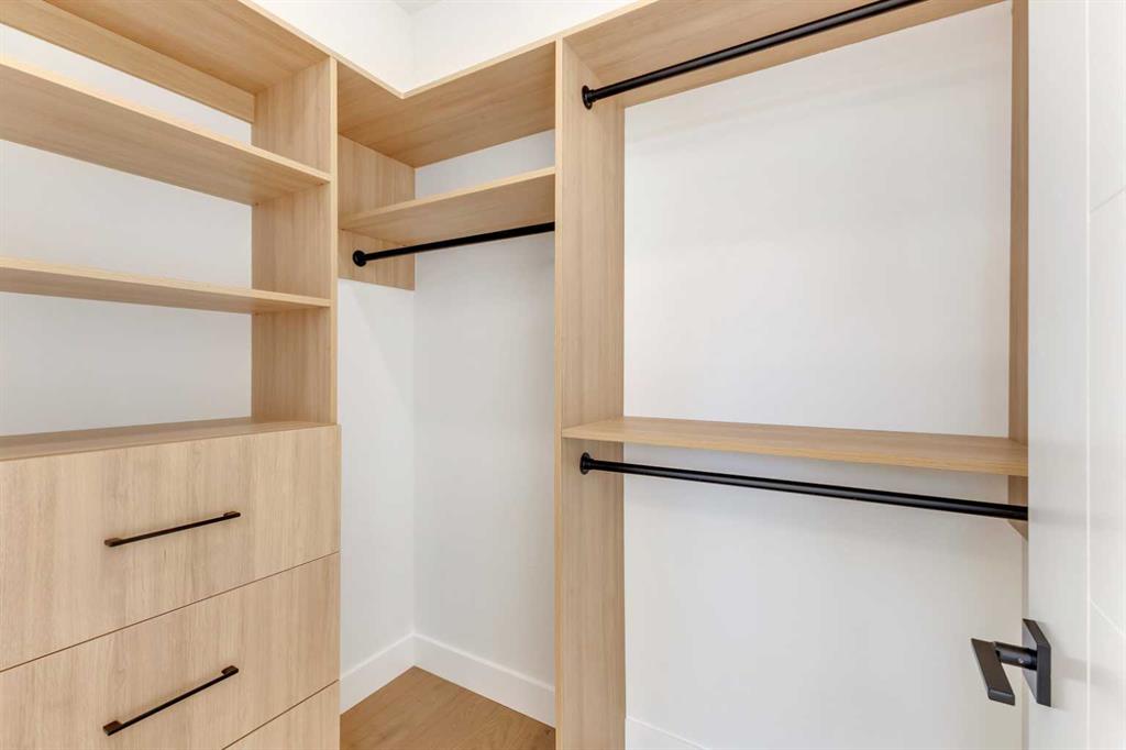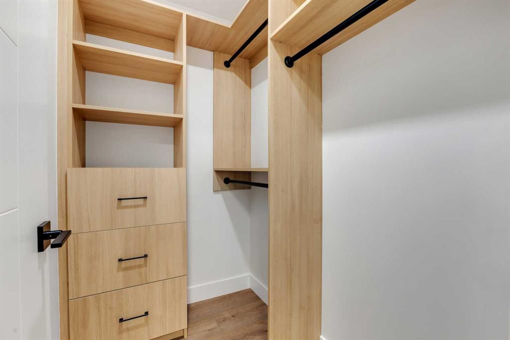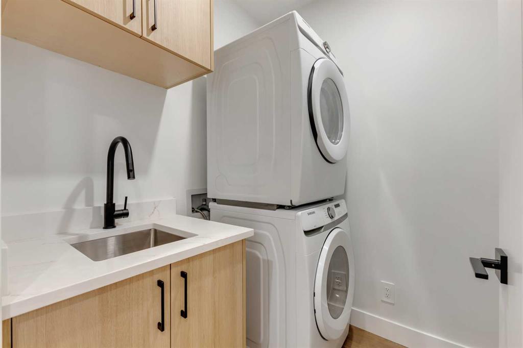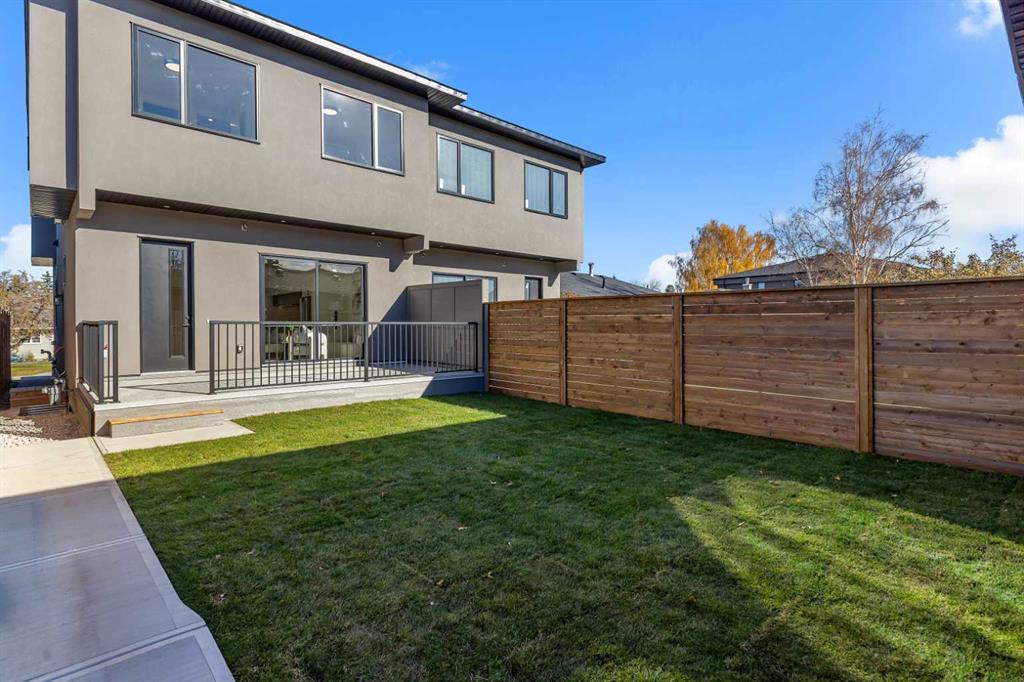 LOCATION LOCATION! Built on a quiet street only steps to West Confederation Park, this BRAND-NEW semi-detached infill in Banff Trail offers a superb floorplan with a LEGAL BASEMENT SUITE (Approved with the permit & subject to final inspection by the city). Banff Trail is well-situated in inner-city NW, with lots of outdoor recreation, schools, & shopping nearby. Confederation Park & the Charleswood Tennis Courts & Splash Park are a quick walk down the street, the City of Calgary toboggan hill is only 6-mins away, and the Confederation Park Golf Course is only 10-min down the road; a quick 9 holes after dinner can be a weeknight reality! Banff Trail School is mins away & Calgary Montessori School, Branton School, Rosemont School, and St Francis High School are all close by, with SAIT & UofC a short bike ride away. Dining options, shopping, amenities, and more are all at your fingertips, with Banff Trail, North Hill Centre, and all the businesses along Crowchild easily accessible from this inner-city location. With an amazing layout & premium finishes, you’ll discover a beautiful blend of both a stylish & functional lifestyle. This home features several upgrades, including engineered hardwood & 10-ft ceilings on the main level, soaring ceilings on the upper floor & a fully-developed basement w/ a LEGAL SUITE. The main floor boasts large primary living spaces, including a bright front dining/flex room, a large central kitchen with an oversized island w/ bar seating, ceiling-height custom cabinetry, and built-in pantry & coffee station. The large rear living room is finished w/ an inset gas fireplace w/ modern full-height surround, built-in millwork, and large windows overlooking the SOUTH back patio – perfect for family gatherings! A rear mudroom hosts a bench with hooks, with direct access to the double detached garage out back and an elegant, private powder room. Upstairs, you'll find the two secondary bedrooms w/ built-in closets, a spacious laundry room and a main 4-pc bath w/ modern vanity and a tub/shower combo w/ full-height tile surround. The primary suite features a soaring vaulted ceiling, multiple tall windows for tons of natural light, and a large walk-in closet w/ built-in storage. The 5-pc ensuite shows off with heated tile floors, glass shower w/ full-height tile, a free-standing tub, a modern vanity, dual under-mount sinks, and a separate water closet. The fully-developed LEGAL BASEMENT SUITE (approved in the development permit by the city) enjoys private access through a secure side entrance, two generous-sized bedrooms w/ built-in closets, a spacious and contemporary 4-pc bath w/ modern tile & vanity, large windows, space for a washer & dryer, plus a large living room area! The kitchen is thoughtfully arranged with quartz countertops & full-height cabinetry. Take a drive by this property and see how this house & fantastic location will suit your family perfectly! * Photos from Show Suite finishes may vary slightly*