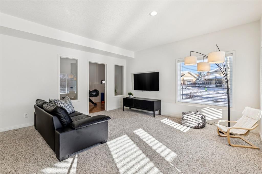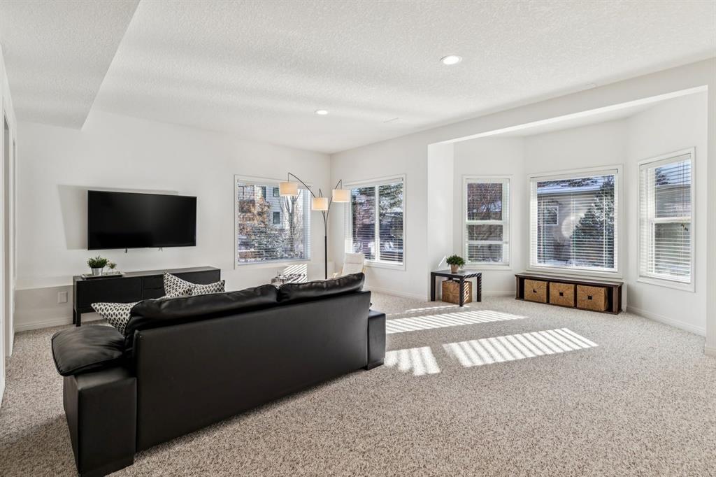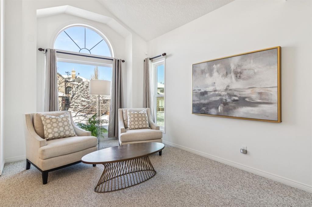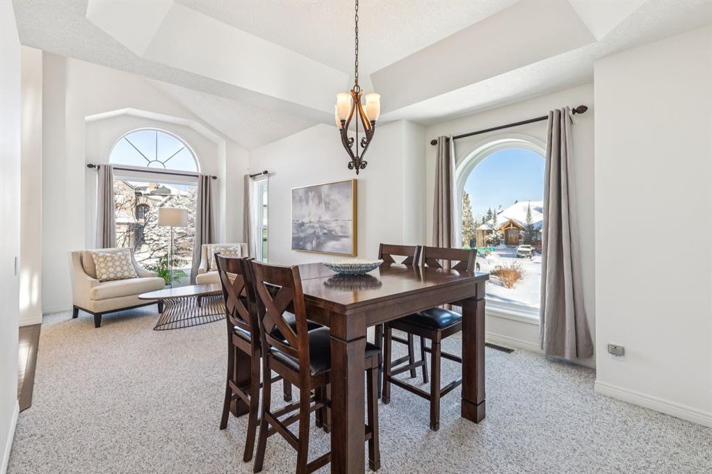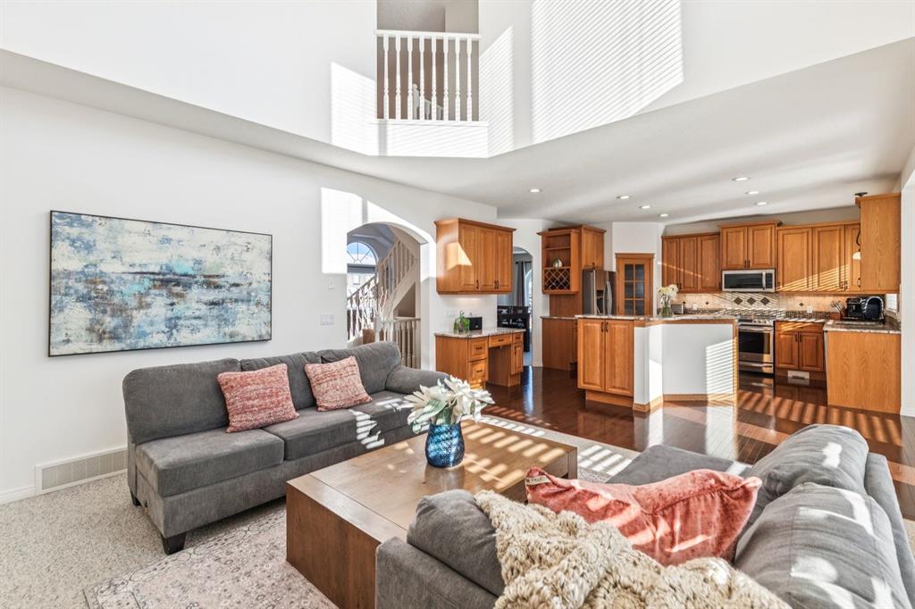 Prepare to be captivated by this stunning home that blends timeless elegance with quality craftsmanship in the sought-after Evercreek Bluffs community. Arriving here feels like a true escape from the city while still being minutes from the natural beauty of Fish Creek Provincial Park. This prestigious location offers the perfect balance of peaceful surroundings and convenient city living. Meticulously maintained, this home offers over 2,270 sqft above grade plus a fully developed walkout basement, totalling 4 bedrooms and 3.5 bathrooms. Thoughtful updates and functional design elevate the traditional floor plan into a modern family home. Expansive south-facing windows (majority recently upgraded to triple-pane) and soaring vaulted ceilings fill the home with abundant natural light. The formal living room sits to the left of the front entrance and flows seamlessly into the formal dining area, ideal for entertaining. At the back of the home lies the true heart of the space: warm and inviting family room featuring a cozy gas fireplace, bright dining nook, and well-appointed kitchen complete with an oversized island, granite countertops, quality oak cabinetry, and stainless steel appliances. Step outside to the south-facing deck, perfect for hosting family and friends or enjoying quiet evenings beneath the pergola. The main floor is completed by a versatile den/office, powder room and functional mudroom. Upstairs, the spacious primary retreat includes a cozy sitting area - perfect for relaxing with a favourite book - along with a spa-inspired ensuite featuring dual sinks, soaker tub, separate shower, and private water closet. The walk-in closet includes extensive built-in organizers. Two additional bedrooms are located on the opposite side of the upper level with 4-piece bathroom between the rooms. The walkout basement features in-floor heating within the concrete slab and offers an oversized rec room ideal for movie nights and games, an additional bedroom, gym/hobby room, and a beautifully designed laundry space.