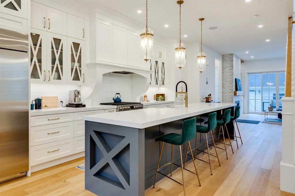 OPEN HOUSE NOV 1st 2-4pm! Experience refined inner-city living in this beautifully crafted modern home by Palatial Homes, a well-respected builder known for quality craftsmanship in the community. Offering over 2,600 sq. ft. of developed living space designed for today’s lifestyle, every detail has been thoughtfully curated from the wide-plank engineered hardwood floors and 8’ doors to the expansive windows that flood the home with natural light. The main level strikes the perfect balance of style and function, anchored by a gourmet chef’s kitchen featuring a large quartz island, ceiling-height cabinetry, and a Fulgor Milano gas range for the passionate cook. The adjoining living room invites relaxation with its sleek gas fireplace, built-in shelving, and sliding glass doors that open to a private back deck with metal railings perfect for summer evenings or weekend gatherings. Upstairs, you’ll find three spacious bedrooms, including a peaceful primary suite with a beautiful walk-in closet and a serene spa-inspired ensuite featuring dual vanities, a freestanding soaker tub, heated floors, and a large glass-enclosed shower. Two bright bedrooms share a sleek full bathroom, while the convenient upper-level laundry adds an extra touch of everyday ease. The fully developed lower level provides flexibility for your lifestyle, complete with a large recreation area, wet bar, fourth bedroom (could also be utilized as home gym or office), and a full bathroom. The home is equipped with central air conditioning for year-round comfort and roughed-in in-floor heating for added warmth during the winter months. Perfectly situated within walking distance to top-rated community schools, just steps to Helicopter Park, the Bow River pathway system, shopping, restaurants, and Kensington, this home is a rare find. West Hillhurst is known for its friendly neighborhood spirit, outdoor swimming pool, skating rink, and active community association offering events, programs, and sports such as soccer, hockey, and pickleball. With quick access to downtown, Foothills & Children’s Hospitals, the University of Calgary, and major roadways, this home truly offers inner-city living at its finest.