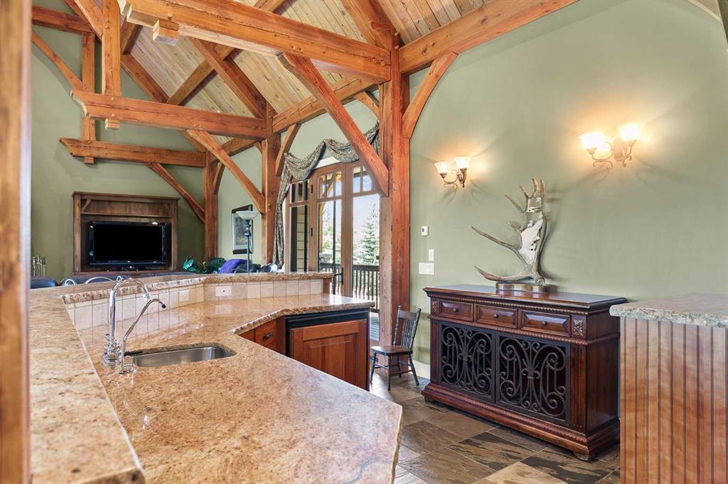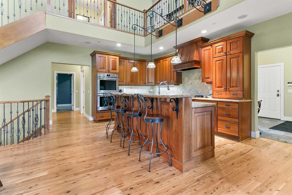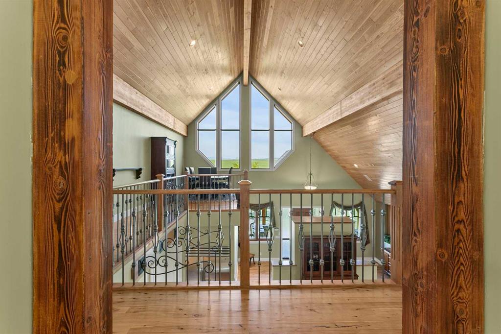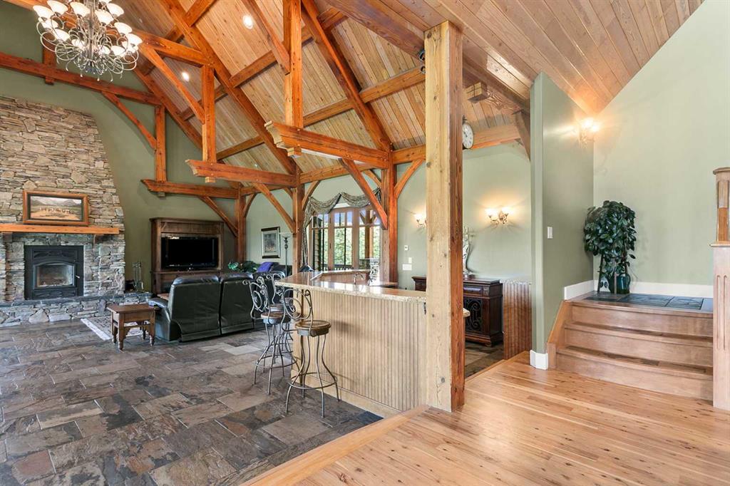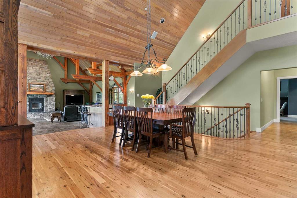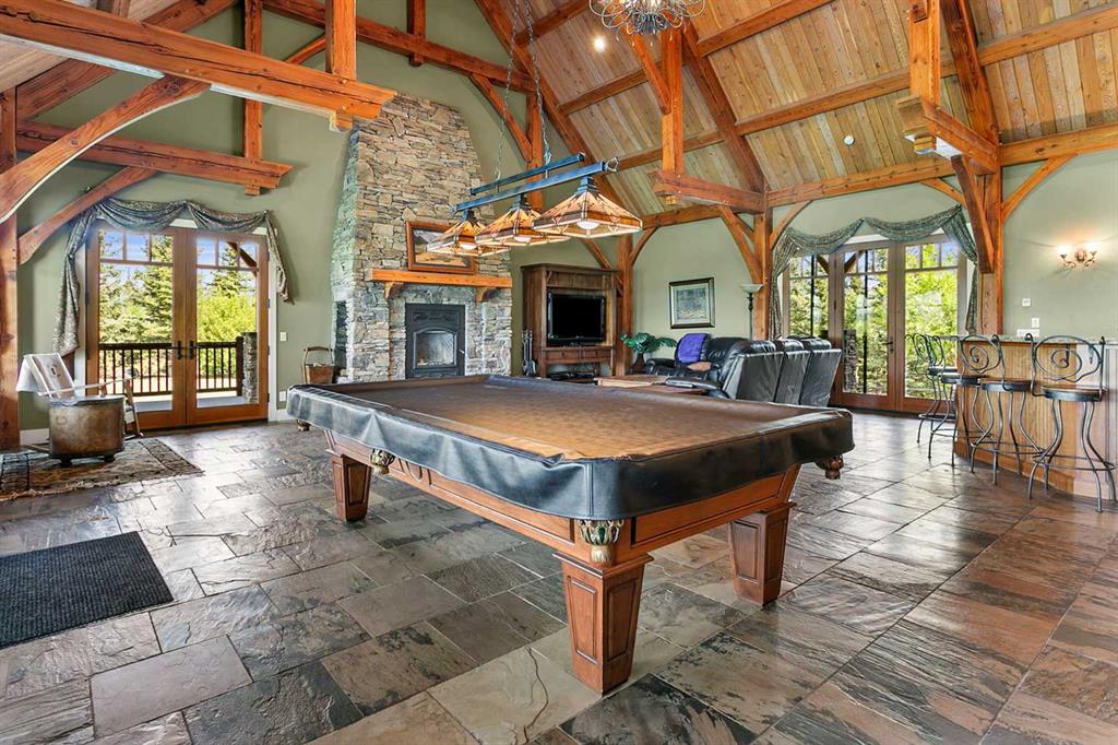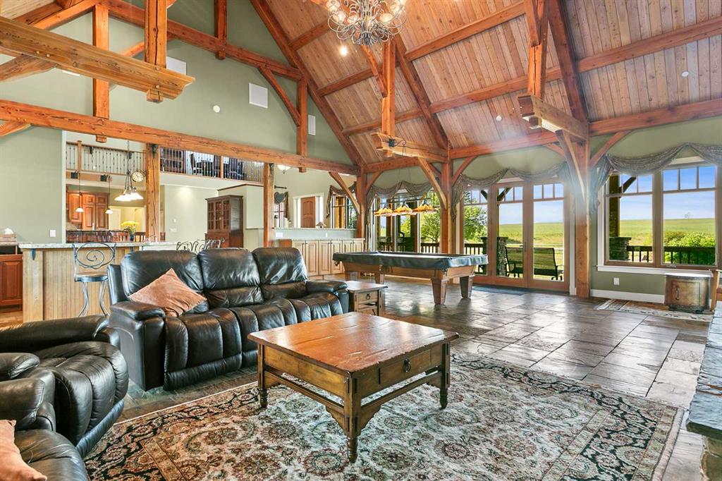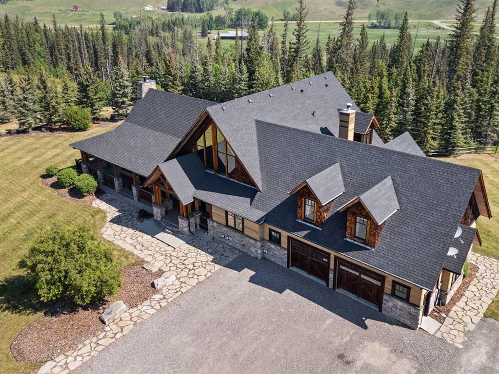 Discover the epitome of country living in this stunning residence, boasting nearly 9,000 square feet of luxurious space, nestled among serene trees on 160 acres near Millarville. This exceptional property offers breathtaking views of the rolling foothills and the majestic Rocky Mountains, creating a tranquil haven that feels truly magical. Perched at the highest point of the land, the main home is designed to maximize these spectacular vistas and includes a fully legal suite and a giant 62x40 foot shop. A second home is conveniently located near Highway 549, ensuring easy access while maintaining privacy. As you step inside, the awe-inspiring 30-foot high ceilings of the "A" frame design will immediately captivate you. Massive timber beams, expansive windows, and exquisite finishes are sure to leave your guests speechless. The expansive great room features a dramatic river rock fireplace, leading seamlessly into a gourmet kitchen equipped with granite countertops, a spacious island with an eating bar, top-of-the-line appliances, and a large walk-in butler’s pantry. The dining room flows into a vaulted living area, perfect for entertaining. This magnificent home includes 7 bedrooms and a fully developed basement. The main level features a luxurious master retreat with an oversized walk-in closet and a beautifully appointed ensuite. Upstairs, you’ll find 2 additional bedrooms with a convenient Jack and Jill bathroom, while the loft above the garage includes a full legal suite with its own kitchen. The fully finished basement boasts a massive theater room, a games room, 2 additional spacious bedrooms, and 3 storage rooms. Enjoy outdoor living at its finest with a large deck, a cozy firepit, and a custom-built BBQ area, all surrounded by stunning views perfect for horse and cattle enthusiasts. As you approach from the west end, take note of the second home and shop, and be sure to leave time to explore the expansive heated workshop. Crafted with love and expertise by the current owners, this property is the culmination of years of country living experience, ensuring every detail is perfect. Don’t miss the opportunity to make this hidden gem your own!