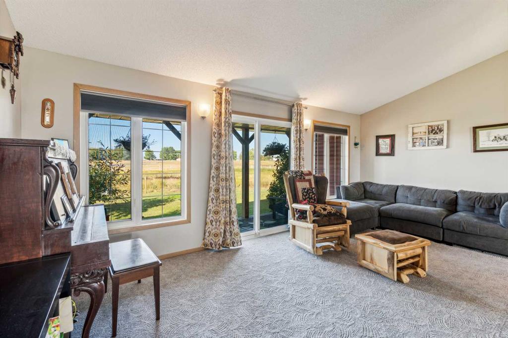 CHECK OUT the amazing AERIAL VIDEO of this property at this link: https://youtu.be/fjUYYL55fkQ. WELCOME to your own slice of country living with city conveniences close by. Situated on approximately 10 acres, this exceptional property offers the space, comfort, and functionality your family needs to live, grow, and thrive. As you arrive, you’ll immediately appreciate the thoughtful layout of this beautifully positioned bungalow, featuring both east- and west-facing decks—perfect for enjoying morning coffee or unwinding with sunset views and a glass of wine. Inside, the main level offers three bedrooms, including a spacious primary suite with double closets and a 3-piece ensuite. The open-concept kitchen boasts ample cabinetry, generous counter space, and a large pantry, flowing seamlessly into the dining area—ideal for family meals and entertaining. A huge living room provides plenty of space for gathering, highlighted by a two-sided gas fireplace shared with the kitchen for added warmth and ambiance. Patio doors lead to the back deck, offering easy access to the yard and a perfect spot to watch the kids play. Downstairs, you’ll find a versatile recreation/play area, an additional 3-piece bathroom, a generous guest space with wall-to-wall closets, a large office or flex room, convenient laundry, and an oversized storage room to keep everything organized. The double attached garage is heated and insulated, complete with a workbench, extensive shelving, and a sink, plus plenty of additional parking outside. For the outdoor enthusiast or equestrian, this property truly shines. The impressive 47’ x 43’ barn features five stalls, a tack room/office, hay storage, and drive-through access. Outside, you’ll find four horse paddocks, pasture space, garden, many recently replaced fences, and a fully equipped outdoor riding arena with night lighting. Two automatic waterers add convenience and functionality. Major updates include new siding, new roof and eaves on both the home and barn (2022), new windows (2011), new well pump (2023) and a brand-new septic field (2024) with a completed Septic Feasibility Report—offering peace of mind for years to come. Located just 5 minutes from Langdon, you’ll enjoy easy access to shops, restaurants, cafes, and everyday services. Calgary is only 15 minutes away, downtown Calgary just 30 minutes, and Strathmore and Chestermere are each a quick 15-minute drive. Nothing to do but move in and enjoy. This is the lifestyle you’ve been waiting for—don’t miss it!