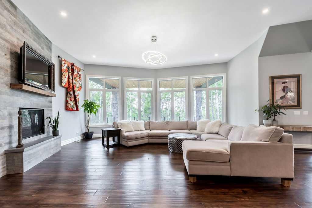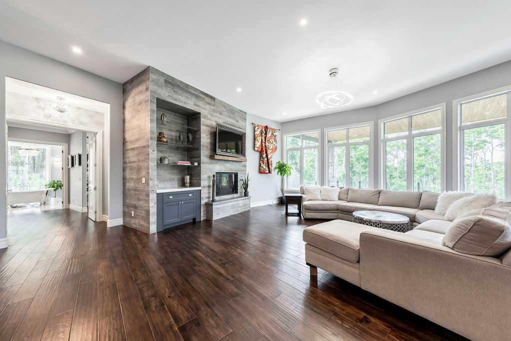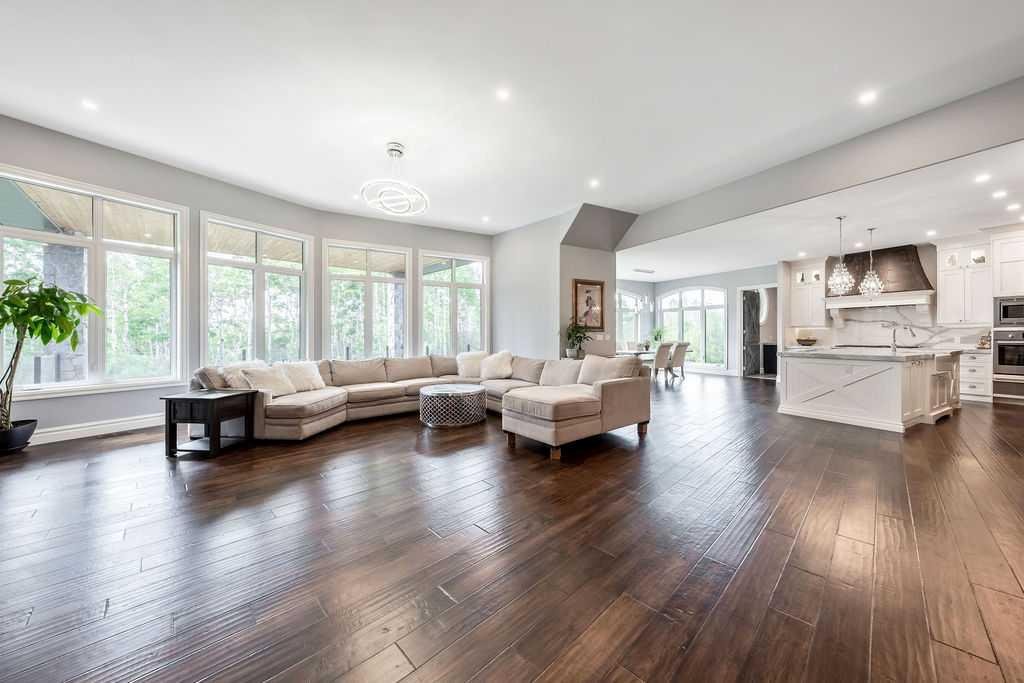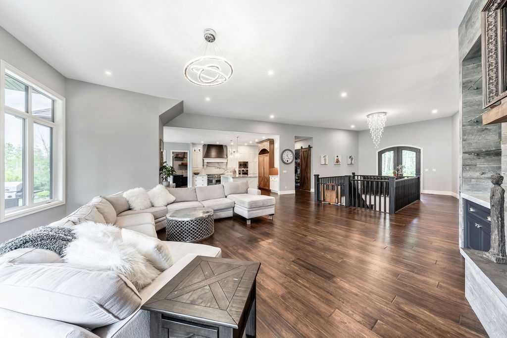 The home is stunning and boasts 3,400 sq ft of impeccably finished living space on the main floor, featuring 3+ bedrooms and remarkable 12-foot high ceilings in the main area, with 10-foot ceilings throughout the rest of the rooms. The spacious main area is perfect for entertaining family and friends, highlighted by expansive windows that bring in natural light and breathtaking views.