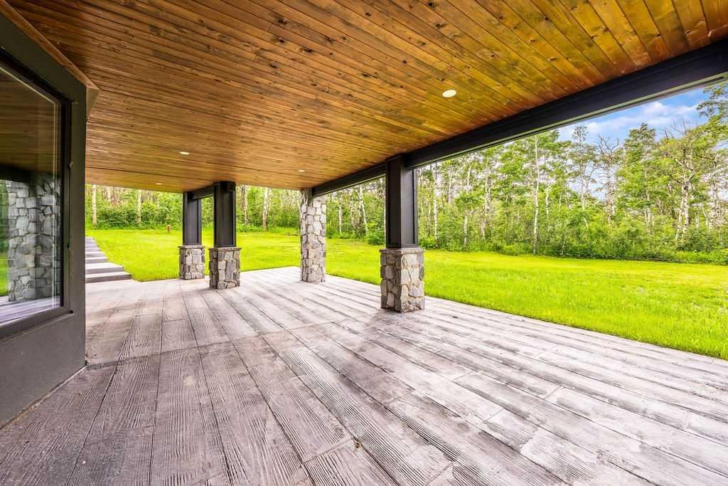 The undeveloped walk-out basement, with 10-foot ceilings, is ready for customization. With roughed-in plumbing for 3 bathrooms and a separate furnace, this basement presents the perfect opportunity to create a home theater, games room, additional bedrooms, or a secondary suite for multi-generational living (upon approval from Foothills County). There are 2 exterior doors that lead out to a stamped concrete patio that is covered by a pine ceiling fit with pot lights.