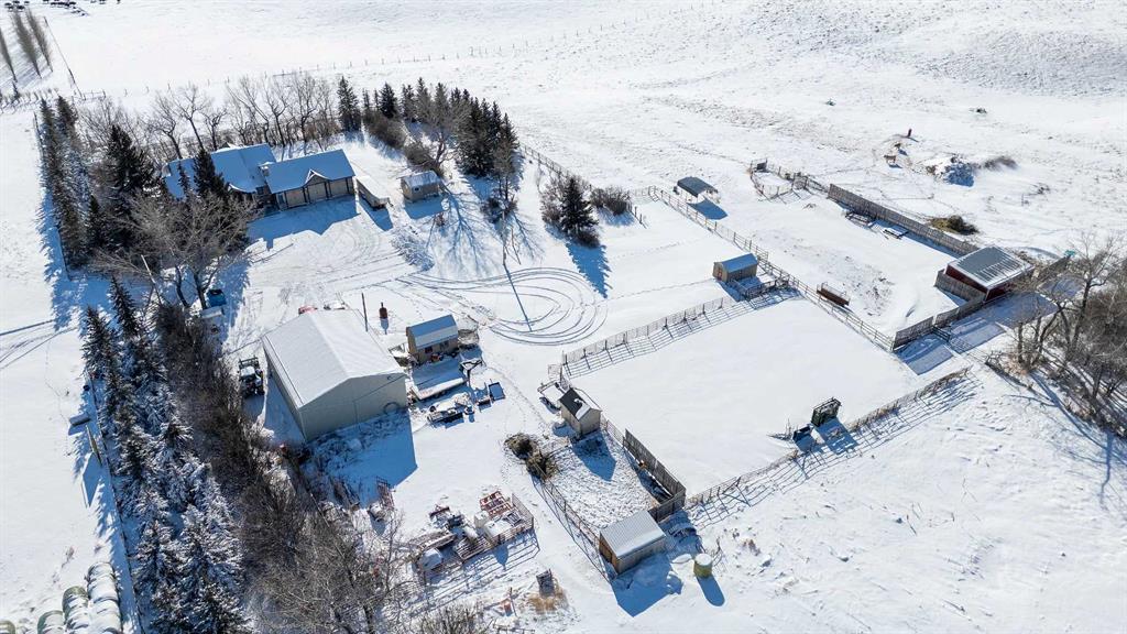 OPEN HOUSE SATURDAY FEBUARY 28, 2026 from 1-4pm! Amazing opportunity just outside of Airdrie! This 31.78 +/- acre very private and sheltered country retreat must be seen! Upon entering the 1,905+/- WALK-OUT BUNGALOW you are greeted by hardwood floors, huge windows, VAULTED ceilings, pot lights, and a very open layout. The gourmet kitchen is includes custom cabinetry, a large breakfast bar, upgraded counter tops, stainless steel appliances, and loads of storage. The living room is very spacious and offers a stone covered gas fireplace as a focal point. The primary retreat is huge with big windows and a spa like 5 pce ensuite featuring a jetted tub, walk-in shower, and a fantastic closet. There is a secondary bedroom on main floor currently being used as an office. Completing the main floor is a huge laundry/mudroom that leads to the triple attached heated garage that has enough space for your vehicles and toys. The lower level is fully finished with in-floor heat and offers three additional bedrooms, a wet bar, and a great sized recreation /games room. Outside you will find a small barn and a 36x48 shop with an overhead door with additional storage (both with power). There are 10 acres +/- of newly seeded hay/pasture land and an insulated chicken coup/shed. The yard is beautifully landscaped with fruit trees, berry bushes and perennials. The exterior of the house has programmable LED lighting recently installed as well! This property really must be seen to be appreciated! Call for more details or to schedule a private viewing.