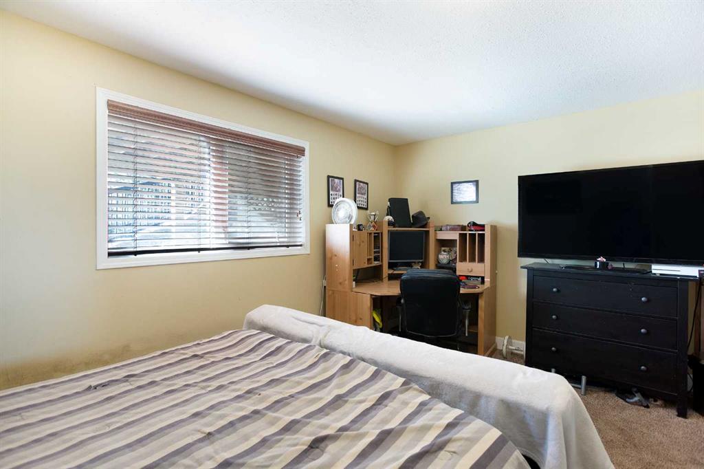 Equestrian use is well supported with an automatic horse waterer, a 12’ x 22’ hay shed complete with power and water, a horse shelter, and quick access to nearby riding facilities and equestrian communities. Inside, the main floor offers a bright, open living and dining area, along with a functional kitchen featuring modern appliances and generous cabinetry. Three bedrooms and two full bathrooms complete this level, including a primary bedroom with a private four-piece ensuite.