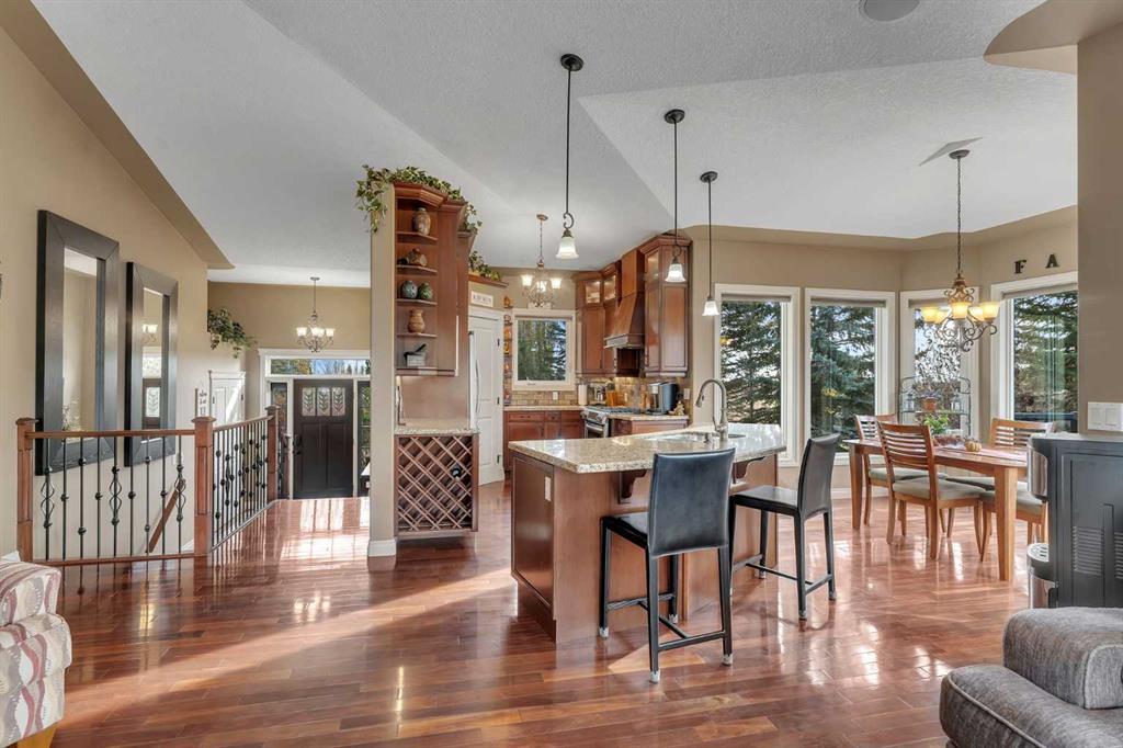 4 ACRE LOT!! FULLY LANDSCAPED!! OVERSIZED & HEATED TRIPLE ATTACHED GARAGE!! MASSIVE DRIVEWAY FOR RV & TOYS!! SEPARATE WORKSHOP GARAGE (51'x31.2')!! 3400+ SQFT OF LIVING SPACE!! 6 BEDROOMS!! 3.5 BATHS!! This beautiful acreage offers the perfect blend of space, comfort, and functionality! The main floor features a bright living area with a cozy fireplace, a stunning kitchen with a large island, pantry, and custom cabinetry, plus a spacious dining area with access to the deck overlooking your landscaped yard. The PRIMARY BEDROOM includes a 4pc ensuite, walk-in closet, and a private balcony with peaceful backyard views. Two additional bedrooms share a 4pc bath, and there’s also a convenient 2pc bath and main floor laundry with access to the garage. The OVERSIZED TRIPLE GARAGE is heated with IN-FLOOR HEATING. Electric IN-FLOOR HEATING in every bathroom, the front entrance, and the laundry room — adds an extra touch of luxury. The in-floor heated basement includes 3 bedrooms (one currently used as an office), a 3pc bath, a huge recreation area, and ample storage. The SEPARATE WORKSHOP GARAGE (51'x31.2') is built with INSULATED CONCRETE FORMS (ICF) — offering superior insulation with NO HEAT LOSS — and also features IN-FLOOR HEATING. The property is surrounded by mature trees and includes a full IRRIGATION SYSTEM with sprinklers around the house for easy maintenance. Located on a CORNER LOT just minutes from Langdon, close to schools, shopping, and everyday amenities — this property truly has it all. COUNTRY LIVING WITH CITY CONVENIENCE — YOUR DREAM ACREAGE AWAITS!!