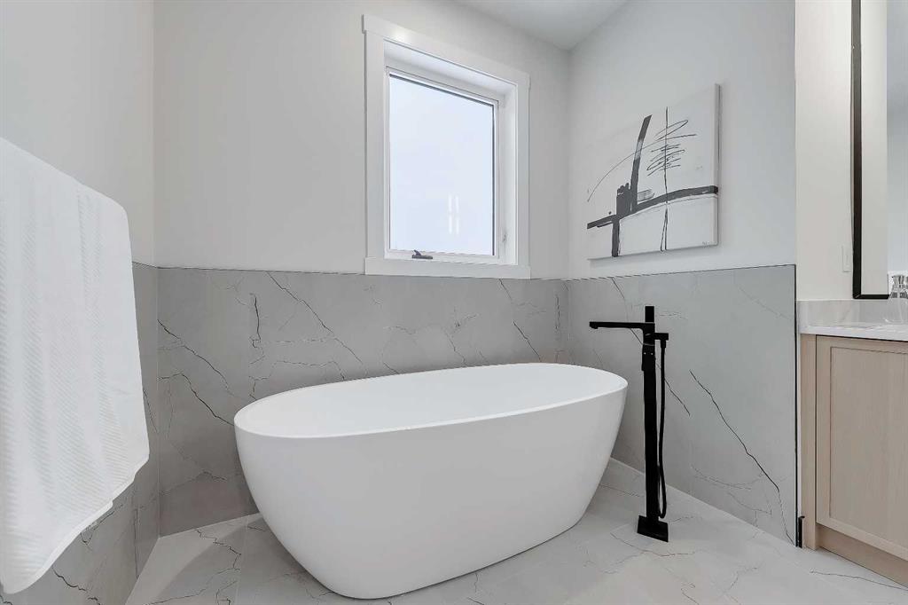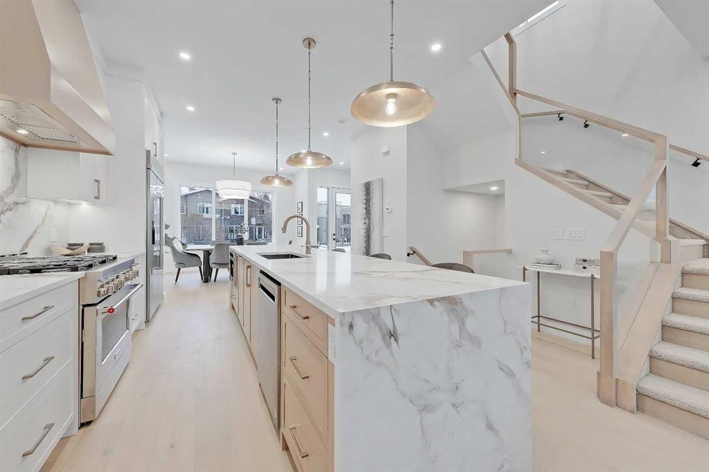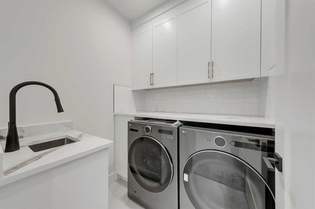 Set within sought-after KILLARNEY, this modern semi-detached home delivers light-filled interiors, a thoughtful layout, and elevated finishes that create a space that feels calm, intentional, and easy to live in. With parks, schools, and local favourites just minutes away, this is a home that supports both busy schedules and slower moments. The front entry immediately sets the tone. A welcoming foyer features CUSTOM BUILT-IN STORAGE with a bench and hooks, keeping bags, shoes, and coats neatly tucked away. Just off the entry is a stylish main floor POWDER ROOM, with quartz skirt, custom framed mirror perfectly placed for guests and day-to-day convenience without interrupting the flow of the living space. From here, the main floor opens into a clean, open layout. The kitchen sits at the centre of the home and anchors the entire level. A LARGE QUARTZ WATERFALL ISLAND creates a natural gathering point, complemented by integrated appliances, warm wood accents, and sleek cabinetry. The dining area flows easily alongside the kitchen, making it ideal for hosting or everyday meals without breaking connection. Toward the rear of the home, the living room feels comfortable and intentional. A LINEAR FIREPLACE with built-in shelving adds warmth and structure, while a BUILT-IN DESK tucked just off the living space creates an ideal work-from-home setup, homework station, or command centre that stays visually connected without taking over the room. At the back of the main floor, an ENCLOSED MUDROOM offers smart separation and functionality. Lockers and storage keep things organized, while direct access leads out to the backyard FULLY FINISHED GARAGE W/EPOXY FLOORS, making transitions effortless year-round. Upstairs, the primary suite stands out with a VAULTED CEILING and FEATURE WALL that add volume and visual interest, creating a true retreat feel. The ensuite balances style and function with a freestanding tub, glass shower, double vanity, and carefully selected finishes that feel calm and refined. Secondary bedrooms are generously sized and easy to furnish. The upper landing adds unexpected flexibility, with enough space for a DESK, READING NOOK, or SMALL PLAY AREA, allowing this level to adapt as needs change over time. Downstairs, a spacious rec area is complemented by a DEDICATED HOME GYM complete with sports flooring and a full wall mirror. A WET BAR with floating shelves and wine fridge enhances the entertaining potential, while a bedroom and full bathroom provide comfortable space for guests or extended stays. The home is set in the heart of KILLARNEY, known for its walkability and strong local amenities. Just minutes from 17TH AVE SW, you’re close to neighbourhood favourites like Blanco Cantina & Merchants, along with nearby schools including Killarney School and Holy Name School. Optimist Athletic Park & the Killarney Aquatic & Recreation Centre are close by, while quick access to Crowchild Trail and Bow Trail keeps downtown easily within reach. *Photos from show suite