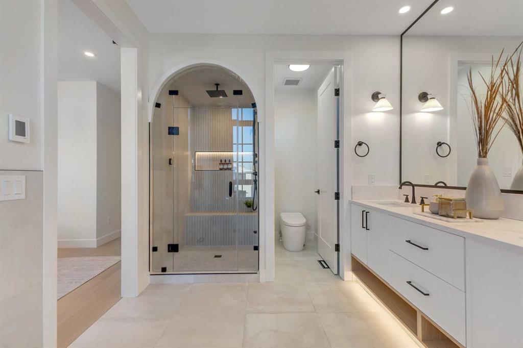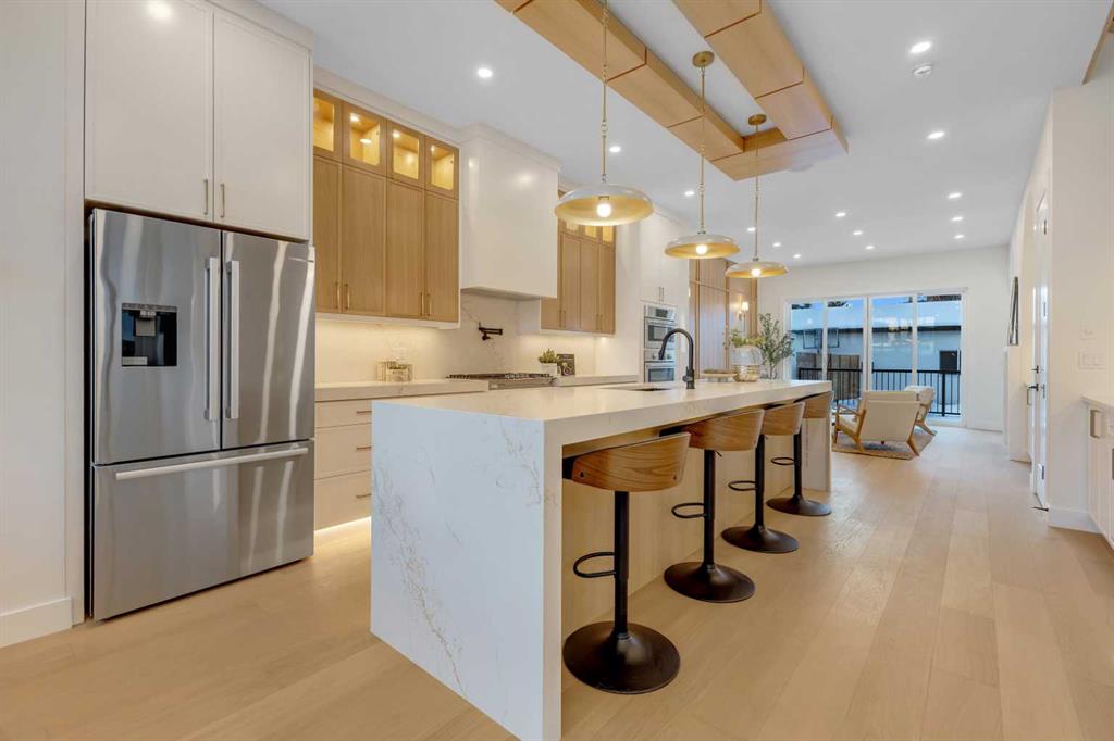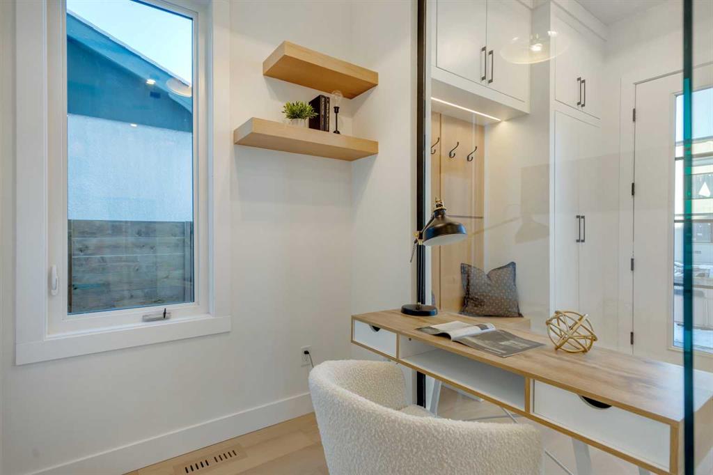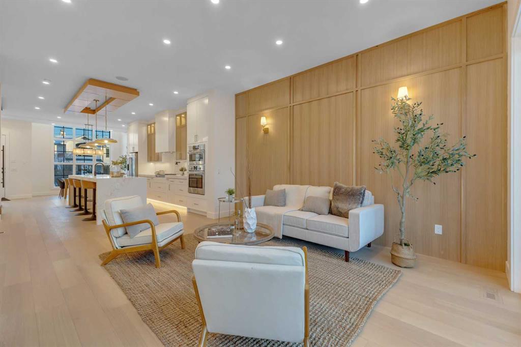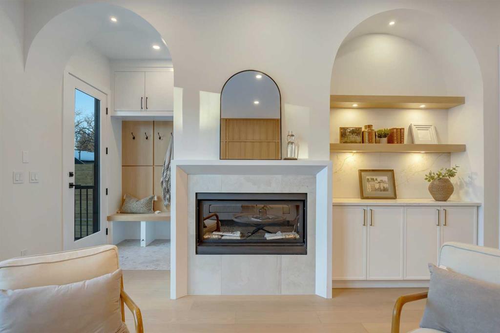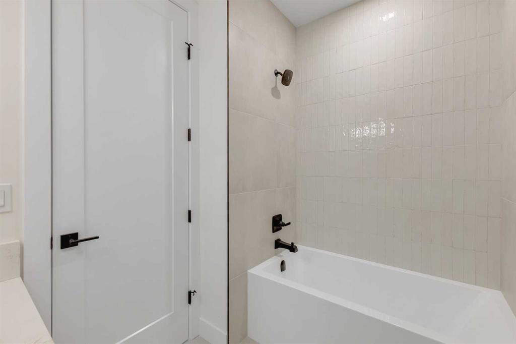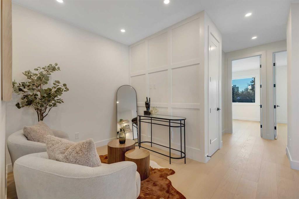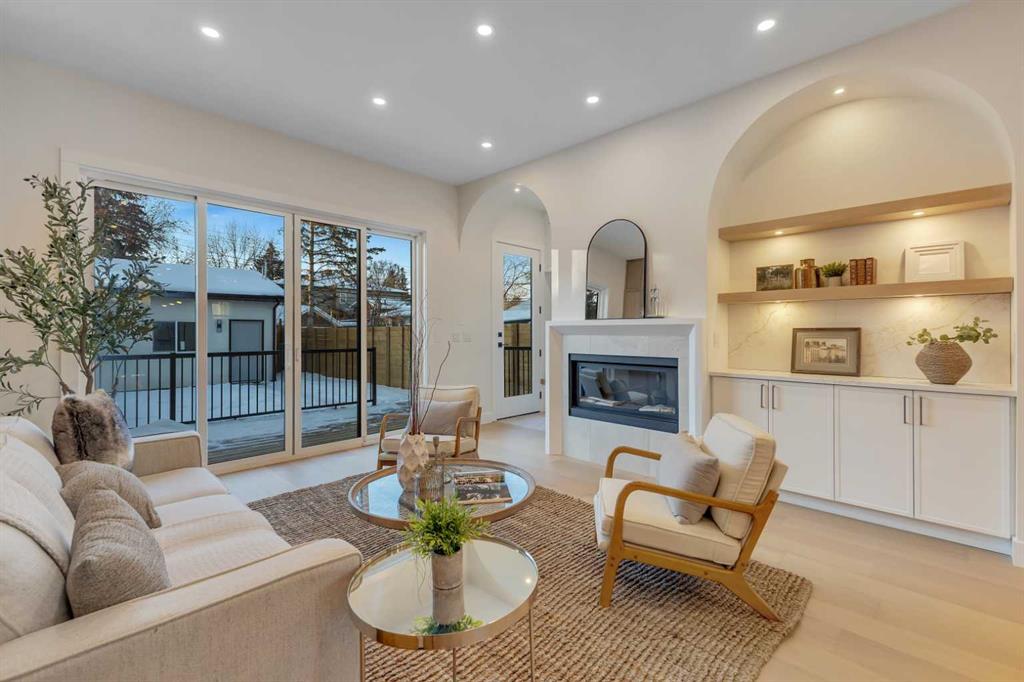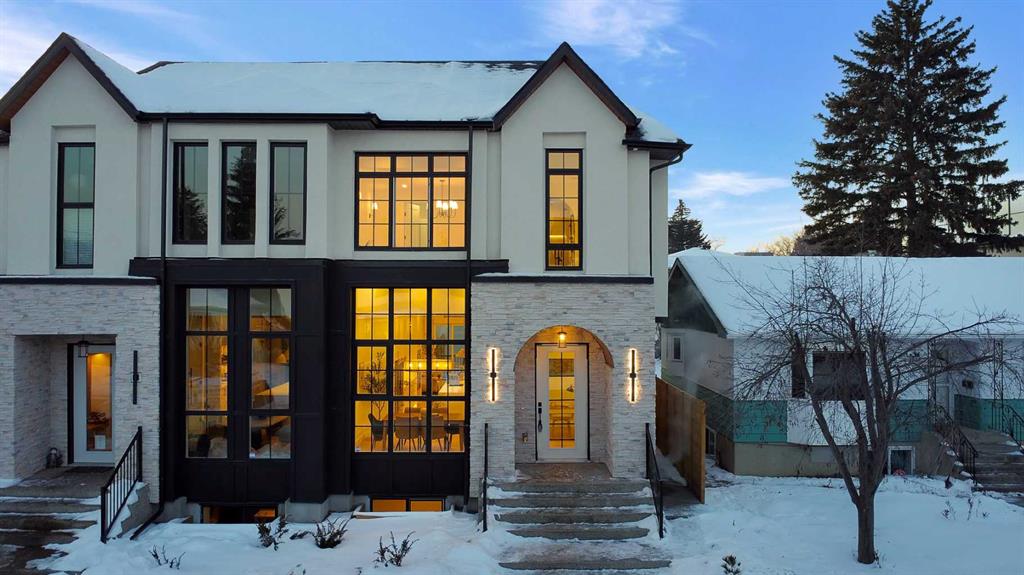 Situated on a rare 50x126 lot in the highly desirable community of Banff Trail, this brand-new semi-detached infill offers over 3,000 sq ft of carefully curated living space plus a fully self-contained LEGAL 2-BEDROOM SUITE with private entrance—perfect for multi-generational living or rental income. Designed with timeless elegance and modern comfort, this home showcases high-end finishing work including oak feature walls, a striking quartz backsplash in the kitchen, ceiling-height cabinets with custom lighting, and elegant arches throughout. The main floor boasts soaring 12-ft high front windows, a stunning glass-enclosed office with open-to-below design, and a chef-inspired kitchen with custom cabinetry, quartz counters, and a large central island with bar seating. The living room is both functional and refined, anchored by a sleek gas fireplace with a custom mantel and flanked by arched niches, with dual sliding glass doors opening onto the rear deck and backyard. Upstairs, the luxurious primary retreat features two spacious walk-in closets and a spa-inspired ensuite with heated tile floors, freestanding soaker tub, dual sinks, and a fully tiled glass shower. Two additional bedrooms share a full bathroom, while a convenient laundry room completes the level. The fully finished basement includes a legal suite with 2 bedrooms, full bath, modern kitchen, bright living area, and private laundry. Ideally located near West Confederation Park, U of C, McMahon Stadium, Foothills Athletic Park, and top-rated schools, with quick access to Crowchild Trail and 16th Ave, this exceptional property delivers luxury, functionality, and unbeatable inner-city convenience.