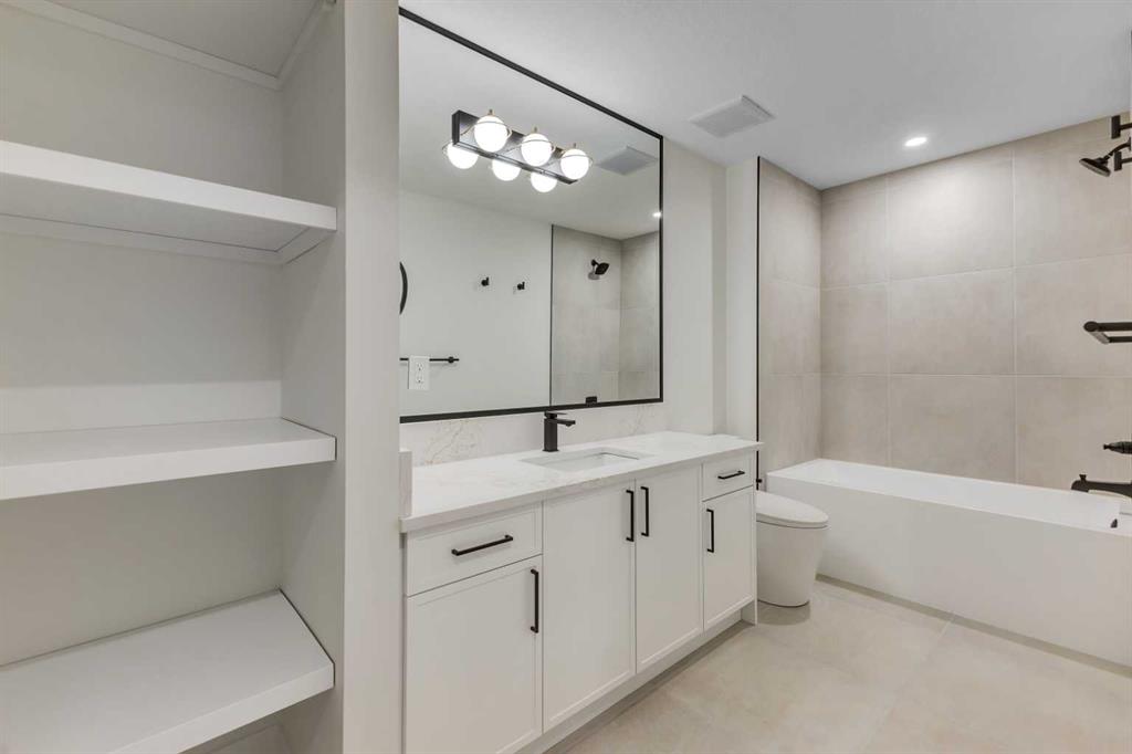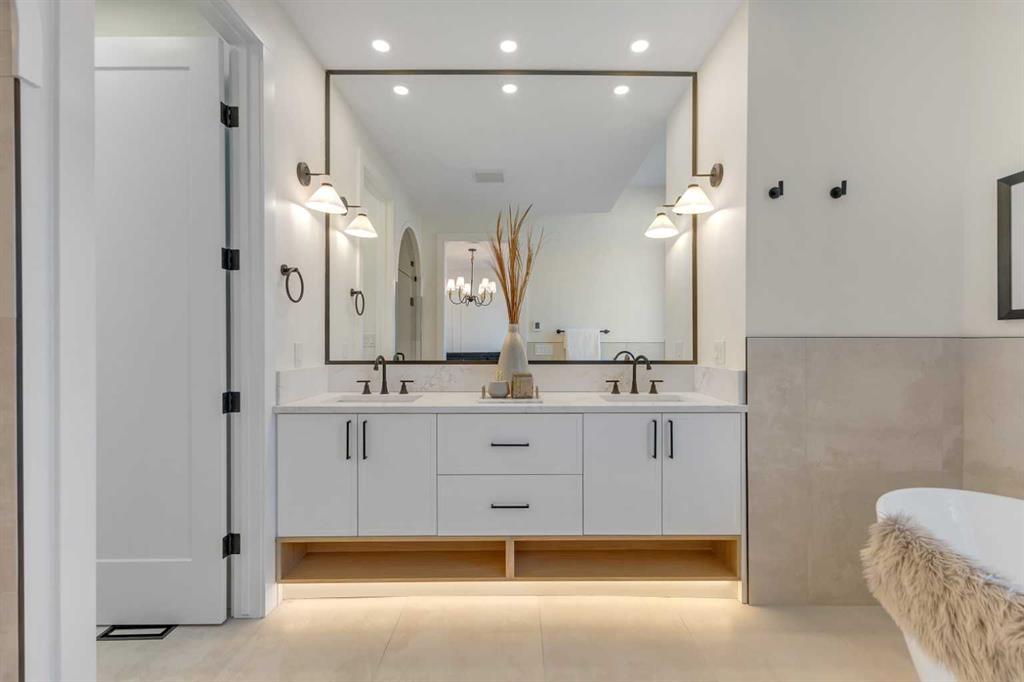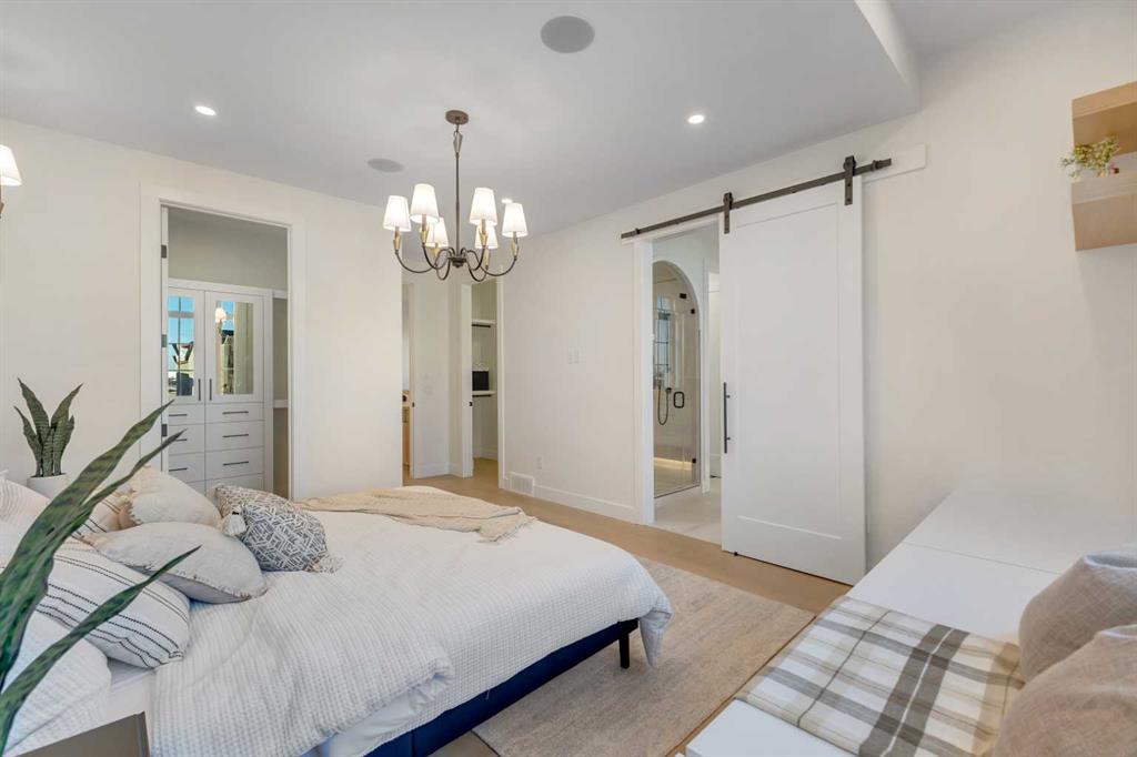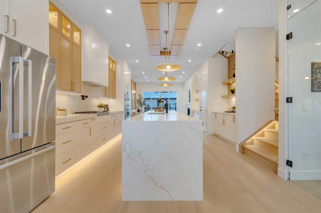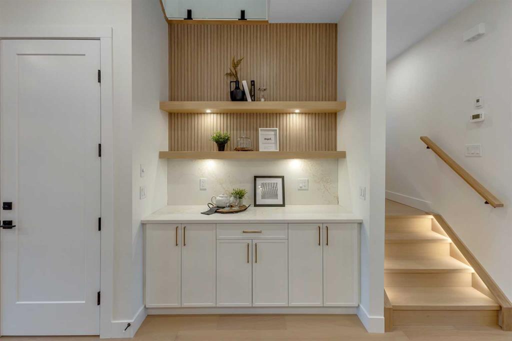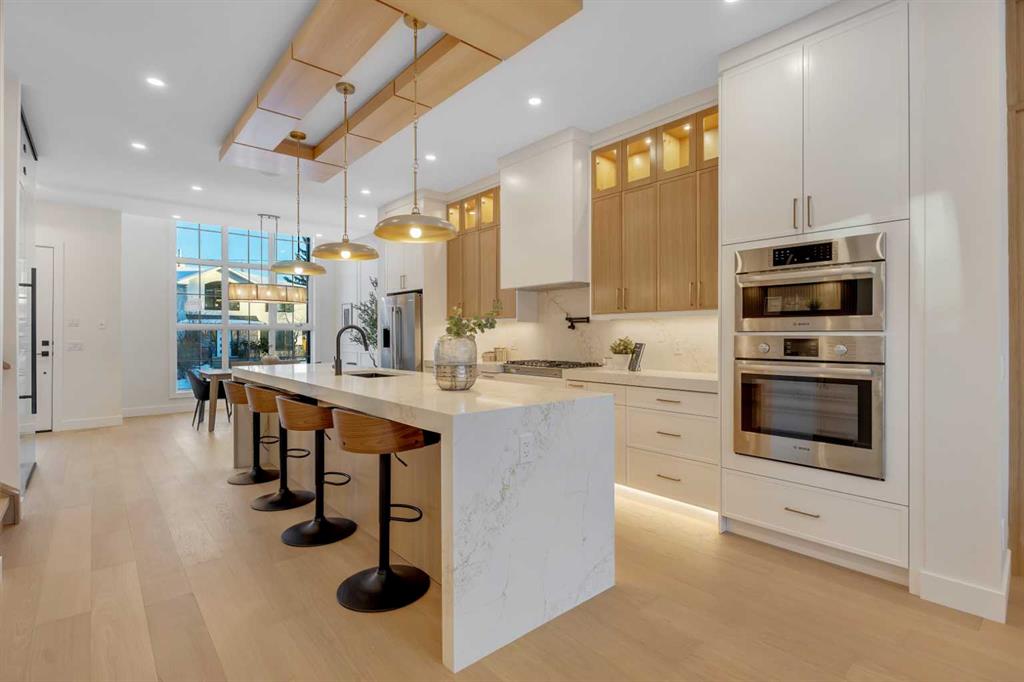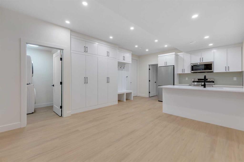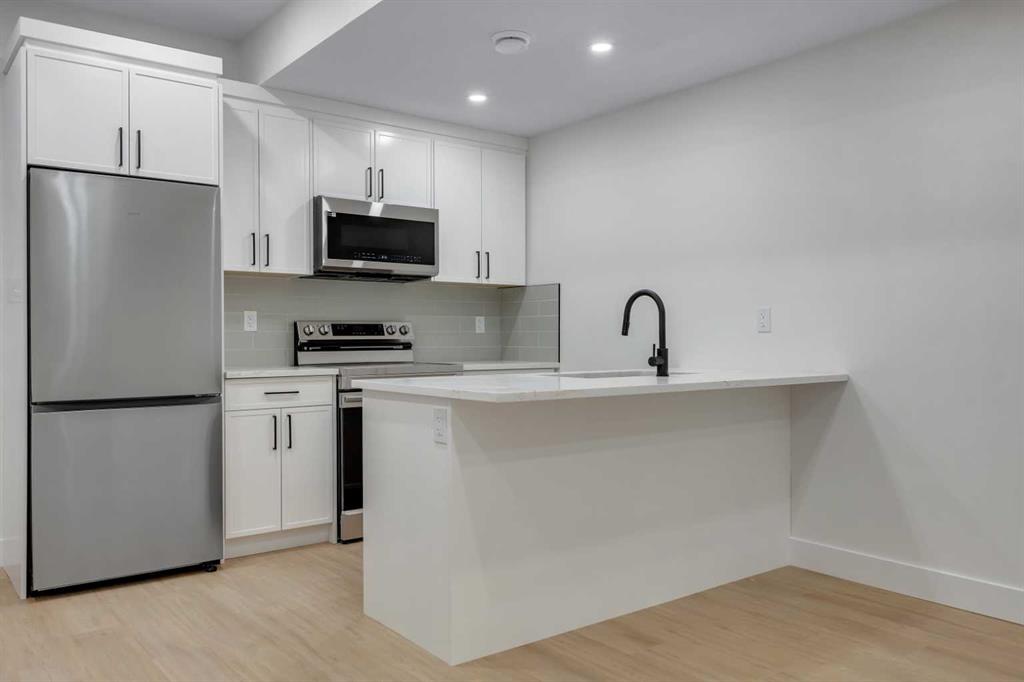 Situated on a rare 50x126 lot in the highly desirable community of Banff Trail, this brand-new semi-detached infill offers over 3,000 sq ft of carefully curated living space plus a fully self-contained LEGAL 2-BEDROOM SUITE with private entrance—perfect for multi-generational living or rental income. Designed with timeless elegance and modern comfort, this home showcases high-end finishing work including oak feature walls, a striking quartz backsplash in the kitchen, ceiling-height cabinets with custom lighting, and elegant arches throughout. The main floor boasts soaring 12-ft high front windows, a stunning glass-enclosed office with open-to-below design, and a chef-inspired kitchen with custom cabinetry, quartz counters, and a large central island with bar seating. The living room is both functional and refined, anchored by a sleek gas fireplace with a custom mantel and flanked by arched niches, with dual sliding glass doors opening onto the rear deck and backyard. Upstairs, the luxurious primary retreat features two spacious walk-in closets and a spa-inspired ensuite with heated tile floors, freestanding soaker tub, dual sinks, and a fully tiled glass shower. Two additional bedrooms share a full bathroom, while a convenient laundry room completes the level. The fully finished basement includes a legal suite with 2 bedrooms, full bath, modern kitchen, bright living area, and private laundry. Ideally located near West Confederation Park, U of C, McMahon Stadium, Foothills Athletic Park, and top-rated schools, with quick access to Crowchild Trail and 16th Ave, this exceptional property delivers luxury, functionality, and unbeatable inner-city convenience.