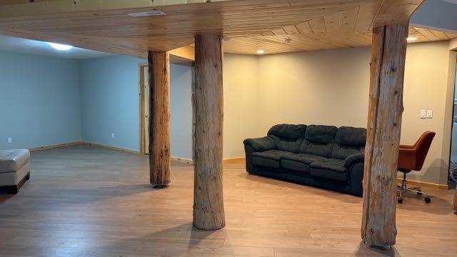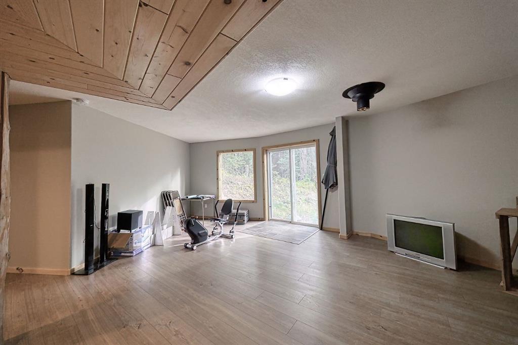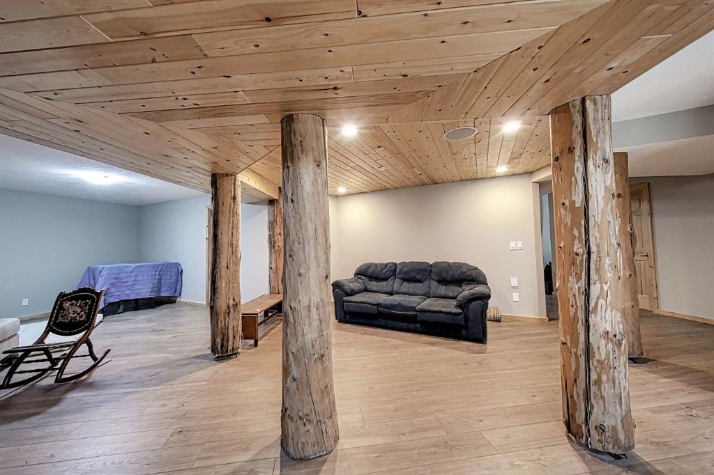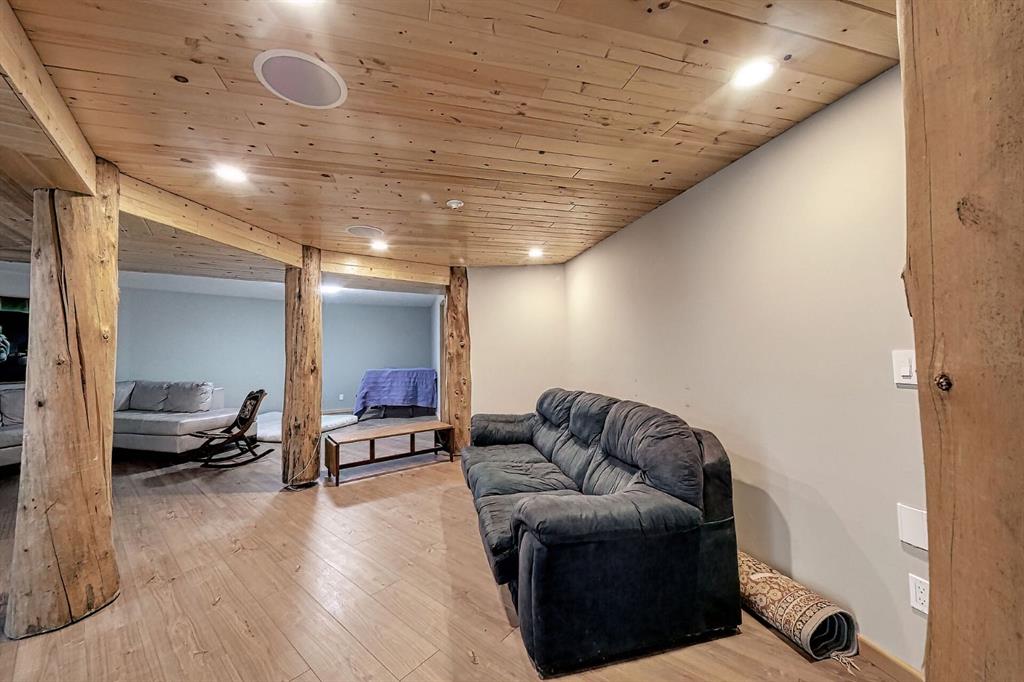 Nestled on 20 secluded treed acres near Dartique Hall, this unique circular log home offers privacy, character, and thoughtful design. The walkout bungalow features a true Heart of the Home central kitchen with an old-fashioned style gas stove, electric oven, dishwasher, fridge, and pantry overlooking bright open living and dining areas with large windows to flood the home with light. French doors in the dining area lead out to the new semi-wraparound premium composite deck perfect for entertaining or to charge your batteries and soak up the serenity. The main floor with soaring ceiling includes a tranquil primary bedroom suite with skylights, & 3pc ensuite, & walk-in closet, a second spacious bedroom, 3pc bath, laundry room w/ in-floor heat and mud room. Downstairs offers two additional bedrooms, a huge family and games area, and two storage rooms. A separate 1,056 SF Heated Workshop adds exceptional versatility for a home based business, a guest house, rental unit or space for your hobbies. Currently used as a workshop, it is comprised of a large main floor area, laundry room, 4-piece bath, mudroom, with a loft and walk-in closet upstairs plus a single unheated garage space. Additional outbuildings include shed, greenhouse and an additional single car garage. This One of a Kind home full of potential for your own personal design ideas is all surrounded by peaceful forest for a truly private retreat yet close to the Town of Cochrane and Calgary.
