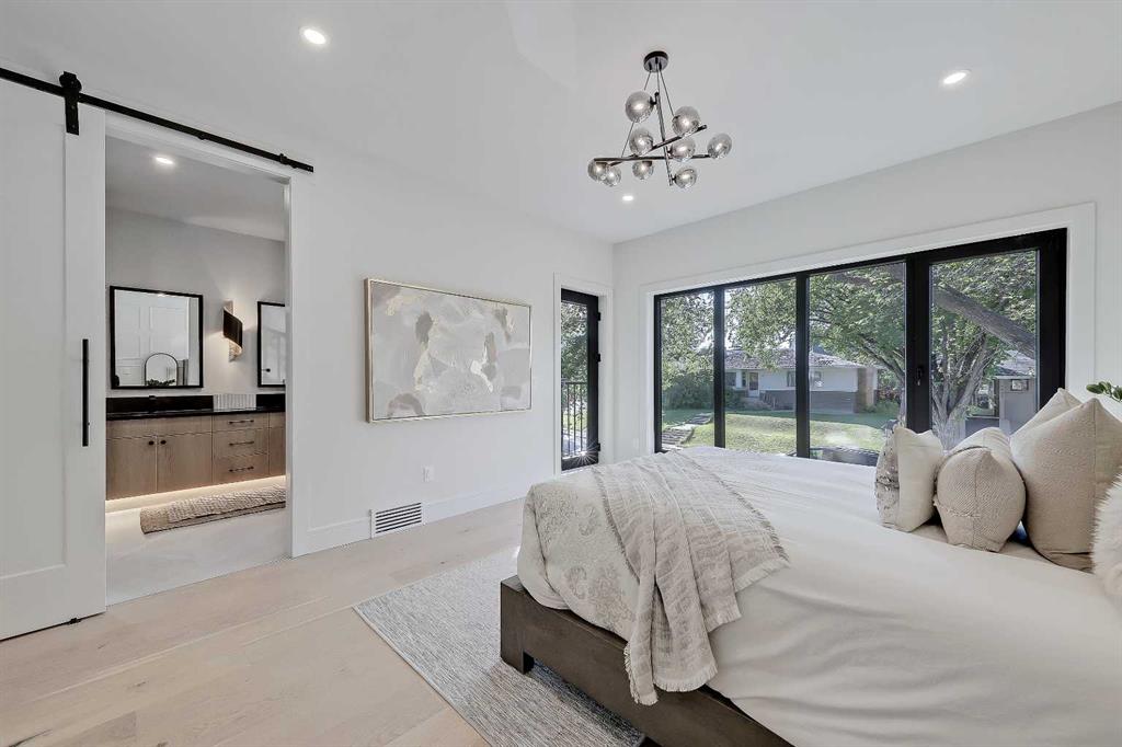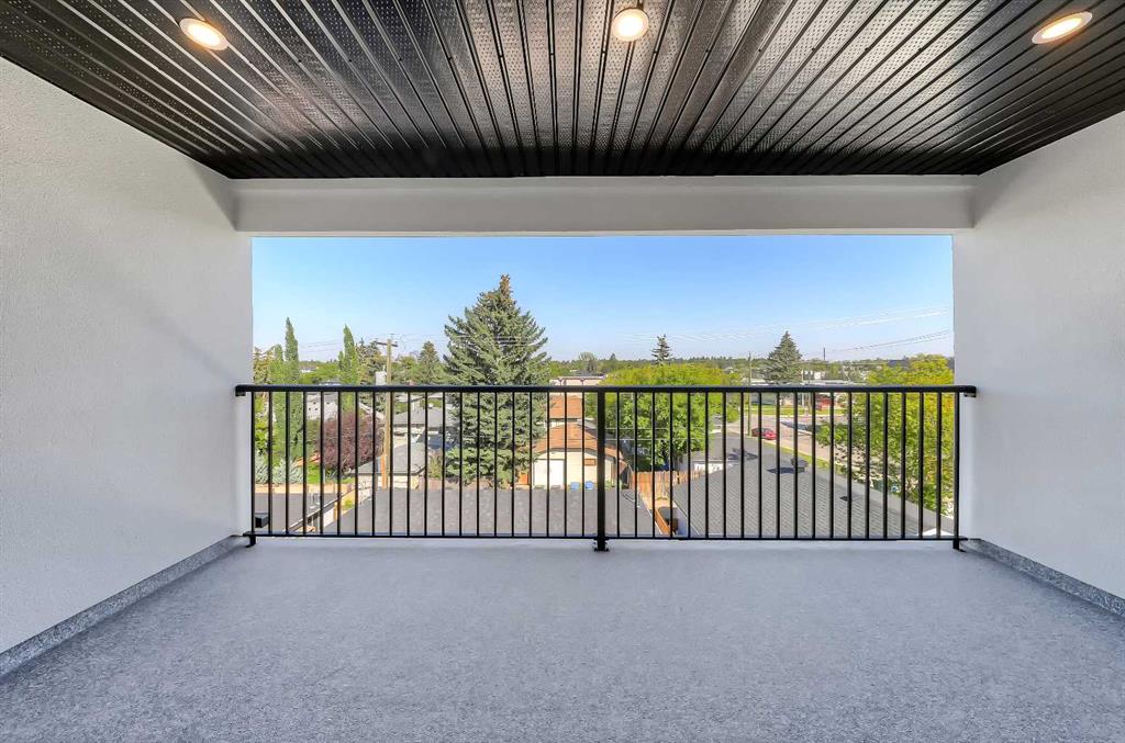 Up the bright stairwell w/ glass wall awaits the primary suite – as sleek & modern as the rest of the home, w/ oversized windows, a private balcony w/ KULU door, & an extra-large walk-in closet! The chic ensuite features a dual vanity w/ a quartz countertop & a bank of lower drawers, a freestanding soaker tub, & a stand-up shower w/ full glass walls, rain showerhead, & bench. Two secondary bedrooms share the main 4-pc bath & the laundry room features a sink, upper cabinetry, hanging rod, tile backsplash, & a folding counter.