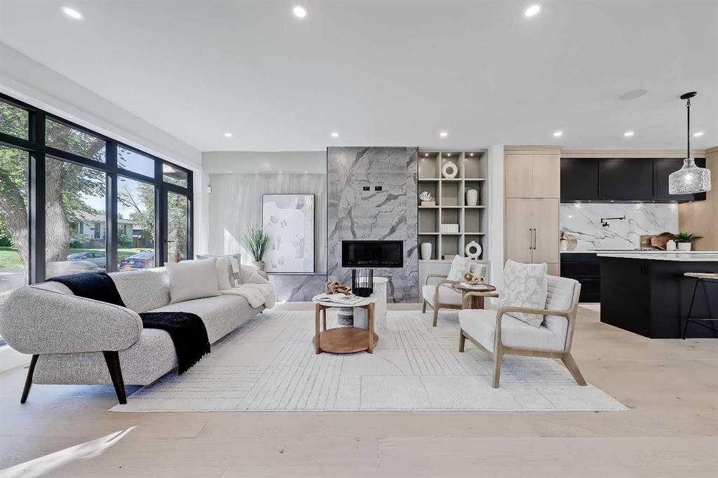 Tile detailing, modern finishes, designer lighting package, upgraded German-made KULU windows & doors…it’s everything you’re looking for in a luxury 3-STOREY SEMI-DETACHED INFILL! Now MOVE-IN READY, this designer home is located just off 26th Ave in the heart of Killarney – the ideal location for your new family home! The main floor opens into a welcoming foyer w/ built-in closet & bench, offering views into the spacious living room w/ a gas fireplace w/ full-height tile, as well as a stunning wood-panelled feature wall. Beautiful oak hardwood flooring leads you into the open-concept kitchen – fully equipped w/ an oversized island w/ quartz countertop, timeless shaker-style cabinetry w/ numerous lower drawers, & a contemporary flat-panel built-in cabinetry pantry. The designer kitchen is nicely finished w/ a full stainless steel appliance package, complete w/ a panelled French door refrigerator, a Dacor double wall oven, a gas cooktop w/ pot filler, & a built-in dishwasher. The custom built-ins continue into the dedicated dining room, w/ open shelving & lower cabinets w/ quartz counter for everyday convenience. Step out onto the back deck through the rear mudroom, complete w/ a built-in bench, coat cabinet, & tile flooring. Before you head upstairs, the stylish powder room is tucked away w/ a beautiful skirted vanity & vessel sink. Up the bright stairwell w/ glass wall awaits the primary suite – as sleek & modern as the rest of the home, w/ oversized windows, a private balcony w/ KULU door, & an extra-large walk-in closet! The chic ensuite features a dual vanity w/ a quartz countertop & a bank of lower drawers, a freestanding soaker tub, & a stand-up shower w/ full glass walls, rain showerhead, & bench. Two secondary bedrooms share the main 4-pc bath & the laundry room features a sink, upper cabinetry, hanging rod, tile backsplash, & a folding counter. A luxury home isn’t complete without a THIRD FLOOR LOFT, & this space has not been overlooked. More oversized windows bring in lots of natural light, shining across a spacious rec area w/ gas fireplace, full wet bar w/ extended quartz countertop, bar sink, & statement open shelving. A lovely sitting area w/ built-in desk overlooks the COVERED BALCONY & of course, there’s a full bath w/ fully tiled shower, too. The living space continues into the basement, w/ a full wet bar w/ quartz island, dual basin sink, & a designer tile floor, w/ a large family room, built-in media centre, a glass walled home gym w/ sports flooring, a 4th bedroom, & a full 4-pc bath. Killarney offers the perfect balance of community & convenience. From here, you’re within walking distance to Glendale School, Killarney School, & Bishop Carroll High. Westbrook Mall & the CTrain are only 5 minutes away, making downtown access effortless. The Killarney Aquatic & Recreation Centre, Optimist Athletic Park, & Shaganappi Golf Course are all nearby. Call to view today!