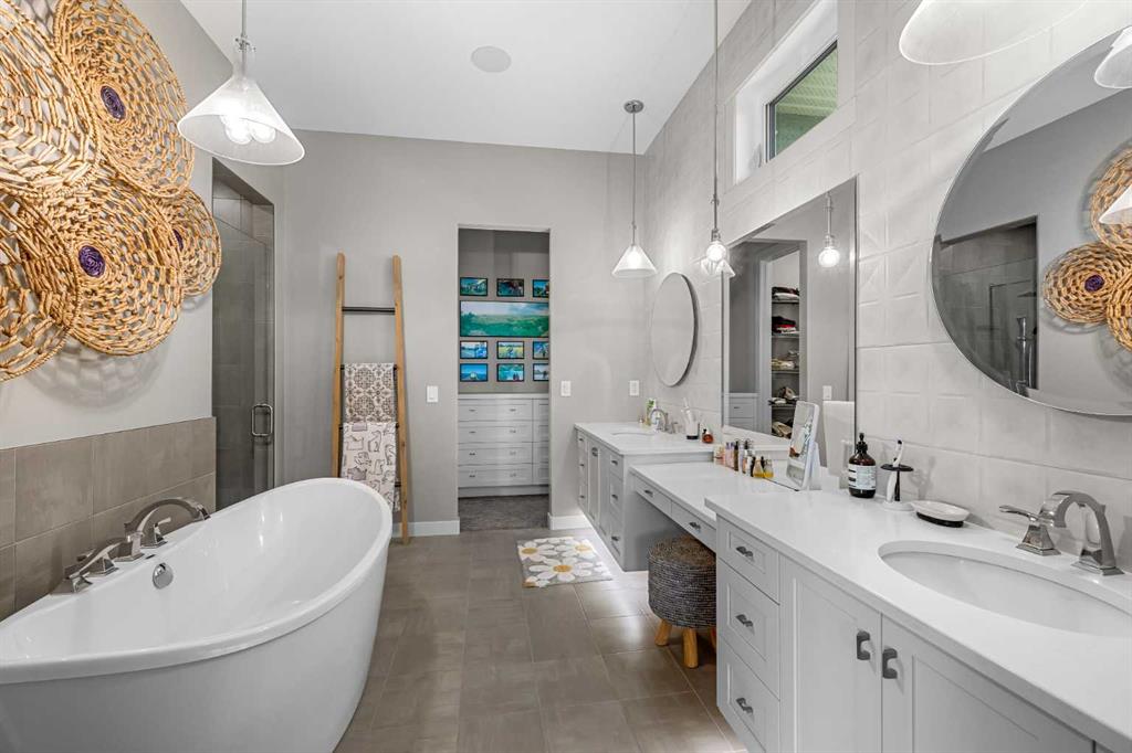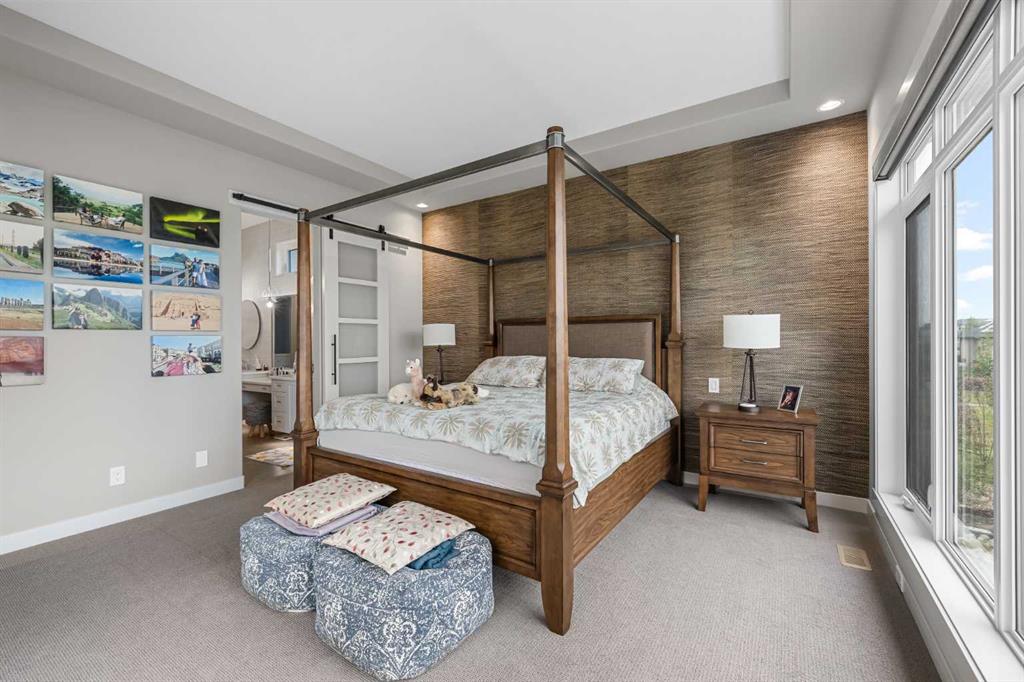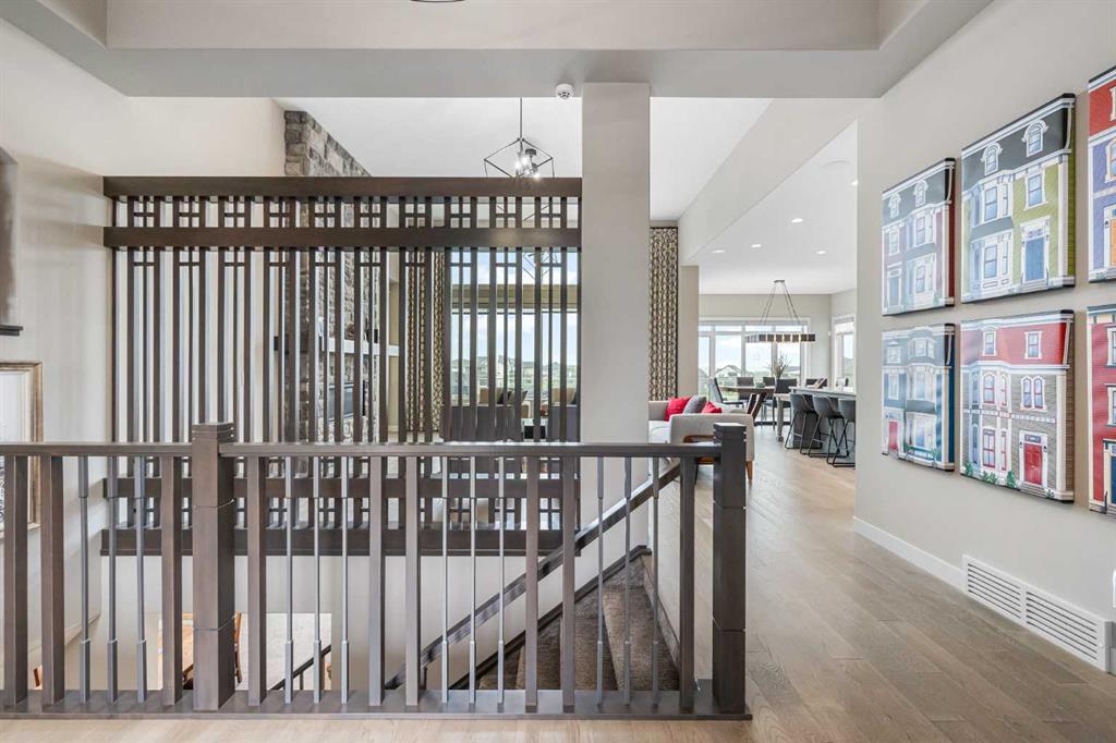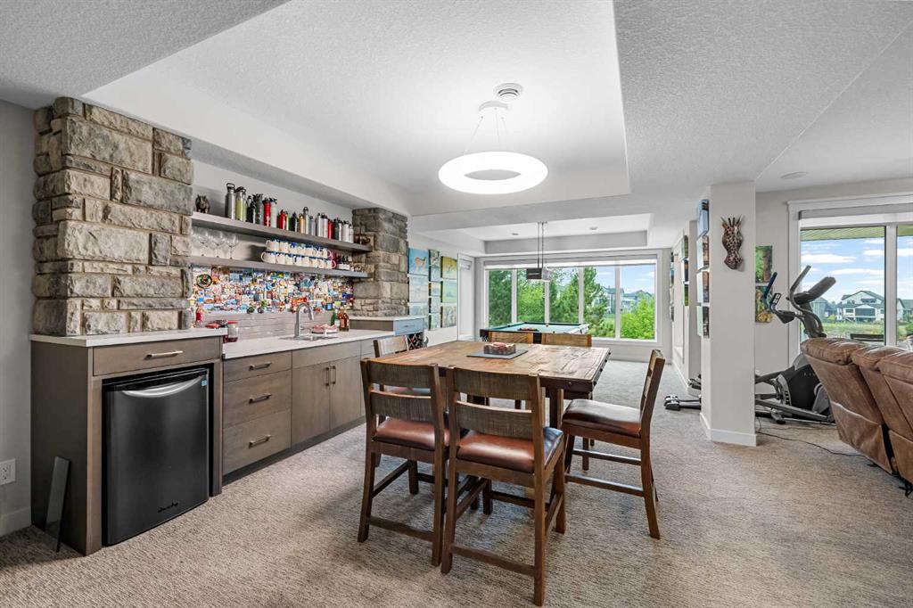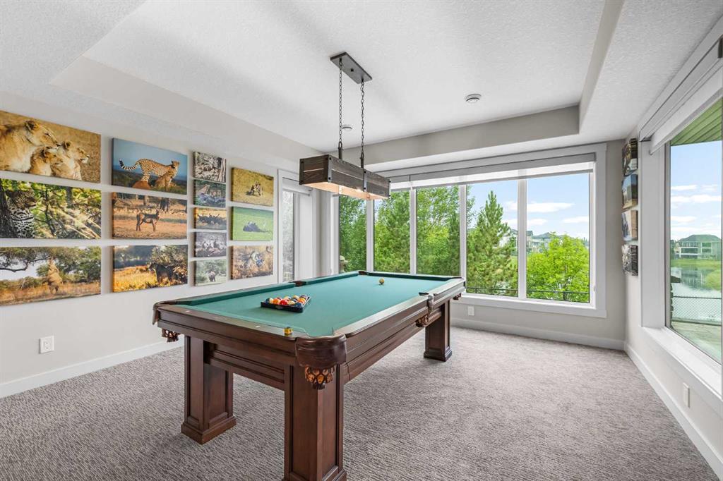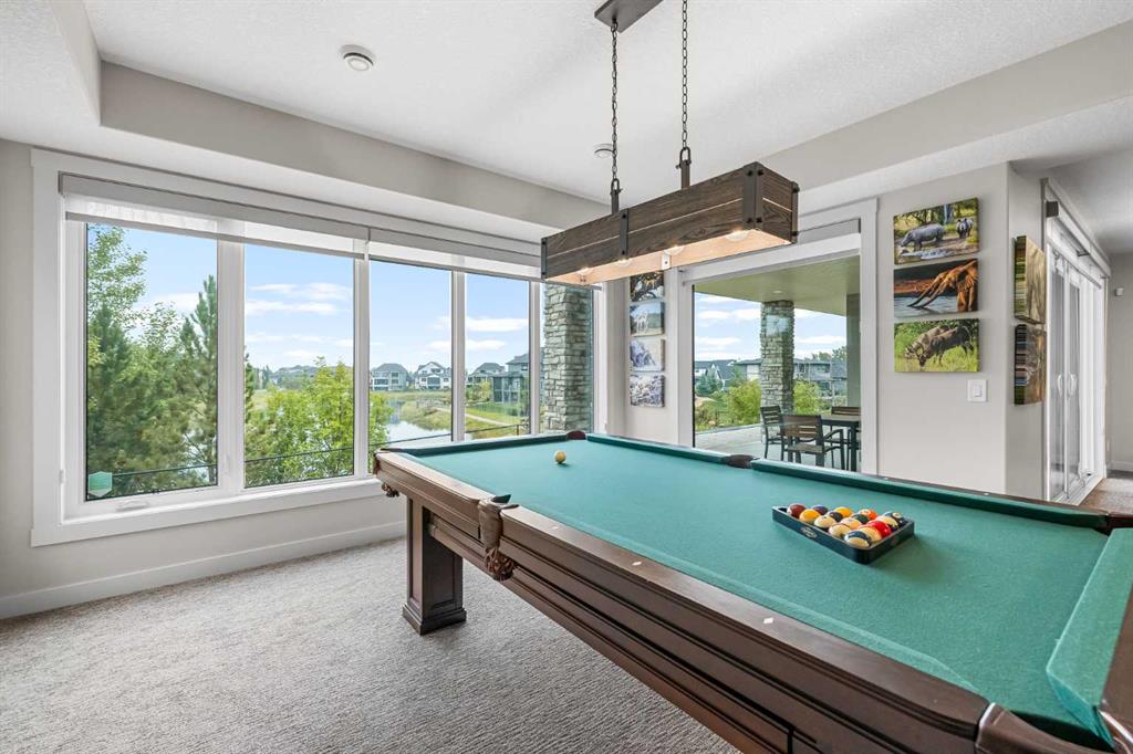 Set within a serene landscape of water and winding pathways, this luxury walkout bungalow offers architectural sophistication and natural tranquility. Designed on the sought-after Carrara 2 floor plan, the home captures a sense of openness and grandeur from the moment you arrive, with its expansive triple car garage and striking exterior. Inside, soaring 11-foot and 14-foot ceilings create an immediate feeling of volume and light, elevating every space with an airy, refined atmosphere. The main living area showcases comfort and grandeur with oversized windows framing uninterrupted views of the pond and pathway system beyond. Natural light floods the interior throughout the day, reflecting off carefully selected finishes and enhancing the home’s warm, modern palette. The heart of the home is an expansive and beautifully appointed kitchen. A massive island, custom cabinetry, upgraded appliances, storage galore with a functional yet elegant butlers pantry, a separate walk in pantry and short and convenient close entrance through the oversized mudroom to the garage entrance perfect for bringing in grocery's. The open concept connects the dining and great room, forming an ideal setting for both everyday living and upscale entertaining. Clean architectural lines, generous proportions, and an effortless flow between spaces define the layout, with elevated ceiling heights adding drama and distinction without sacrificing intimacy. The dining area flows onto the expansive upper terrace, where a glass-railing system ensures your view of the pond remains uninterrupted while you enjoy an evening cocktail. Or seat your guests in this well appointed living room with a floor to ceiling stone fireplace both great options. Work from home in the private office away from the hustle and bustle of family activities. The primary suite is a sanctuary of its own, generous in size and enhanced by the home’s signature high ceilings, offering a quiet escape with serene views and a spa-inspired ensuite and a massive closet that won’t disappoint. The walkout lower level extends the living space in a way that feels fully integrated with the outdoors. Large glass doors open directly onto a private patio, where the gentle presence of the pond and landscaped pathways creates a peaceful retreat just steps from your living room. This level is perfectly suited for hosting guests, relaxing with family, or creating a personalized entertainment space, all while maintaining the same high-end feel as the main floor. Private bedrooms, a wet bar, a large family room, games area, yoga/ exercise room and finished storage room complete the level. Throughout the home, the combination of architectural height, thoughtful layout, and premium craftsmanship results in a residence that feels both expansive and welcoming. The triple car garage adds ample space for vehicles, storage, and lifestyle needs. This home embodies a rare balance of luxury, comfort, and natural beauty.
