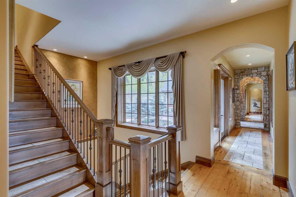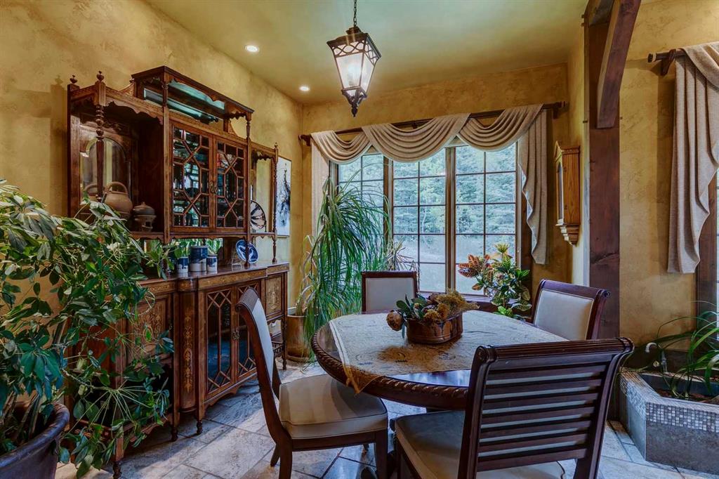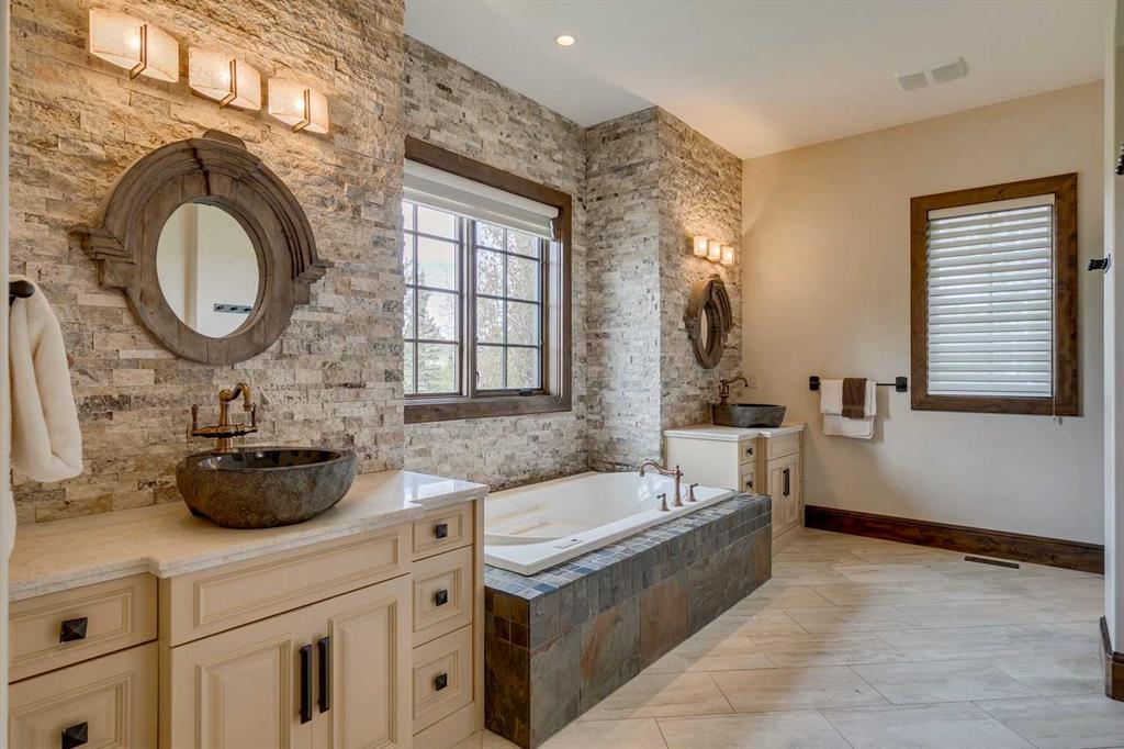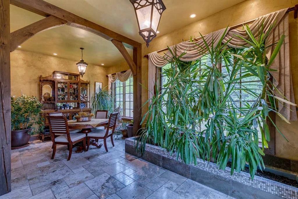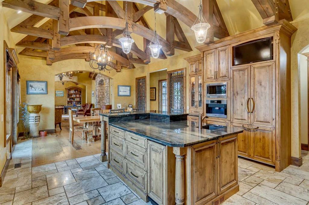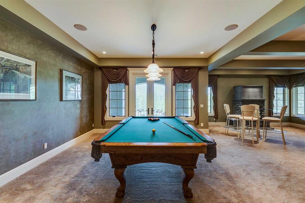 25 minutes from southwest Calgary city limits, this timber and stone masterpiece is set against the backdrop of the majestic Rockies, embraced by rolling ranch lands that offer endless natural beauty. Nestled between Brown-Lowery Provincial Park and Kananaskis Forest Reserve the home promises a lifestyle rooted in nature and refined living . The nearby charming towns of Millarville, Black Diamond and Bragg Creek host festivals and markets year round along with access to esteemed schools, shopping, entertainment and medical facilities. This 2011 SAM Award–Best New Custom Home-winning residence captivates with its stone fireplaces, exposed timber beams, tall French doors under vaulted ceilings. By design, mornings begin in a bright courtyard featuring a serene fountain, while evenings are reserved for unwinding on a west-facing deck that showcases sunsets and mountain vistas “as far as the eye can see.” With amenities like a built-in gas BBQ, an outdoor stone fireplace, and overhead heaters beneath the shelter of a timber truss roof, every season is met with inviting warmth and style. The home’s seamless flow unites a one and half story main floor, a walkout lower level, and an upper loft that can be converted to feature a fourth bedroom, ensuite bath and private den—totaling 6,561 square feet of thoughtfully planned living space. The chef’s kitchen is a dream come true, featuring custom-built alder cabinets, an Aga vented gas range, an integrated fridge and freezer, and a plumbed coffee maker. This culinary space adjoins rooms that facilitate both formal dining and casual family gatherings, ensuring that every meal becomes a shared experience. True to its natural spirit, the home is built almost entirely of organic materials. A copper-seamed Coppola roof crowns the exterior alongside natural stone and brick facades, while reclaimed hardwoods and honed stone floors lend an artisanal touch throughout. Metal-clad fir windows and oversized French doors open onto wood-planked decks that embrace the walkout patio and extend to the hot tub area—perfect for relaxing or entertaining in style. A Scandinavian-inspired spa, a three-piece bath, and a dedicated gym further round out a suite of wellness-oriented features. Inside, vaulted ceilings accented by fir timber beam trusses create a grand yet inviting atmosphere. Stone and granite countertops provide a luxurious touch in every room. Additional highlights include a home theater, wine cellar, billiards room, and a striking Tulikivi fireplace that anchors memorable family moments. An ensuite bedroom on the lower level ensures comfort and privacy for guests or extended family. Modern living integrated with timeless design. State-of-the-art equipment all working together to keep the air, water, and environment healthy, clean, and comfortable year-round. This move-in ready estate awaits your private viewing.