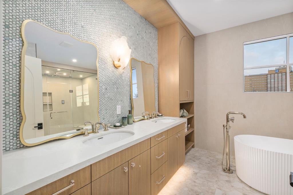 Welcome to this exceptional custom residence on prestigious Toronto Crescent in highly sought-after St. Andrews Heights. Perfectly positioned on an expansive 9,000 sq. ft. lot, this meticulously designed home offers over 6,000 sq. ft. of developed luxury living, crafted by Maxime Chin Designs with uncompromising detail and style. This remarkable property features an 80’ wide backyard, walkout basement, 63’ full-width balcony, attached triple garage, 5 bedrooms, 5.5 bathrooms, 4 gas fireplaces, bonus room with balcony, butler’s pantry, dedicated office, home gym, Sub-Zero/Wolf appliance package, designer lighting, and so much more. Enter through the grand foyer and be welcomed by soaring 10’ ceilings and expansive sight-lines. To the side, the inviting living room showcases beautiful built-ins and an oversized gas fireplace. LUX accordion doors open seamlessly to the massive covered balcony—complete with an outdoor fireplace—creating an exceptional indoor/outdoor living experience. The stunning kitchen features custom oak cabinetry, exquisite quartz surfaces, a 48” Wolf gas range, Sub-Zero refrigerator, and a spacious butler’s pantry with sink, dishwasher, and convenient shelving. The formal dining room is wrapped in bespoke wallpaper that extends to the limewash ceiling and includes a stunning bar area with direct access to the balcony. A private office, stylish powder room, and a well-appointed mudroom with built-in lockers complete the main floor. The luxurious primary suite features a beautiful arched window offering a glimpse of the downtown Calgary skyline. The spa-inspired 5-piece ensuite includes a freestanding reeded tub, large walk-in steam shower, marble backsplash & dual vanity. Also a spacious walk-in closet outfitted with custom built cabinetry rounds out the suite. The builder has left the primary room as a blank canvas and will work with the new homeowners to create a custom oasis. Three additional bedrooms (two with ensuites), a full main bath, and a laundry room with two sets of washers and dryers offer convenience and comfort. A spectacular bonus room crowns the upper level with 12’ ceilings, a gas fireplace, private balcony, built-in bar, and a dedicated homework station. The basement level is bright and open thanks to the large windows due to the walkout design, the lower level features a spacious rec room with gas fireplace, full bar, gym, 5th bedroom, and a serene 4-piece bath. Outside you will find the extraordinary 80’ wide backyard providing exceptional usable space, complete with a ground-level, covered patio and endless opportunities for outdoor enjoyment. This home must be seen in person to truly appreciate the craftsmanship, thoughtful design, and rare combination of luxury and location.