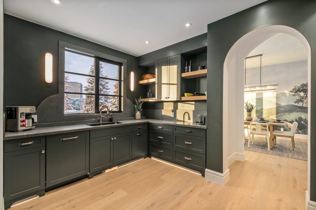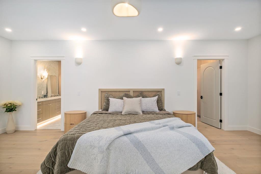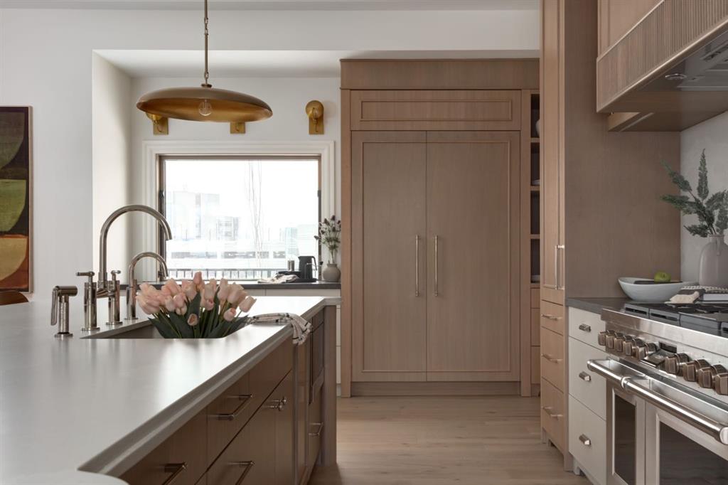 ***OPEN HOUSE SAT & SUN 12:00-4:00*** Welcome to this exceptional custom residence on prestigious Toronto Crescent in highly sought-after St. Andrews Heights. Perfectly positioned on an expansive 9,000 sq. ft. lot, this meticulously designed home offers over 6,000 sq. ft. of developed luxury living, crafted by Maxime Chin Designs with uncompromising detail and style. This remarkable property features an 80’ wide backyard, walkout basement, 63’ full-width balcony, attached triple garage, 5 bedrooms, 5.5 bathrooms, 4 gas fireplaces, bonus room with balcony, butler’s pantry, dedicated office, home gym, Sub-Zero/Wolf appliance package, designer lighting, and so much more. Enter through the grand foyer and be welcomed by soaring 10’ ceilings and expansive sight-lines. To the side, the inviting living room showcases beautiful built-ins and an oversized gas fireplace. LUX accordion doors open seamlessly to the massive covered balcony—complete with an outdoor fireplace—creating an exceptional indoor/outdoor living experience. The stunning kitchen features custom oak cabinetry, exquisite quartz surfaces, a 48” Wolf gas range, Sub-Zero refrigerator, and a spacious butler’s pantry with sink, dishwasher, and convenient shelving. The formal dining room is wrapped in bespoke wallpaper that extends to the limewash ceiling and includes a stunning bar area with direct access to the balcony. A private office, stylish powder room, and a well-appointed mudroom with built-in lockers complete the main floor. The luxurious primary suite features a beautiful arched window offering a glimpse of the downtown Calgary skyline. The spa-inspired 5-piece ensuite includes a freestanding reeded tub, large walk-in steam shower, marble backsplash & dual vanity. Also a spacious walk-in closet outfitted with custom built cabinetry rounds out the suite. The builder has left the primary room as a blank canvas and will work with the new homeowners to create a custom oasis. Three additional bedrooms (two with ensuites), a full main bath, and a laundry room with two sets of washers and dryers offer convenience and comfort. A spectacular bonus room crowns the upper level with 12’ ceilings, a gas fireplace, private balcony, built-in bar, and a dedicated homework station. The basement level is bright and open thanks to the large windows due to the walkout design, the lower level features a spacious rec room with gas fireplace, full bar, gym, 5th bedroom, and a serene 4-piece bath. Outside you will find the extraordinary 80’ wide backyard providing exceptional usable space, complete with a ground-level, covered patio and endless opportunities for outdoor enjoyment. This home must be seen in person to truly appreciate the craftsmanship, thoughtful design, and rare combination of luxury and location.