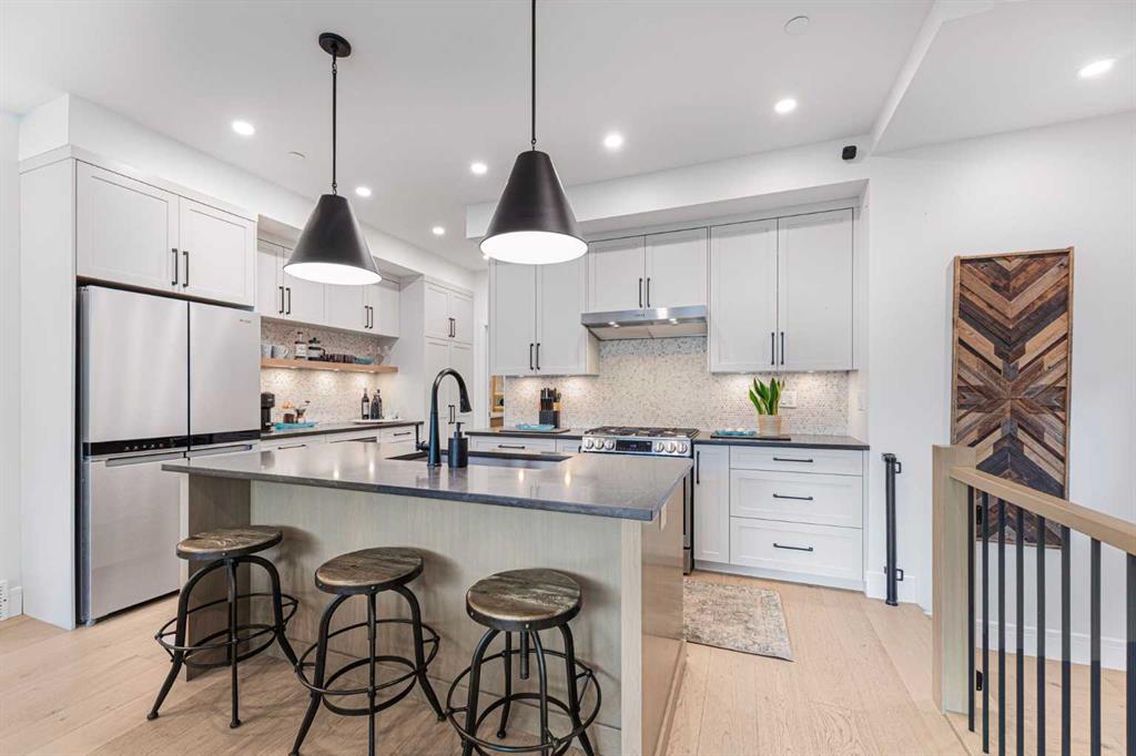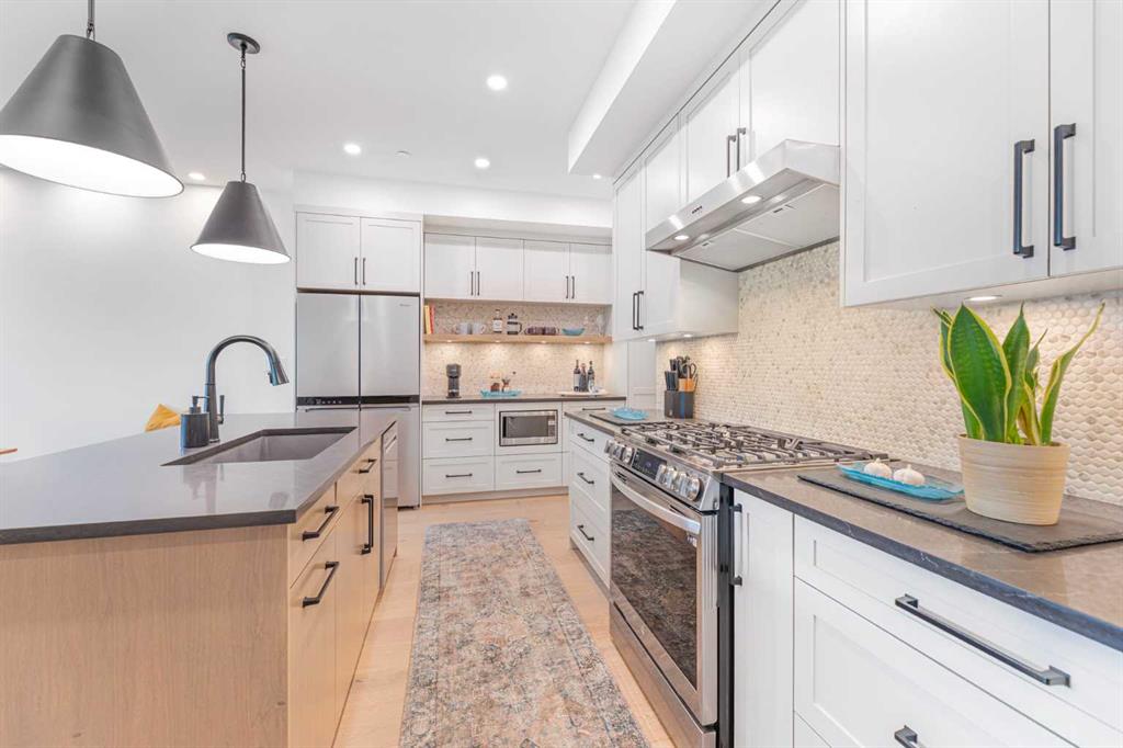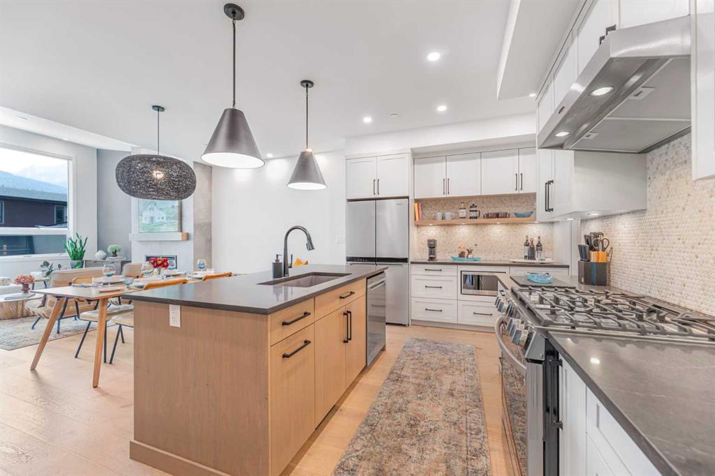Built by KOVA Homes in 2023 and still covered by Progressive Home Warranty, this rare Teepee Town property is set on iconic 1st Avenue in one of Canmore’s oldest and most historically rich neighbourhoods. In recent years, Teepee Town has seen thoughtful design improvements, infrastructure upgrades, and enhanced transportation links. A killer location all around with paved path, playground, and community garden sit just down the street, while Bow Valley Trail’s shops, cafés, and services are steps away. Stroll, or ride a little further to the high school, bus routes, Railway Avenue amenities, or Main Street—all accessible within minutes. Inside, the design is both stylish and functional, with 2,043 sq. ft. of living space across three levels. The main home offers 3 bedrooms and 3 bathrooms, while the entry level includes a fully legal 1-bedroom suite with private entrance. Lifestyle touches abound: wide-plank flooring, high ceilings, smart storage, and a killer location just minutes to Main Street, Bow River pathways, trailheads, and highway access for those early morning ski days. This home blends modern mountain living with timeless Canmore charm. The main floor is bright and welcoming, anchored by an oversized living room with dramatic tiled fireplace, vaulted ceilings, huge windows with electric blinds, and mountain views. The large deck invites you to enjoy morning coffee under the alpenglow, for evening barbecues, or a soak under the stars (hot tub negotiable). The kitchen is a chef’s dream with a gas range, stone countertops, central island, buffet sideboard, and generous storage. Tucked behind the kitchen find a third bedroom, or flexible office space, and full bathroom to complete this level. Upstairs, the primary retreat features vaulted ceilings, oversized windows with spectacular views, more electric blinds, his-and-hers closets, and a spa-inspired ensuite with tiled shower and dual sinks. A second bedroom with ensuite and a dedicated laundry room complete the upper level. The entry level is a true game-changer: separated from the main home, the fully equipped legal suite offers its own kitchen, living space, laundry, and private entrance. Whether you rent it out, host extended family, or keep it as a private retreat, the versatility is unmatched. Heated single car garage with additional bike storage, utility room and mudroom with tons of storage off the garage entry completed the home. Outside features include a single car driveway, plus on street parking, landscaped yard and fence. Condo Fees $400/mo.