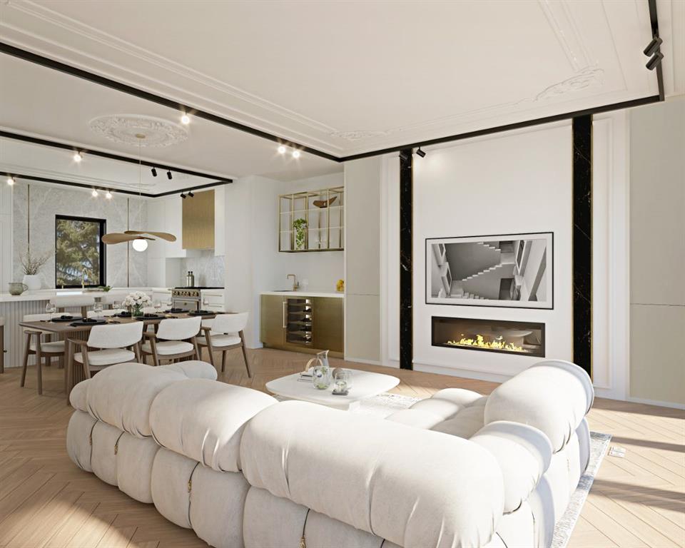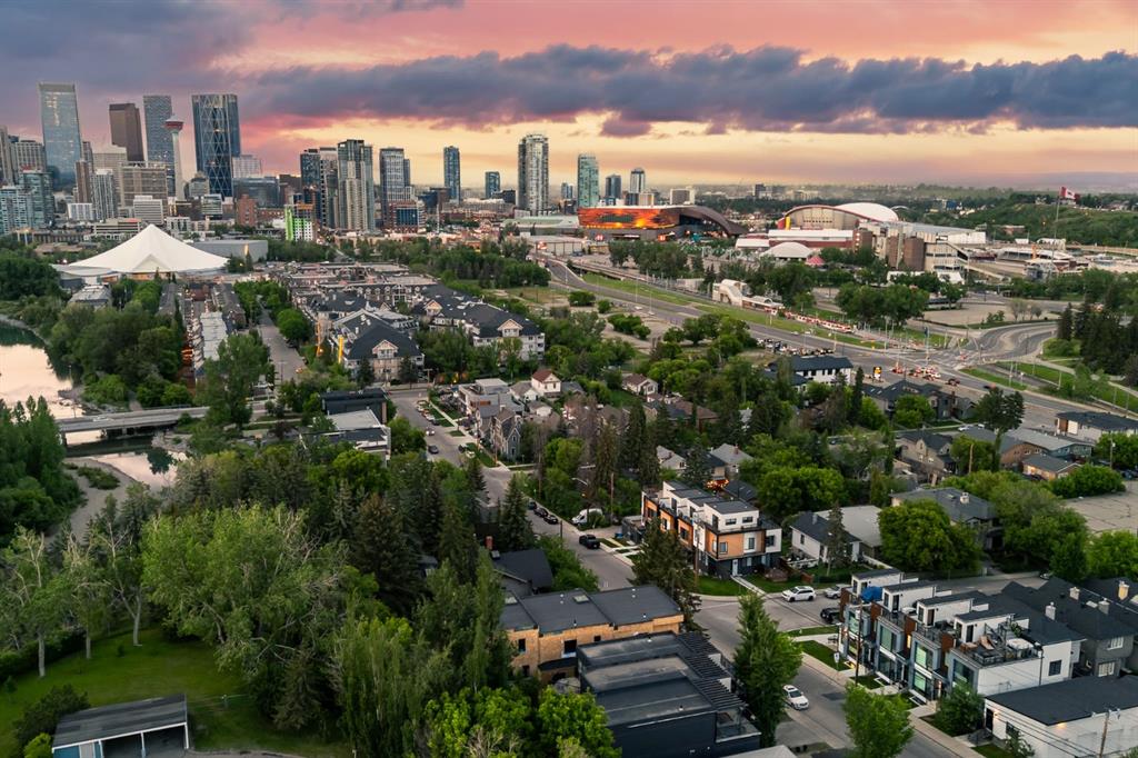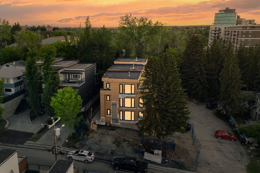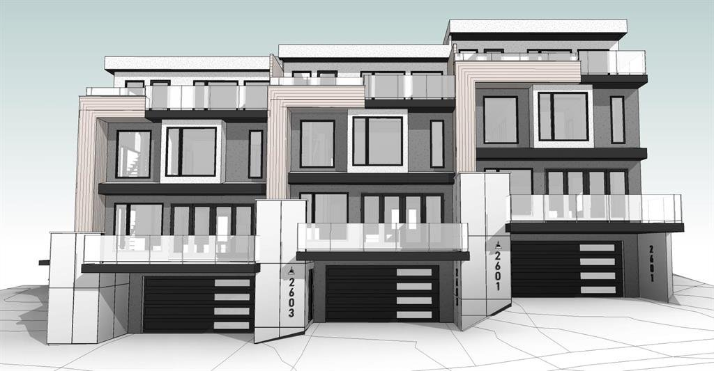 This three storey townhome incorporates modern-traditional interior design elements for a sophisticated and timeless aesthetic. Perched upon a hill in one of Calgary's most iconic river communities overlooking the picturesque skyline, this brand new unit is a culmination of high quality materials, thoughtful finishing selections, and grand inclusions. The attached triple car garage and private elevator are characteristic of the many luxurious additions strategically embedded within this home. The main floor layout includes a chef's kitchen with premium panel-ready appliances, dining room, living area with gas fireplace, powder room, wet bar, built-in desk area, main floor balcony with sweeping city views, and an outdoor BBQ deck at the rear. On the second level there are two bedrooms, each with walk-in closets and 4 piece ensuites, along with laundry and a den. The entire third floor is occupied almost entirely by a spacious primary retreat with another gas fireplace, a walk-in-closet, an attached 6 piece ensuite including a steam shower, bidet and in-floor heating, an additional wet bar, and a third level balcony (designed and loaded for a hot-tub) overlooking the city. This intentional floorplan prioritizes comfort and convenience while maximizing utilization of space. Intricate millwork, ornate wall and ceiling mouldings, curved kitchen island, brush gold accents, 9 foot ceilings, and herringbone hardwood all work together seamlessly to emulate carefully curated beauty. With unrivalled cityscape views, this home is a testament to deluxe inner city living. Notable specifications include: quartz countertops, Spanish porcelain tile, engineered European Oak hardwood, custom designed casing & mouldings, designer light fixtures, LED backlit staircase railings, millwork built-ins, satin brass and matte black hardware, along with rough-ins for speakers, a security system and power blinds.. Situated amongst the natural landscape of the river pathways and surrounded by some of the city's most notable landmarks in the peaceful community of Erlton. Quickly access the shopping and dining opportunities along 4th street, the brand new Convention Centre, Calgary Stampede Grounds, and get to the downtown core in minutes. Expected Completion September 2025. Renderings are for artistic purposes only and to give a sense of space. Actual specifications of completed product may differ. Inquire for a list of customizable and/or upgradable features.