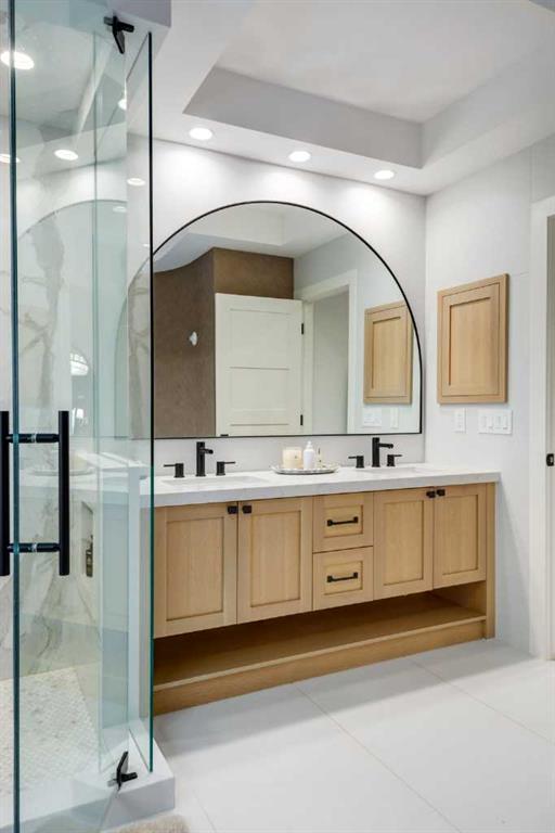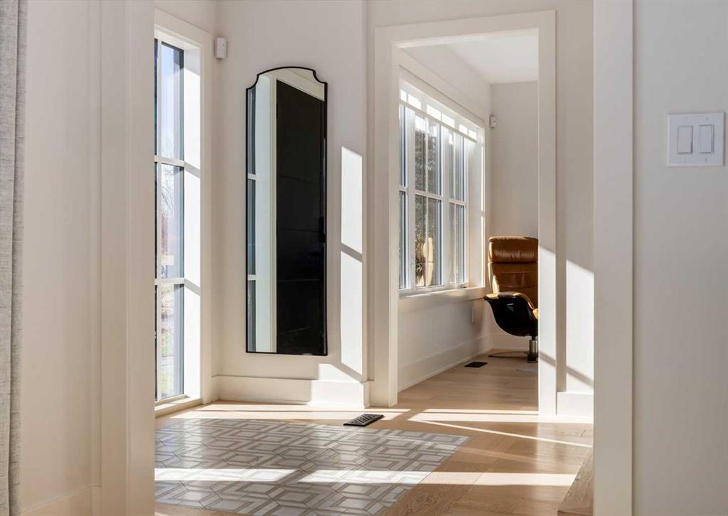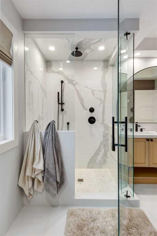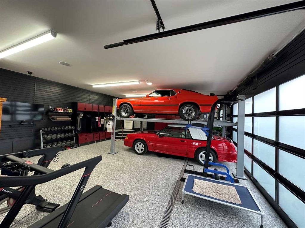 This four-bedroom residence offers over 3,500 square feet of meticulously finished living space, complemented by an attached three-car car enthusiasts dream garage and a dedicated shed for yard equipment. The main floor features two distinct family rooms, including one with a striking floor-to-ceiling Flagstone-clad fireplace that harmonizes with the home's exterior, a versatile south-facing den, and a spacious dining area with seamless access to outdoor living spaces. The kitchen is outfitted with premium appliances designed to accommodate a wide range of culinary activities. Throughout the home, the exquisite lighting embraces contemporary design trends and incorporates materials such as glass, polished chrome, brass and black metal.