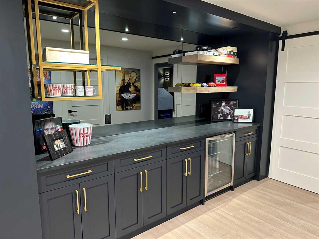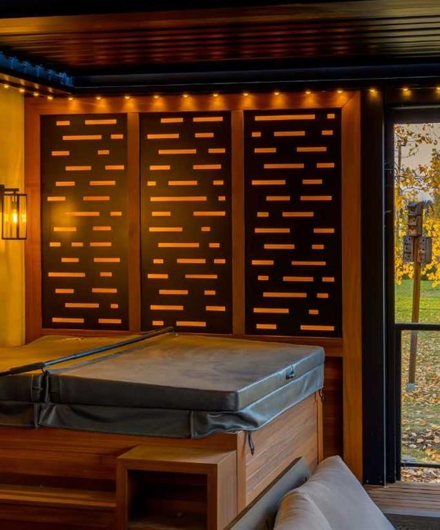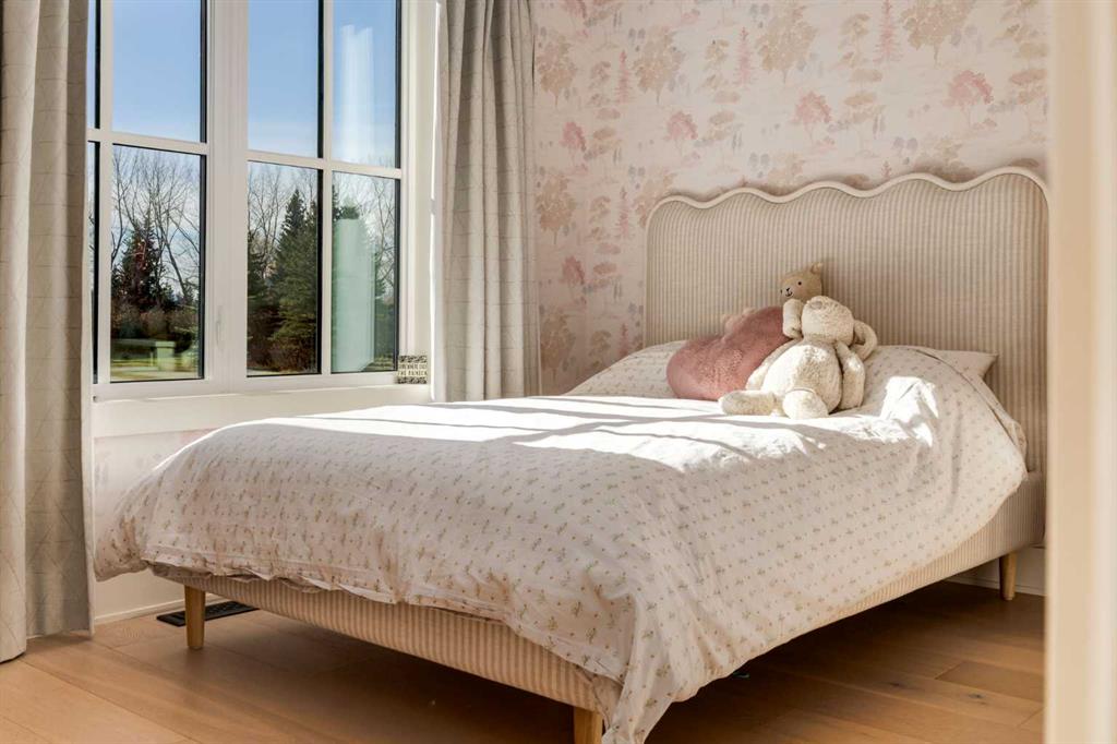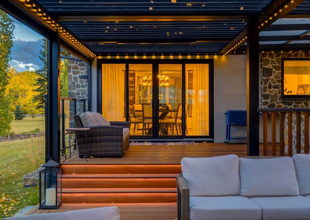 The upper floor has two children's bedrooms and a distinguished primary suite, each offering expansive vistas of the surrounding grounds. The beautifully appointed “dog perch” is bathed in sunlight from the south facing wall of windows. The lower level is thoughtfully arranged for family activities, featuring a theatre-style media room, a versatile area well-suited for use as a playroom or fitness space, and a dedicated enclosed wine room designed to display curated collections. Additional amenities on this floor include a bedroom, a full bathroom, and a generous laundry area.  Completing this property is an expansive outdoor living area exceeding 870 square feet, which includes a fully appointed kitchen featuring a Napoleon BBQ and Traeger Smoker, a substantial Flagstone gas fireplace paired with a 65-inch television conducive to hosting sporting events, and a built-in hot tub. The space is further enhanced by premium Kayu wood flooring, ambient LED lighting, remote-operated screens, and a louvred roof system and infrared heating. The grounds present flexible opportunities for active families, allowing for the future addition of amenities such as a sport court, ice rink, or swimming pool. Additionally, the existing wood-burning firepit provides year-round enjoyment of this exceptional setting. This family home has it all from quiet family gatherings to large entertaining events, within five minutes to schools and within eight minutes to major amenities and shopping.  .