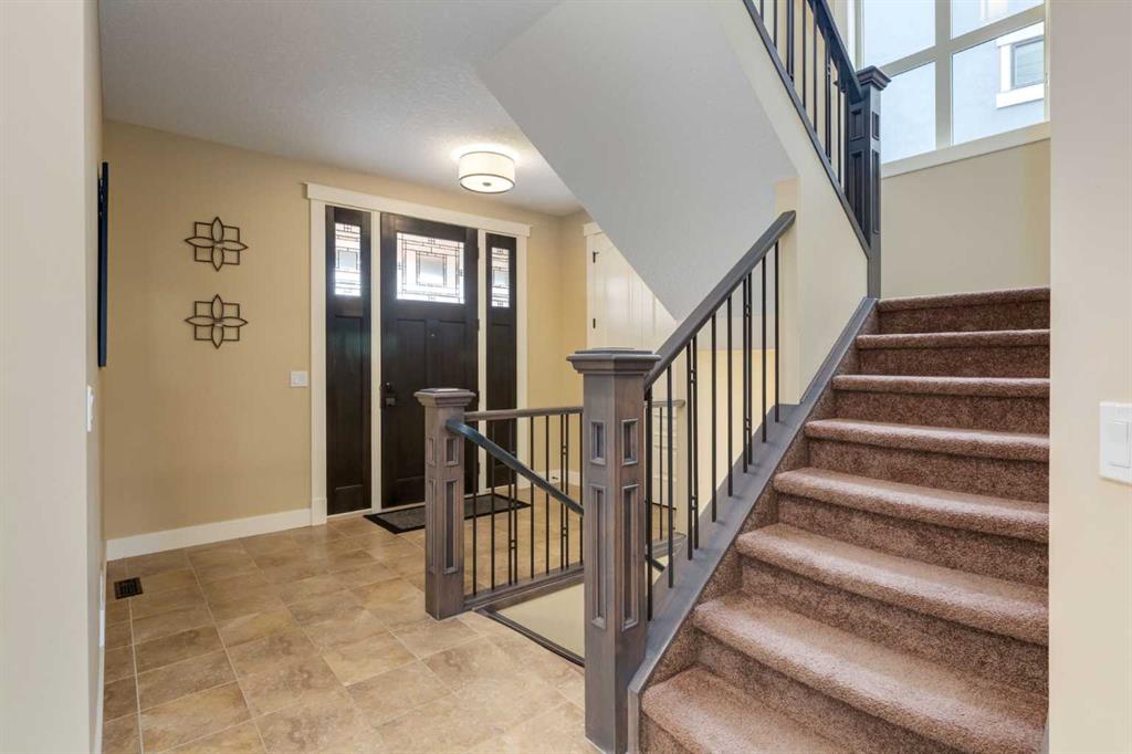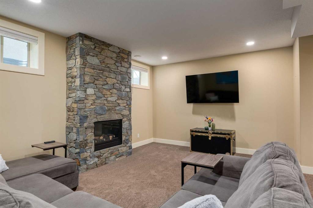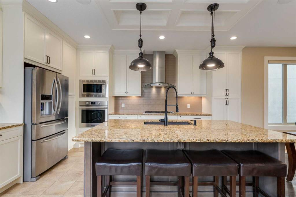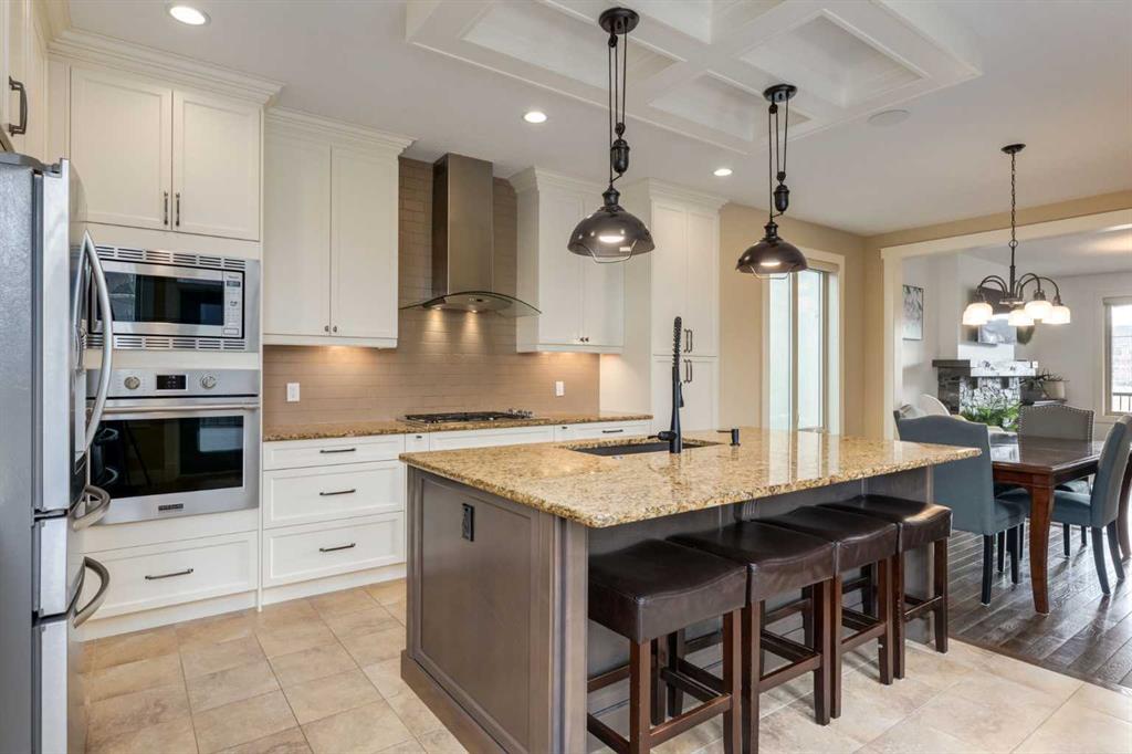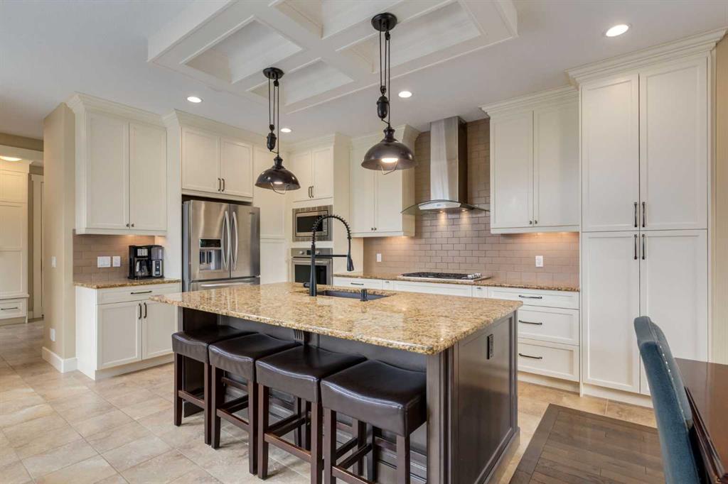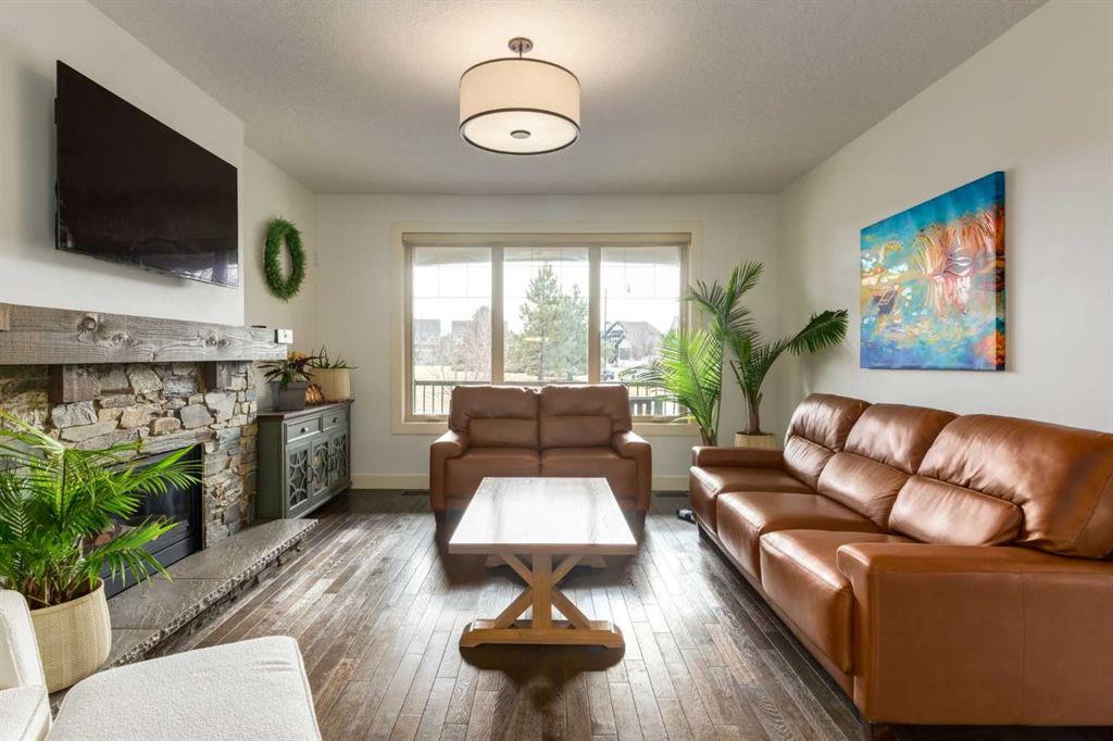OPEN HOUSE Feb 21st 2-4pm | Parkside elegance ~ Exceptional 5 Bedroom home in the Estates of Cooper’s Crossing with over 3,500 sqft of beautiful finished living space, perfectly positioned on one the community’s most sought-after streets! Cooperstown Court is quiet, family-friendly, with under 30 homes centered around a park and mature green space! Immediately admire its full-width front porch, an incredible place to unwind while enjoying peaceful park views, and the home’s striking stonework and architectural presence. The main floor showcases 9’ ceilings, rich hardwood flooring, and a big tiled Foyer with an organized front closet to welcome you. The front Living Room is anchored by a stunning gas fireplace with full stone surround and wood mantle, framed by large windows overlooking the park. Truly standing-out as the heart of this home is the stunning Kitchen…With floor-to-ceiling classic light cabinetry, granite countertops, tiled backsplash, SS appliances, coffee centre, pantry, AND a massive eat-up island with a built-in sink. From here, step outside to the private backyard oasis with all day sun! Featuring a raised deck, lower stone patio, and fully fenced yard! This open layout is made for entertaining, the Dining area sits between the Kitchen & Living Room, elegantly framed by tile inlay, with an adjacent corner cocktail counter including built-in cabinetry & beverage fridge to tie it all together. Also on the main-level is a huge Office featuring a big window & extensive built-in desk with loads of cabinetry, a spacious Mudroom with built-in desk space, bench seating, surrounded by custom storage & elegant hooks, plus a convenient 2-pc Powder Room. Upstairs, the vaulted Bonus Room has built-in speakers and captures beautiful park views, creating the perfect family retreat. The Primary Suite is a luxurious escape featuring abundant natural light and a spa-inspired 5-pc Ensuite, with fully tiled oversized walk-in shower, dual vanities with stone counters & a full-length mirror, soaker tub beneath the opening window, and SKYLIGHT. The Walk-in Closet is finished with custom wood shelving for a refined touch. Two spacious secondary Bedrooms, a stylish 4-pc Bathroom, and convenient top-floor Laundry add everyday functionality. The builder-finished Basement continues the home’s elevated feel with tall ceilings, bright windows, plush carpeting, and a Family / Rec Room with a spectacular floor-to-ceiling stone gas fireplace. This level also offers TWO additional Bedrooms and a magazine-worthy 3-pc Bathroom with stone counters and a fully tiled oversized walk-in shower - bringing the home to a total of FIVE BEDROOMS! There’s even Central A/C for year-round comfort, but we saved the best for last…The impressive 30 x 23 OVERSIZED DOUBLE DETACHED GARAGE is insulated, drywalled, and features exceptional HEIGHT —ideal for maximizing storage or accommodating a hoist. Located just a short walk to nearby schools, pathways, and amenities, this is a rare opportunity to find!