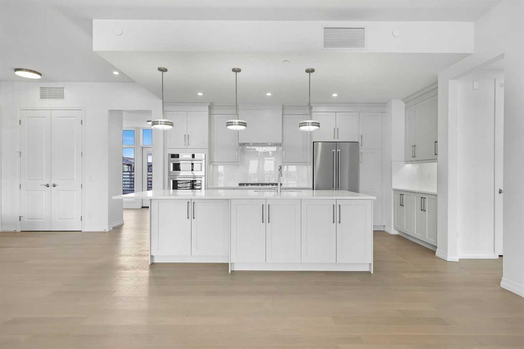 The Streams of Lake Mahogany present an elevated single-level lifestyle in our stunning Reflection Estate homes situated on the park Side on Mahogany Lake. Selected carefully from the best-selling, renowned Westman Village Community, you will discover THE CASCADE, a home crafted for the most discerning buyer, offering a curated space to enjoy and appreciate the hand-selected luxury of a resort-style lifestyle while providing a maintenance-free opportunity to lock and leave. Step into an expansive 1700+ builders sq ft stunning home overlooking a gorgeous greenspace adjacent to Mahogany Lake featuring a thoughtfully designed open floor plan inviting an abundance of natural daylight with soaring 10-foot ceilings and oversized windows. The centralized living area, ideal for entertaining, offers a Built-in KitchenAid sleek stainless steel package with French Door Refrigerator and internal ice maker and water dispenser, a 36" gas cooktop, a dishwasher with a stainless steel interior, and a 30-inch wall oven with microwave; all nicely complemented by an Elevated Nordic Color Palette. All feature stunning Quartz countertops. You will enjoy two beautiful bedrooms, a generous central living area, with the Primary Suite featuring a spacious 5-piece oasis-like ensuite with dual vanities, a large soaker tub, a stand-alone shower, and a generous walk-in closet. The Primary Suite and main living area step out to a 39 ft x 15 ft terrace with a lovely view of the greenspace. Yours to enjoy and soak in every single day. To complete the package, you have a sizeable office area adjacent to the spacious laundry room, and a double-attached heated garage with a full-width driveway. Custom additions to this home include under-cabinet lighting, an upgraded Moen plumbing fixture package, air conditioning, a convenient laundry room with a folding table, a stunning electric fireplace, and an expansive covered terrace with access from the Living Room, Dining Room, and owner's suite. Jayman's standard inclusions feature their trademark Core Performance, which includes Solar Panels, Built Green Canada Standard with an Energuide rating, UVC Ultraviolet light air purification system, high-efficiency heat pump for air conditioning, forced air fan coil hydronic heating system, active heat recovery ventilator, Navien-brand tankless hot water heater, triple pane windows and smart home technology solutions. Enjoy Calgary’s largest lake, with 21 more acres of beach area than any other community.