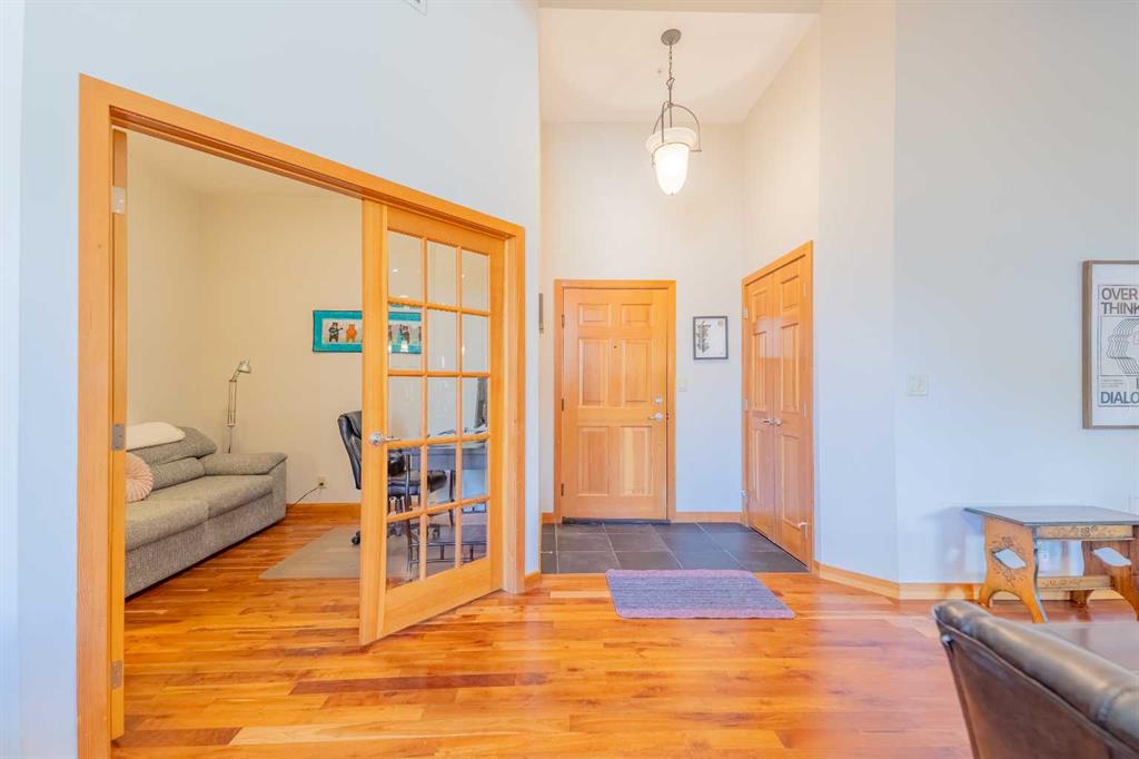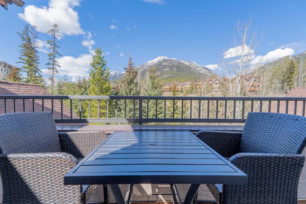 Penthouse living in Eagle Terrace, one of Canmore's most stunning neighbourhoods on Canmore's highly sought-after "sunny side." This expansive top-floor 2-bedroom plus den residence offers 1,595 square feet of single-level mountain living with sweeping, unobstructed northwest views of the Rockies. Filled with natural light throughout the day, the open-concept living and dining areas flow seamlessly to a spacious deck with three access points from the living room, kitchen, and primary bedroom, creating an effortless indoor-outdoor lifestyle rare at this level. An ideal place for your morning coffee or sunset viewing, with the Rockies as your backdrop from every angle.