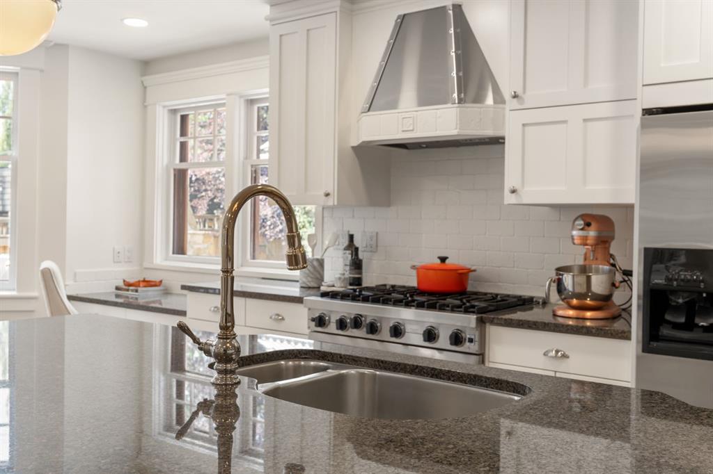 Introducing the Campbell Residence – A Rare Offering in the Heart of Elbow Park! Built in 1912, The Campbell Residence is a beautifully restored example of Georgian Revival-style architecture in Calgary. Situated on a 60' x 126' lot across from the Elbow River and surrounded by mature trees and lush landscaping, this 4,250 sq.ft. red-brick estate blends timeless architectural charm with modern functionality for contemporary living. Its dignified exterior—defined by formal symmetry, quality pressed brick, and a full-width veranda with classical balustrades—recalls the grace of substantial American colonial homes. But step inside, and you’ll find a residence that has been thoughtfully and extensively restored to today’s standards while preserving its historic soul. This home also has a storied past. Joseph Campbell acquired the lot in 1911, and in the decades that followed, it was occupied by several notable Calgarians, including Percy Carson, Mrs. Adelaide E. Parker, and Mrs. W.A. Stevens. From 1924 to 1927, it was the residence of John Burns, and nephew of Senator Patrick Burns. From 1929 to 1957, the home was owned by industrialist Frederick L. Irving and his family—marking over four decades of prominence in Calgary’s social and business history. Inside, expansive principal rooms offer exceptional flow for everyday living and elegant entertaining. The formal living room features original millwork, a fireplace, and French doors that open to a private southwest-facing patio with an outdoor fireplace. The formal dining room is ideal for hosting, while a cozy family room with its own fireplace provides a relaxed retreat. The beautifully updated kitchen pairs heritage style with high-end functionality—featuring classic white cabinetry, a generous walk-in pantry, top-tier appliances, a hearth-style sitting area with fireplace, and heated floors. The upper floors include four bedrooms—three with ensuites—highlighted by a luxurious primary suite with a 5-piece ensuite and a spacious laundry room. The third floor offers flexible space for a gym or quiet retreat, complete with a large bedroom and full bathroom—ideal for teens, guests, or a live-in nanny. A den or home office completes this versatile level. Modern upgrades are seamlessly integrated throughout, including new electrical and plumbing systems, built-in Sonos surround speakers, Nest thermostats, and secure electronic entry and car gates—all enhancing daily comfort. The lower level is currently undeveloped but includes full architectural plans, offering the opportunity to tailor additional living space to your needs. A triple heated attached garage with an oversized door also includes a lofted bonus space—perfect for a gym, art studio, or music retreat. Enjoy a walkable lifestyle just steps to top schools, parks, river pathways, the Glencoe Club, and the shops and restaurants of 4th Street. With its rich history, modern upgrades and unbeatable location, The Campbell Residence is a true legacy home.