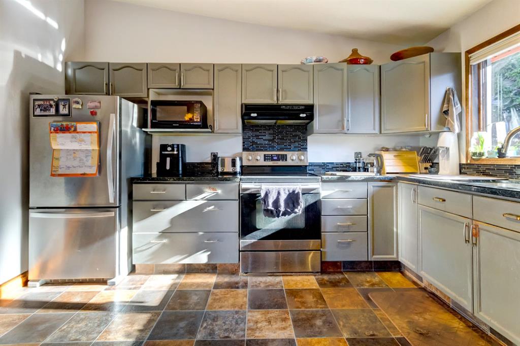 Sunny single family home with mountain views and fenced yard. Welcome to this bright and spacious single-family home perfectly positioned on the sunny side of the valley. Featuring a functional split-level design, this property offers four bedrooms and many ways to make it your own. Step through the inviting front patio into an open-concept main level with hardwood flooring throughout. The kitchen, dining, and living areas flow seamlessly together — ideal for family living and entertaining. Upstairs, you’ll find two comfortable bedrooms and a full bathroom. The lower level provides more living space, including a rec room, two additional bedrooms, a full bathroom, and a generous storage room. The back deck along with a large fenced backyard make this home practical and inviting. Located in a sought-after, family-friendly neighbourhood, just steps from Elizabeth Rummel School and moments from Canmore’s extensive trail network for hiking and biking adventures.