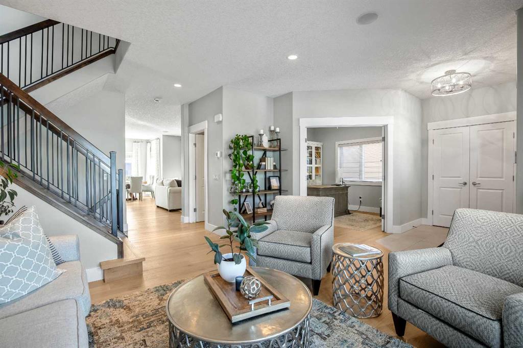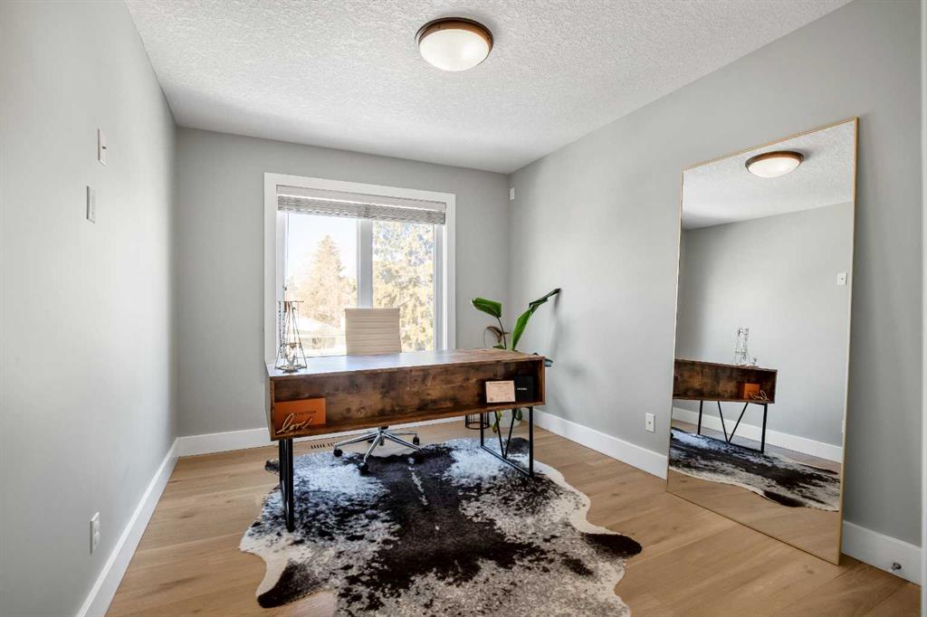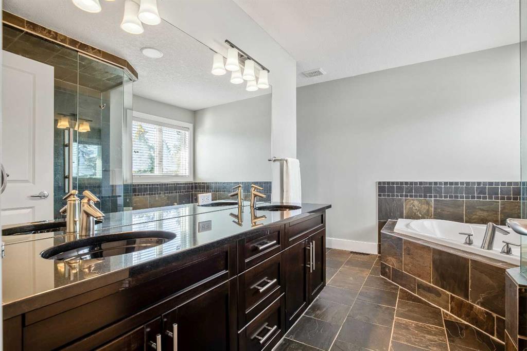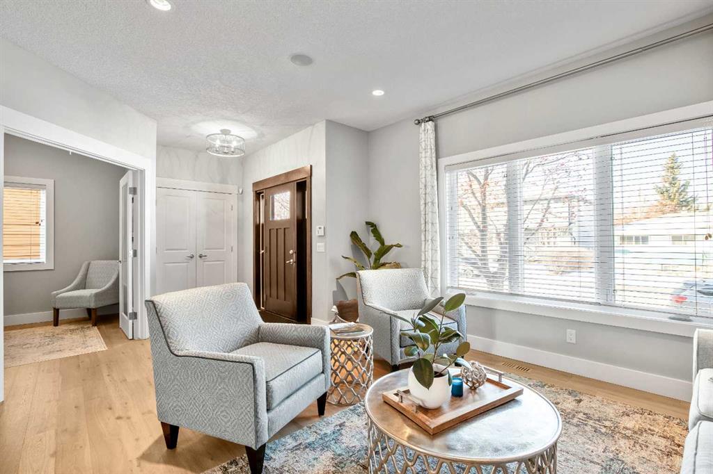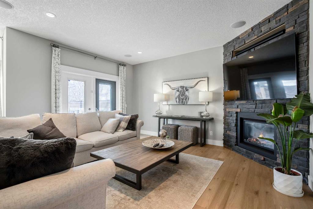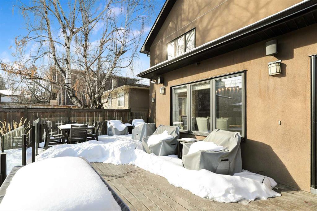 OPEN HOUSE Saturday Mar 7th 2pm to 4:30pm & Sunday Mar 8th Noon to 2pm 3040 – 28 St SW Impressive four bedroom, three and a half bath home on a quiet tree lined street in the vibrant SW inner-city community of Killarney! It boasts over 3300 sqft of developed living space. This property is Not the Typical narrow 25 ft wide infill! Enjoy the oversized 34 ft wide x 125 ft deep lot that gives you the added volume of space throughout the entire home. High quality finishings and craftsmanship. Gorgeous new engineered hardwood throughout all three levels. Bright & beautiful, lots of large windows, tons of natural light. Great function, fantastic layout and design. Proper foyer entry with formal living area. Frosted French doors to the office, giving you privacy but allowing light in. Chef’s dream kitchen, with lots of mocha cabinetry built to the 9 ft ceiling, black granite countertops, brick blacksplash and stainless steel appliances including a full fridge, full freezer & gas range. Spacious open floorplan of the great room with the kitchen being open to the family room and the dining area. A wall of glass with big windows and patio doors across the entire back of the home brings the outdoors in. Large family room features a stone gas fireplace with a garden door to the huge 19’2” x 33’6” wide composite deck with glass railings giving you added outdoor living space. Mudroom exit to the fully professionally landscaped backyard flagstone patio and underground sprinkler system with garden lighting. Beautiful staircase of black iron rails to the upper floor. The primary suite is your sanctuary with vaulted ceilings, space for a seating area and large walk-in closet with built-in cabinetry. Primary ensuite has dual sinks, black granite countertops, in-floor heat, deep soaker tub and stand alone shower. Two other good size bedrooms fit queen beds. Main upper floor bath has dual sinks and a cheater ensuite door to one of the bedrooms. Convenient upper floor laundry. The lower level has high ceilings and more of the beautiful engineered hardwood floors. A large rec room area has a wet bar, another full bathroom and an awesome Media Room that includes the projector, screen & speakers. The large fourth bedroom has a closet with built-in custom shelving and drawers. Furnace 2023. Central Air Conditioning. Roof 2025. Kinetico Water Filtration System. Low maintenance and hardy acrylic stucco exterior. Plus never have to put up Christmas lights again with Gemstone Lighting on the roof line. Heated double garage (21’4” x 20’11”). Located in the sought after area of Killarney, one block from the community centre and the community gardens, playground & skating rink. Walk to schools, parks, playgrounds, Killarney Aquatic Centre and more. Close to tons of great restaurants and amenities of Marda Loop and on 17th Ave. Close to MRU. 10 minute drive to downtown. Simply a fabulous property in a great location! View the 3D Tour (Purple house symbol) Welcome home!