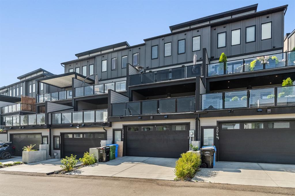 Executive living at its finest on Calgary’s WONDERFUL Upper Westside. This three storey townhome, just three years young, offers 2565 sq ft of living space over three levels with all of the latest design elements. Situated at the top of the hill this home presents a wonderful view to the SE, all the way to the Glenmore reservoir and exposure to a grassy knoll and the mountains to the west – a COMFORTING sense of space. With its east/west orientation, and generous window treatments, this home follows the sun, offering a WARM & BRIGHT home, on all three levels. On arrival you will enjoy the broad, open plan under 9’ ceilings with resilient luxury vinyl flooring, designer lighting and window treatments and a kitchen featuring Fisher Paykal s/s appliances, including a gas stove. There is a generous dining space here, leading directly to a large rear deck, measuring 240 sq ft – WITH A VIEW! Upstairs you will find a double primary floor plan. The primary bedroom sits under 10’ ceilings with a view to the west and features a 5pc en suite with quartz countertops and large walk-in closet. The second primary enjoys views to the Glenmore reservoir, a 4pc en suite and large walk-in closet. The lower level has been developed for entertaining with a large rec/media space leading directly to a second large covered deck… 423 sq ft with a fantastic HOT TUB… WITH A VIEW! This level also enjoys a large flex space, which easily accommodates a sleeping space for guests and a 3rd full bathroom. This home offers an attached, HEATED & OVER-SIZED garage, multi media ethernet cabling and 15 B/I speakers throughout and an ELEVATOR serving all four levels! This is a turnkey lifestyle with an ELEVATOR which presents an opportunity to age in place… on Calgary’s Upper Westside!!