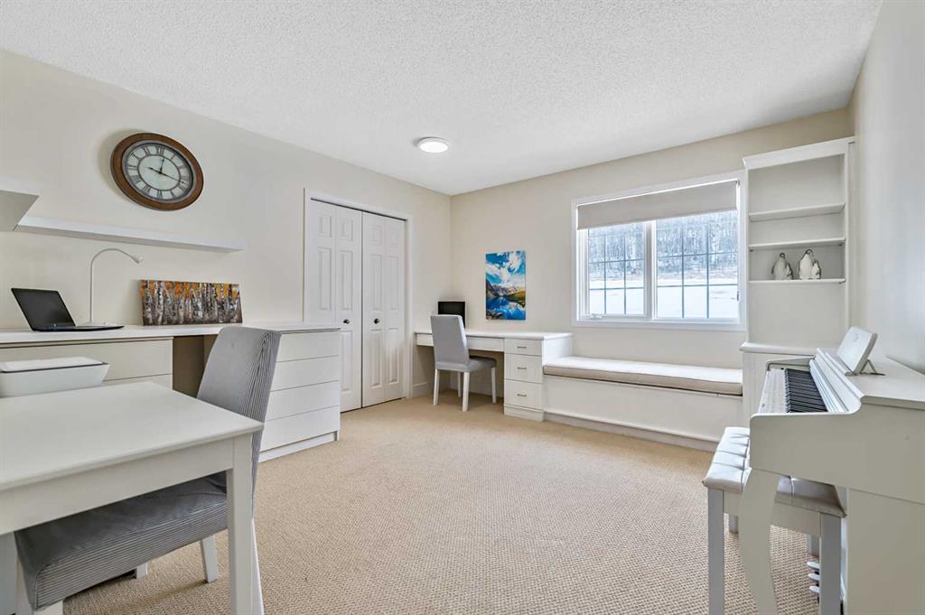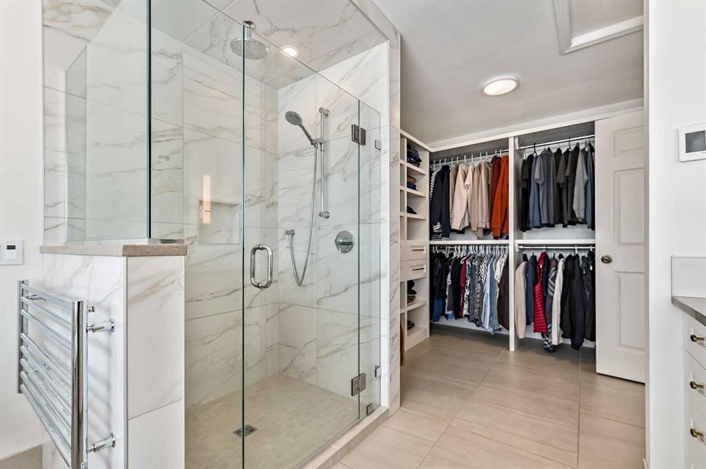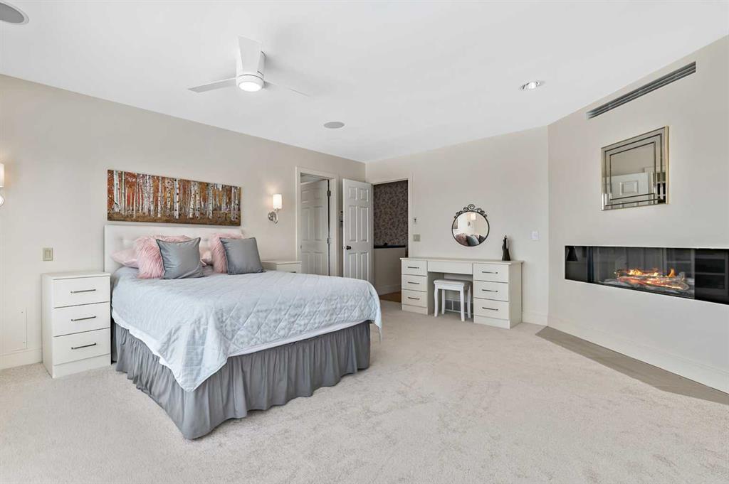 The executive primary suite is a luxurious retreat, complete with its own fireplace, spa-inspired five-piece ensuite, HEATED FLOOR, soaker tub, OVERSIZED shower, HEATED towel bar, and an organized walk-in closet. Multiple bedrooms on both levels—including flexible spaces for guests, crafts, or a home office—offer exceptional versatility for every stage of life.