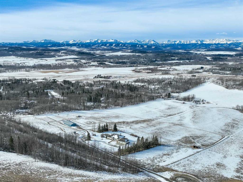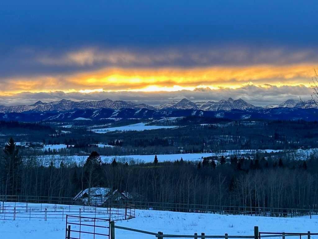 INCREDIBLE, UNOBSTRUCTED VIEWS of the Rocky Mountains and rolling foothills create a breathtaking backdrop for this extraordinary country estate. Set on beautifully landscaped, fenced acres just minutes from Millarville. This private retreat offers the perfect balance of serenity and convenience—close to amenities, yet a world away from the everyday.