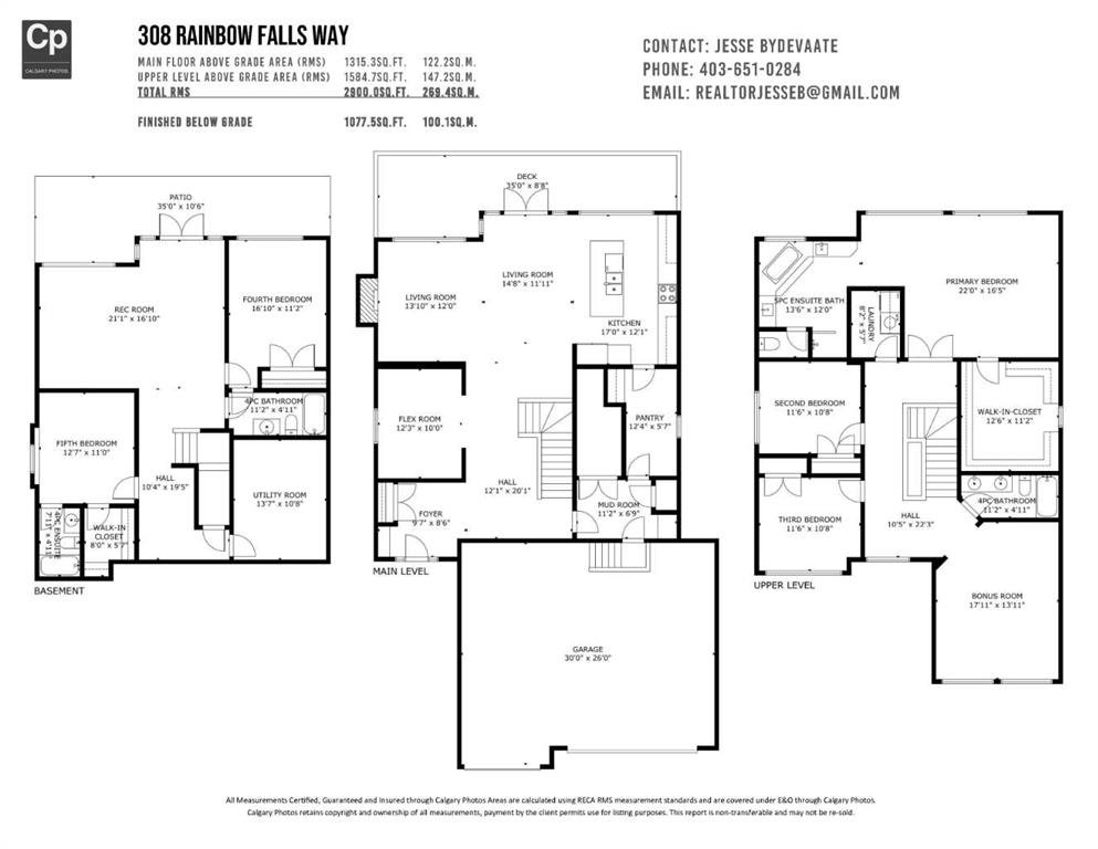 Welcome home to 308 Rainbow Falls Way! This custom built home offers over 3900 SF of living space over 3 levels and has upgrades done through out; such as the original floor plan being extended by 3 feet, plumbing upgrades, spray foam insulation to rim joist, upgraded electrical panel and upgraded granite counters through out, just to name a few. The main floor boasts of hardwood flooring and has an excellent floorplan for family life featuring a front flex room - perfect for a home office and living room with cozy fireplace open to the kitchen and dining area great for entertaining. The custom kitchen is a chef's dream with a extra large central island and seating, petrified wood granite counters, stainless steel appliances, an abundance of cabinets, plus the dining area with access to your south facing balcony overlooking the green space and the canal walkways. There is a walk thru pantry and 2 piece bath to complete this level. The open riser staircase leads to the upper level where you will find the family room with vaulted ceilings, the primary suite with warm cork floors with upgraded subflooring and a massive walk-in closet with custom organizers by Home Solutions , and spa like ensuite with double vanities, soaker tub and separate shower. There are also 2 good sized bedrooms, the main bath and laundry room. The walk-out basement is fully finished and offers a large rec room, 4 piece bath and 2 more bedrooms, one which has an ensuite - perfect for guests. From the rec room you have direct access to the patio and your fully fenced private south facing back yard with relaxing views of the greenspace and canal. There are 2 custom built sheds by Shed Solutions for all your gardening needs. The attached 3 car garage has custom shelving and provides plenty of parking for you and your guests. You are just steps away from the pathways leading to Rainbow Falls pond and Chestermere Lake. Don't miss out on this great family home located within an easy commute of downtown Calgary and great access to major thoroughfares!