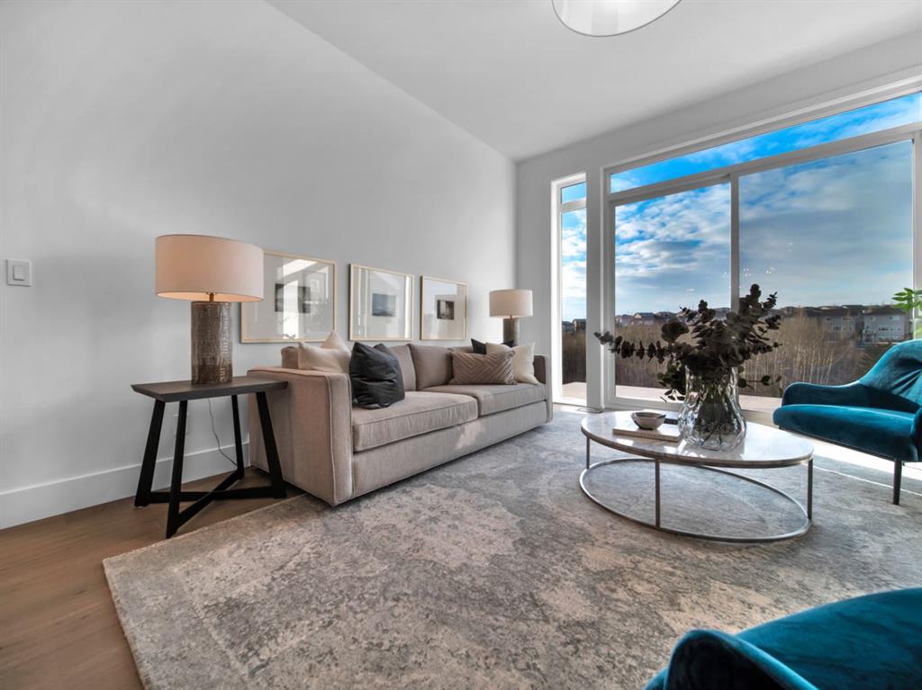 The Villas at Birch Point gives you the opportunity to live in an exclusive project in one of NW Calgary’s most beloved communities—Royal Oak. Overlooking the Royal Oak Natural Ravine Park, this 3-Bedroom, 2.5-bath, 2,240 sq. ft. (1,217 sq.ft. main floor RMS) Villa with a double attached garage and a fully developed walk-out basement is sure to fit your lifestyle perfectly. The main floor open-concept layout features 10’ high main floor ceilings, a chef-inspired kitchen with an upgraded appliance package, quartz countertops throughout and custom full-height cabinetry opening onto the dining room. The spacious living room is completed with a gas fireplace and access to an expansive 15’ x 10’ balcony overlooking the scenic, natural surroundings. A spacious primary bedroom appointed with a 4-piece ensuite including a luxurious curbless, full tiled walk-in shower, walk-in closet and in-suite laundry for added convenience completes the main floor. Downstairs, you’ll find two generously sized bedrooms, a full bathroom and additional living space with a wet bar (including bar fridge) that is perfect for entertaining. Walk-out access to a lower-level concrete patio with professionally designed landscaping and fully-fenced yard included. The Villas at Birch Point have been crafted for better living with no detail overlooked. The high-quality, low-maintenance materials ensure long-term, worry-free living. Condo fees include building insurance, exterior building maintenance and long-term reserve/replacement fund, landscape maintenance, snow removal service, and garbage/recycling/organics service so you can enjoy the Royal Oak lifestyle. With Country Hills Blvd and Stoney Trail just moments away and local shopping and amenities steps from your doorstep, you’re never too far from your favourite places in the NW. RMS measurements taken from plan as home is under construction. Photos from similar unit.