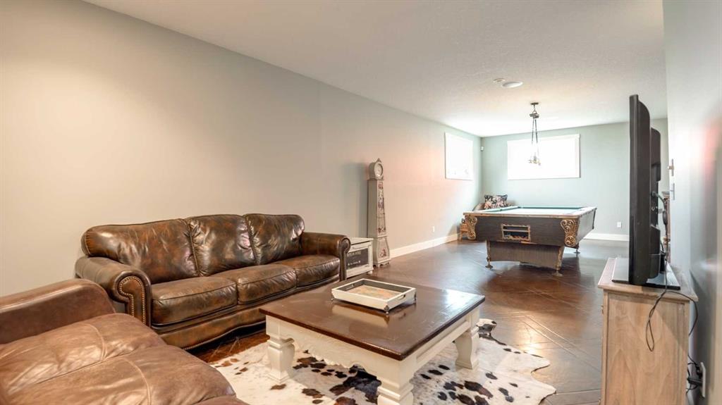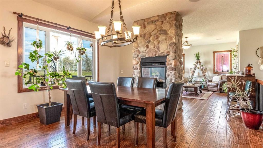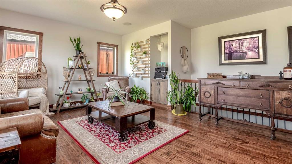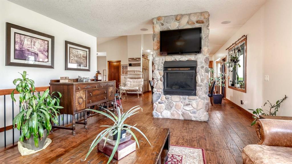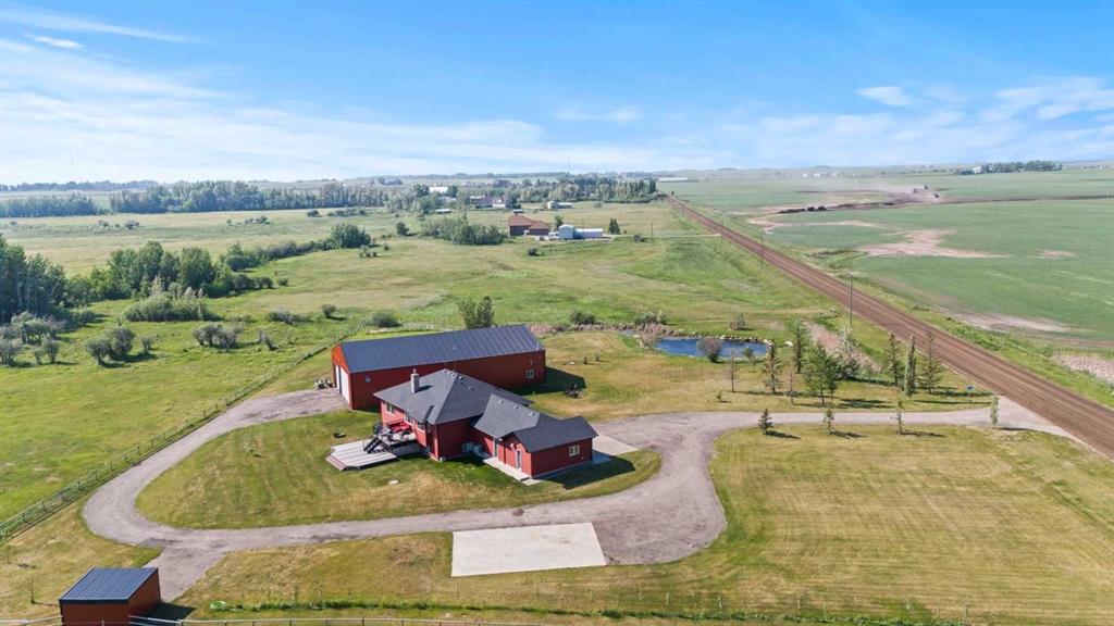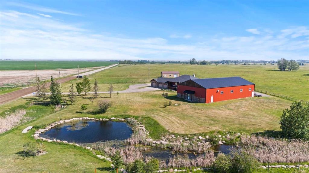 OPPORTUNITY KNOCKS - 3 ACRE PROPERTY WITHIN THE STRATHMORE WEST ASP. Created in 2006 this lovely 3 acre parcel features a FULLY DEVELOPED BUNGALOW offering over 3100 SQ FT of developed living space, an OVERSIZED HEATED TRIPLE GARAGE plus a LARGE SHOP equipped with water and power. Designed with Modern Country sheek details that highlight rustic charm and country living the OPEN FLOOR PLAN is flooded with natural light throughout the day and enjoys A/C on warmer days. A stunning kitchen boasts top of the line appliances and features a massive eat up island with additional seating. The open ended dining area is nestled next to a floor to ceiling rock faced fireplace and overlooks the pristine landscaped rear yard. A FAMILY SIZED GREAT ROOM offers up a restful retreat steps from the kitchen and dining area. The main floor primary bedroom is complete with a 3 pc en-suite bath and walk in closet. Easy access off the triple garage leads into the mudroom, two piece main bath and main floor laundry. HEATED FLOORS and large windows set the stage in the lower level for cozy evenings where you will find a large recreation area plus 3 more bedrooms and a five piece bath. A much desired large storage area completes the lower level. The 4500 sq ft shop with a developed main floor and mezzanine including a 2 pc bath is ready to develop further for long term family. The open area of the shop has an asphalt floor and the walls are insulated and boarded. The two large rear facing doors have the height you need to store your RV. The immaculate grounds feature inground sprinklers and a natural pond that attracts wildlife and birds. The Strathmore West ASP includes this 3 acre parcel. A potential rezoning in a few years might make this 3 acre parcel a worthy commercial consideration? There is a large concrete pad already poured on the North side of the property which would make an ideal base to bring in a modular or mobile home. Permits and applications must go through the Town of Strathmore as this property is annexed in to the Town. Now is the time to think about a long term investment - live here for 10 years while the town builds out towards you and enjoy the potential revenue generation or create a family set up that delivers a dream come true for many. For more information on the Strathmore West ASP please access the uploaded documents.