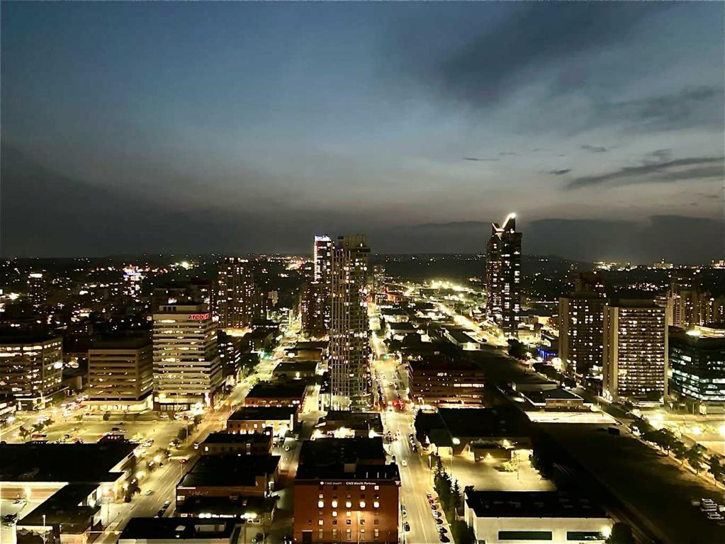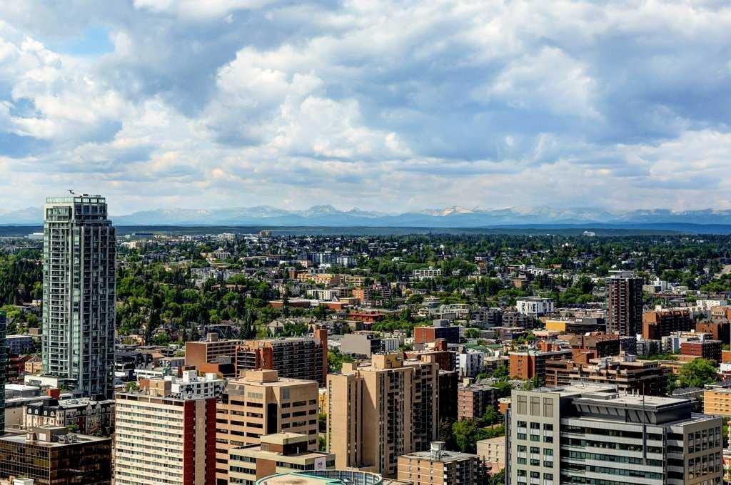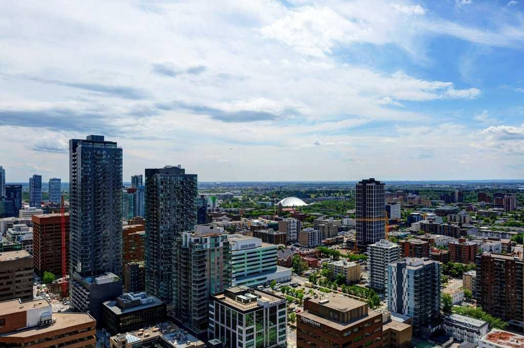Fantastic views from this beautiful Penthouse! Location location, enjoy all the great new amenities in the heart of downtown Calgary’s Beltline, this modern penthouse suite is situated on the 31st floor of 6th and 10th. With over 1700 sqft. of living space on the inside and an additional 970 sq.ft. of outdoor living space, this stunning two-bedroom home is the largest and most impressive suite in the tower. The massive outdoor terrace area is one of the largest of any penthouses within the city and boasts stunning panoramic, mountain and city views, ideal for entertaining friends and family. The floorplan has been thoughtfully designed and features an open concept floor plan creating a bright and spacious living space. The chef inspired kitchen is well equipped with sleek, high gloss and modern cabinetry, stone countertops, stylish backsplash, and stainless-steel appliances with a gas stove. This incredibly open concept design is highlighted by 12 ft ceilings and floor to ceiling windows. You’re going to love working in the den, which offers incredible light and breathtaking views towards the Rocky Mountains, making it a perfect place to work or relax. The gorgeous master bedroom features a luxurious spa inspired ensuite with marble flooring, oversized shower (with mountain views!), double sink and a deep soaker tub, a brilliantly designed walk-in closet and a spacious private balcony offering some of the best views in the city. The second bedroom is inviting, also offering incredible views with a private balcony and large closet. Conveniently located close to the second bedroom is the 4-piece bath that features stunning marble flooring, a soaker tub, and a stone countertop. Additional special features include in-suite laundry, a large foyer and full-sized closet. Amenities in the building include the outdoor plunge pool and lounging area in the summer,